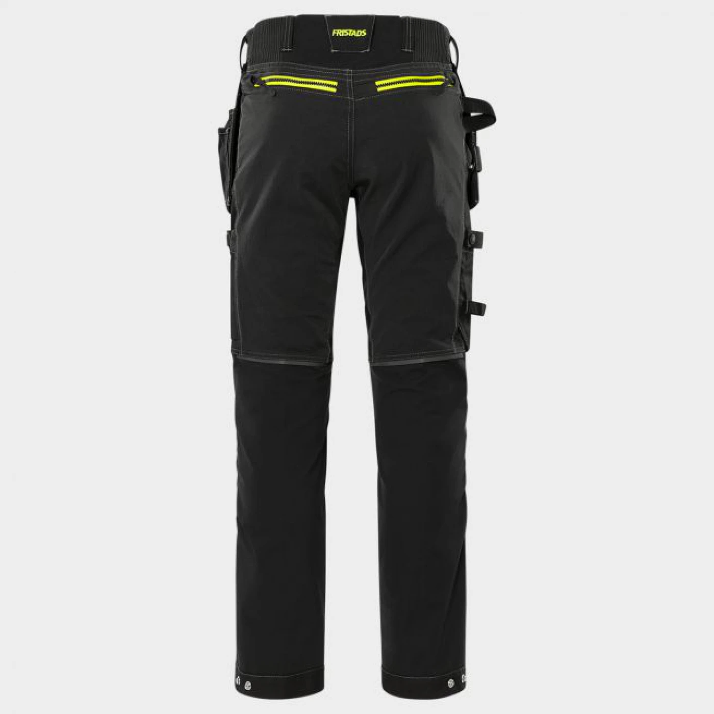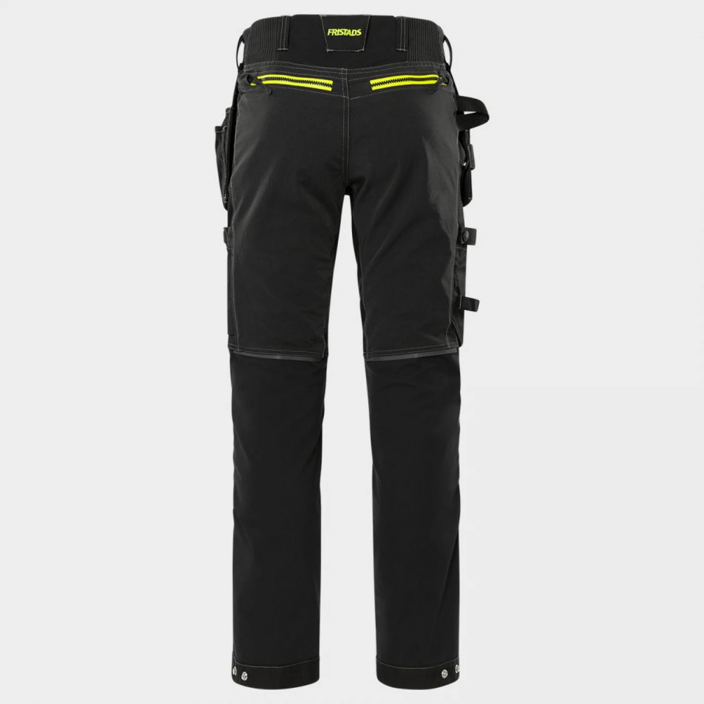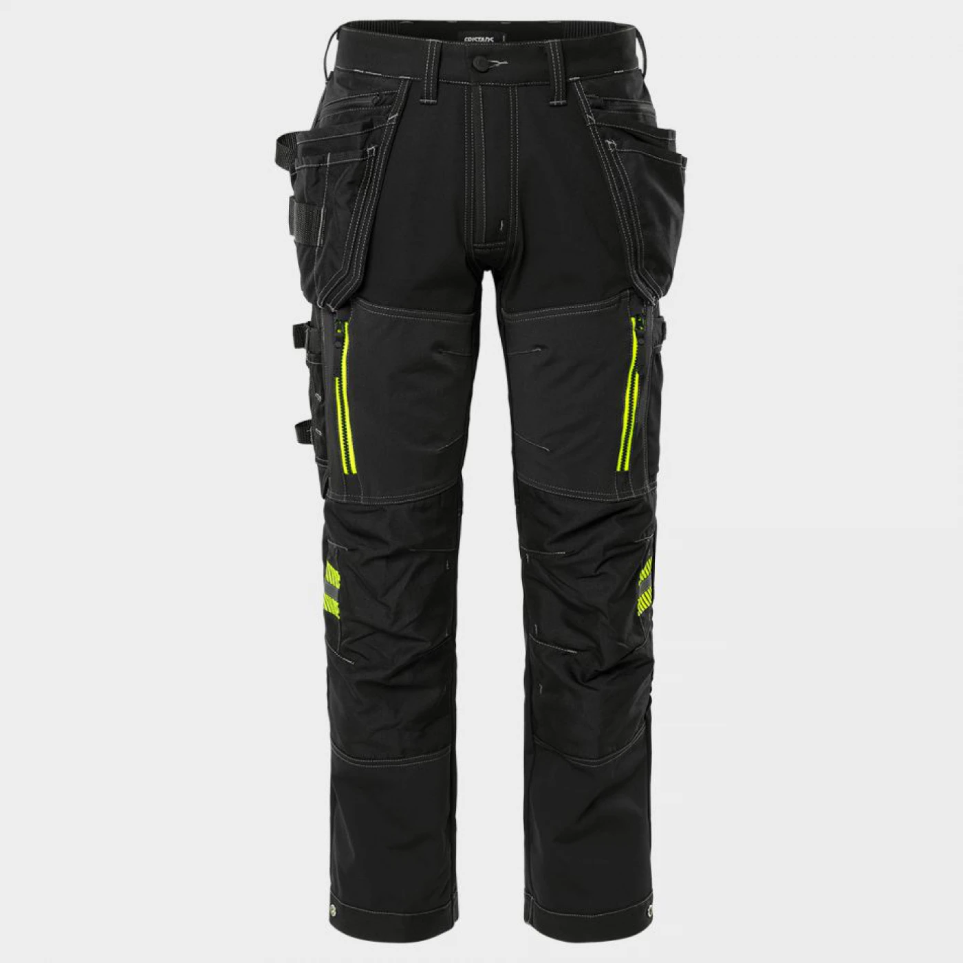 Pantaloni de lucru cu elasticitate ridicată, realizați din materiale selectate pentru confort maxim și libertate de mișcare, cu zone întărite pentru durabilitate sporită.