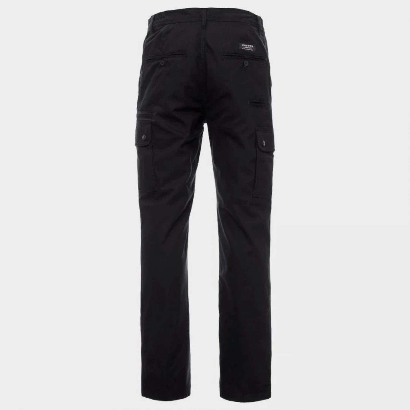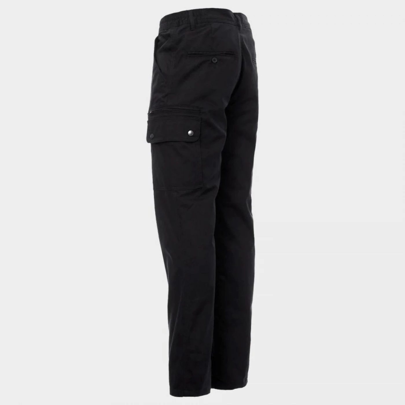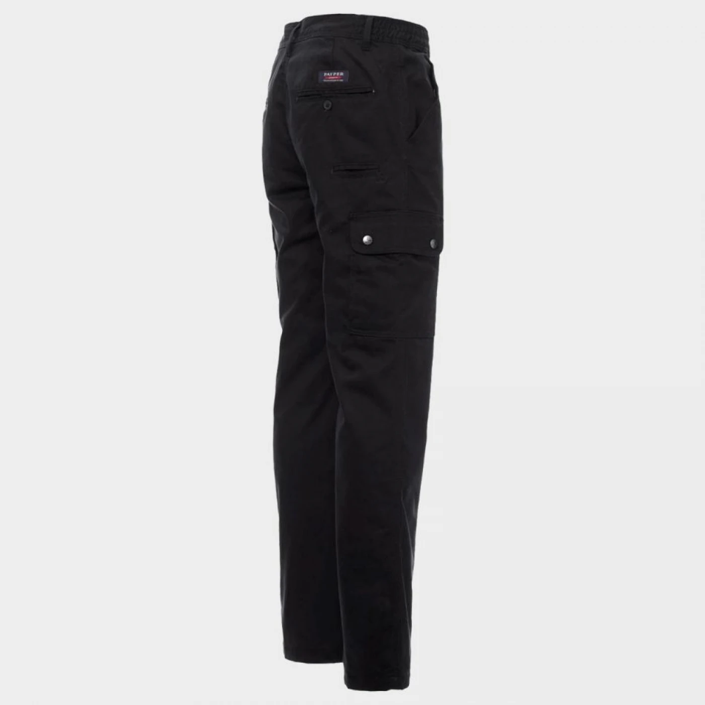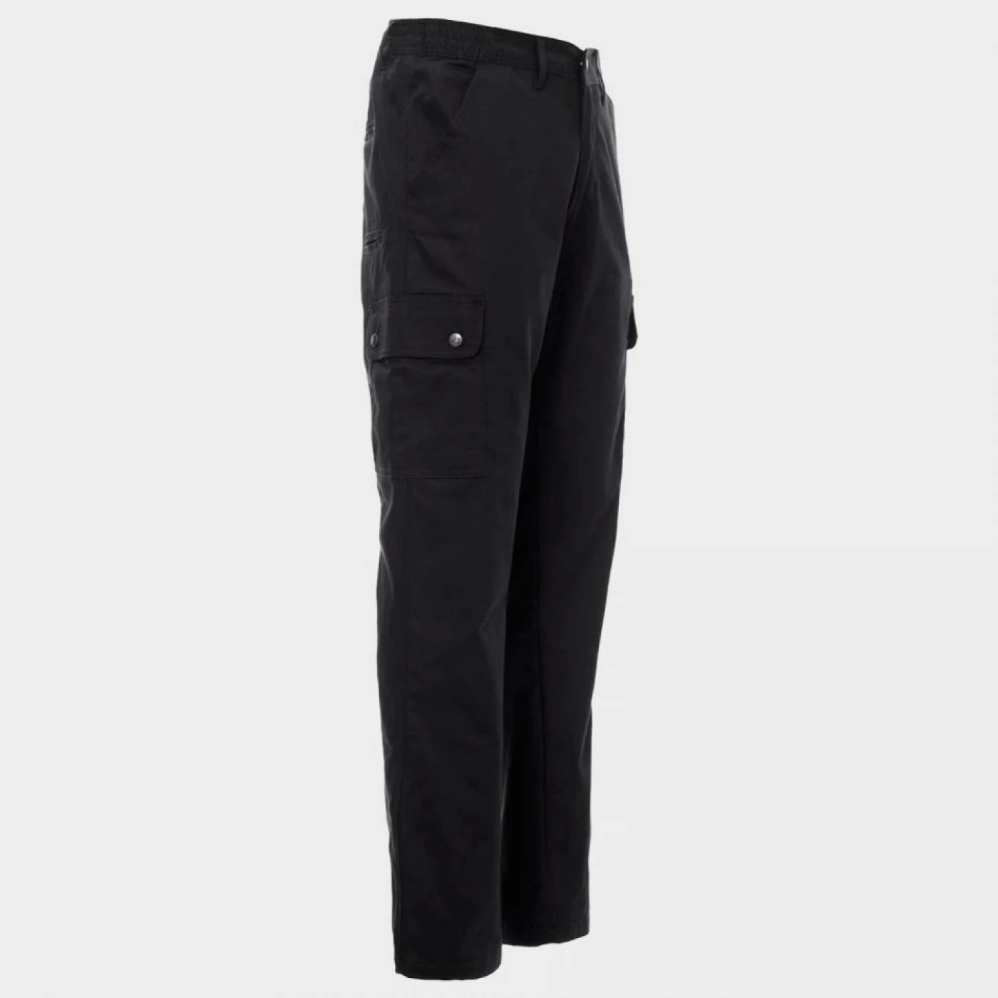 Pantaloni pentru bărbați, de iarnă, căptușiți cu flanelă din poliester (greutate 110 g/mp), cu părți elastice pe lateral și găici pentru centură în talie, închidere cu fermoar și nasture metalic, două buzunare față cu croială clasică, două buzunare laterale cu clapetă și capse, un buzunar cu fermoar pe partea stângă, un buzunar dedicat ruletei de măsurat ce poate fi depliat, pe partea dreaptă, două buzunare spate cu butonieră și nasture.