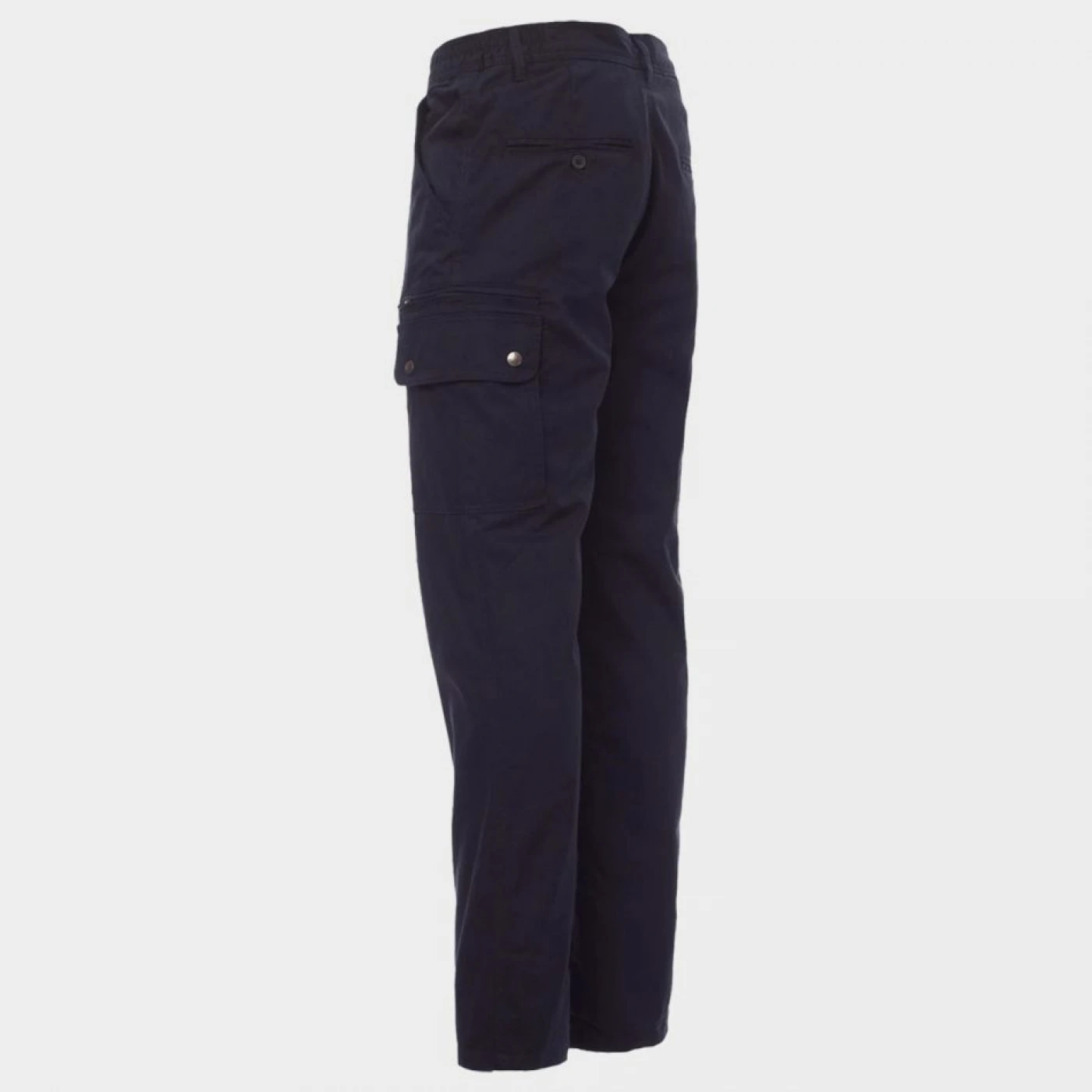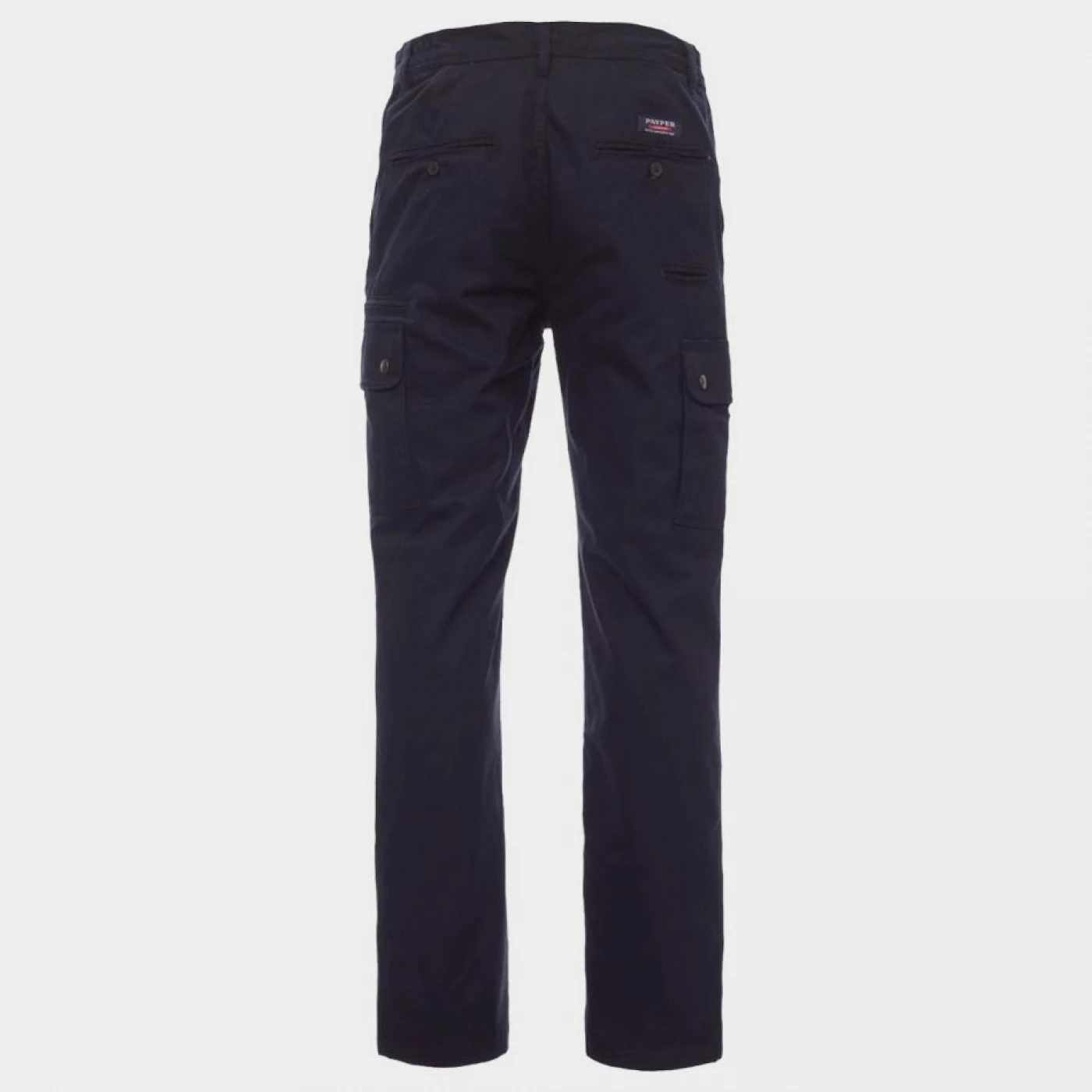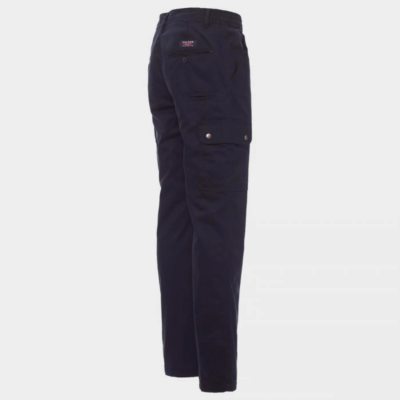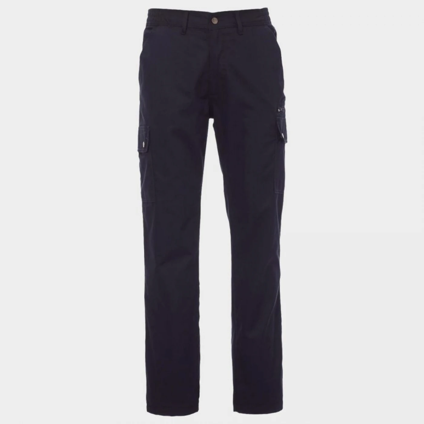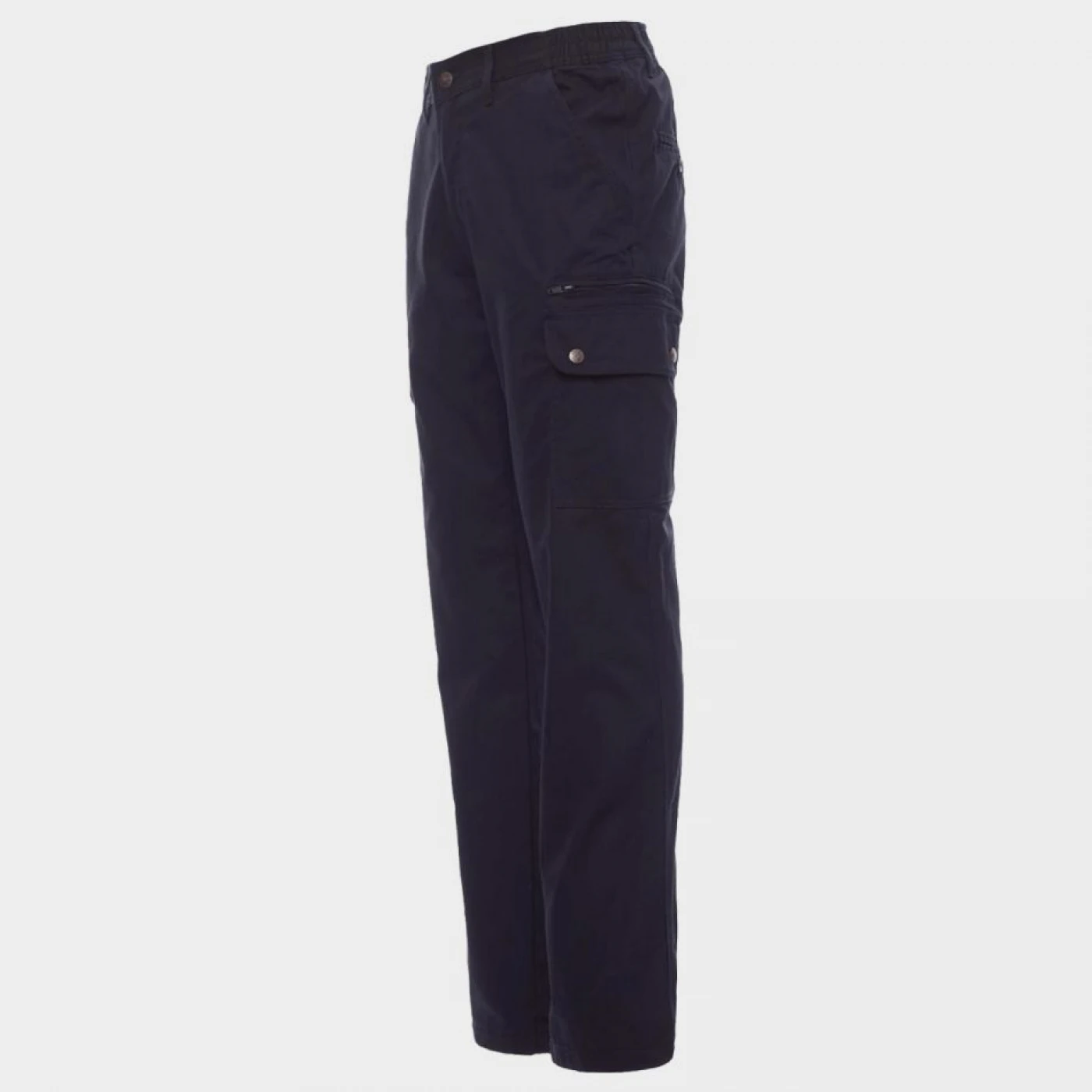 Pantaloni pentru bărbați, de iarnă, căptușiți cu flanelă din poliester (greutate 110 g/mp), cu părți elastice pe lateral și găici pentru centură în talie, închidere cu fermoar și nasture metalic, două buzunare față cu croială clasică, două buzunare laterale cu clapetă și capse, un buzunar cu fermoar pe partea stângă, un buzunar dedicat ruletei de măsurat ce poate fi depliat, pe partea dreaptă, două buzunare spate cu butonieră și nasture.