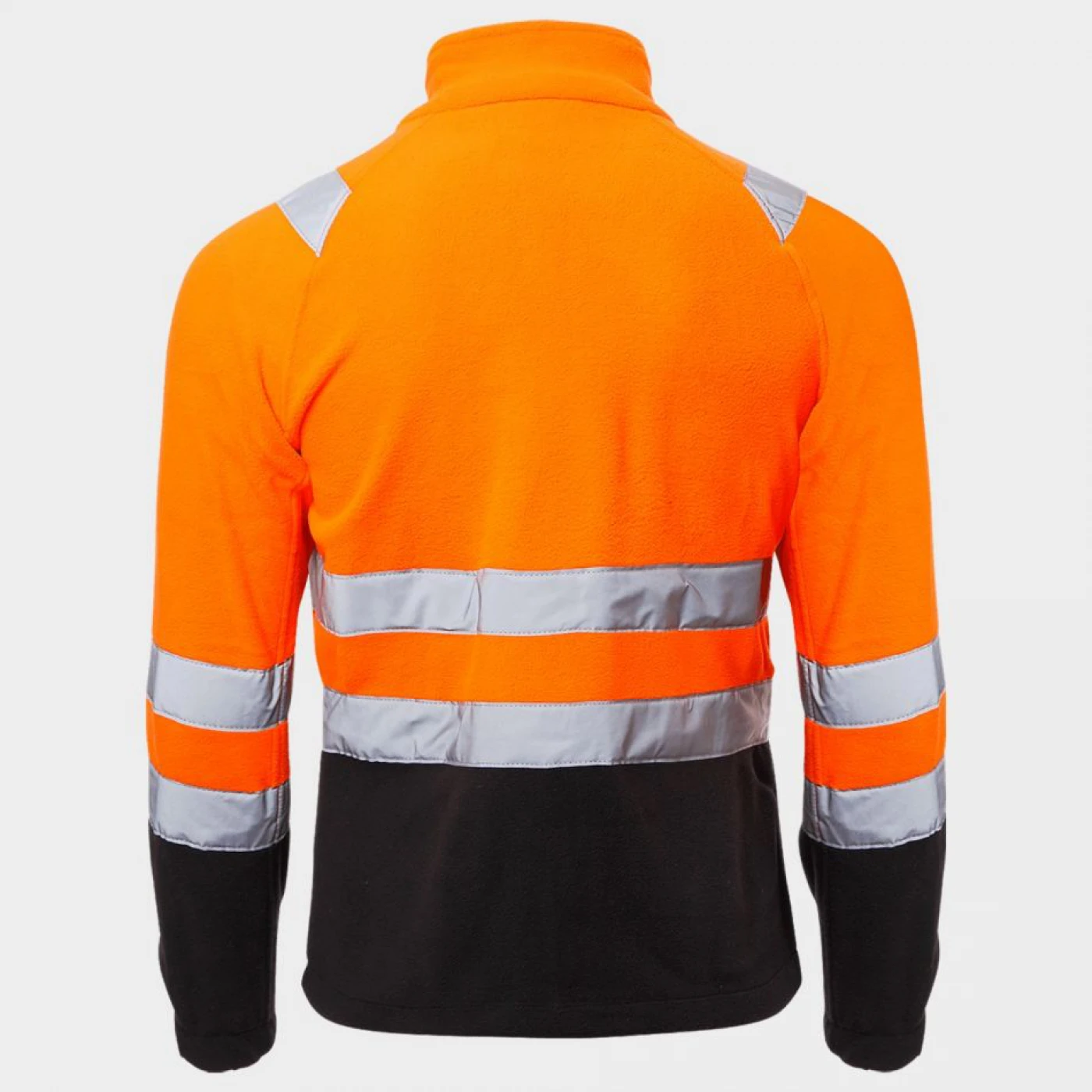 Hanorac reflectorizant din polar cu benzi reflectorizante imprimate.