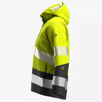 Respirabilă, rezistentă la vânt și hidrofugă. Jacheta softshell cu vizibilitate ridicată Scuti oferă protecție vizibilă într-un design modern și ușor. Este dotată cu buzunare multifuncționale, manșete reglabile, clapetă de furtună, protecție pentru bărbie, glugă detașabilă și orificii de aerisire cu fermoar la subsuori. Cu dungi reflectorizante segmentate.