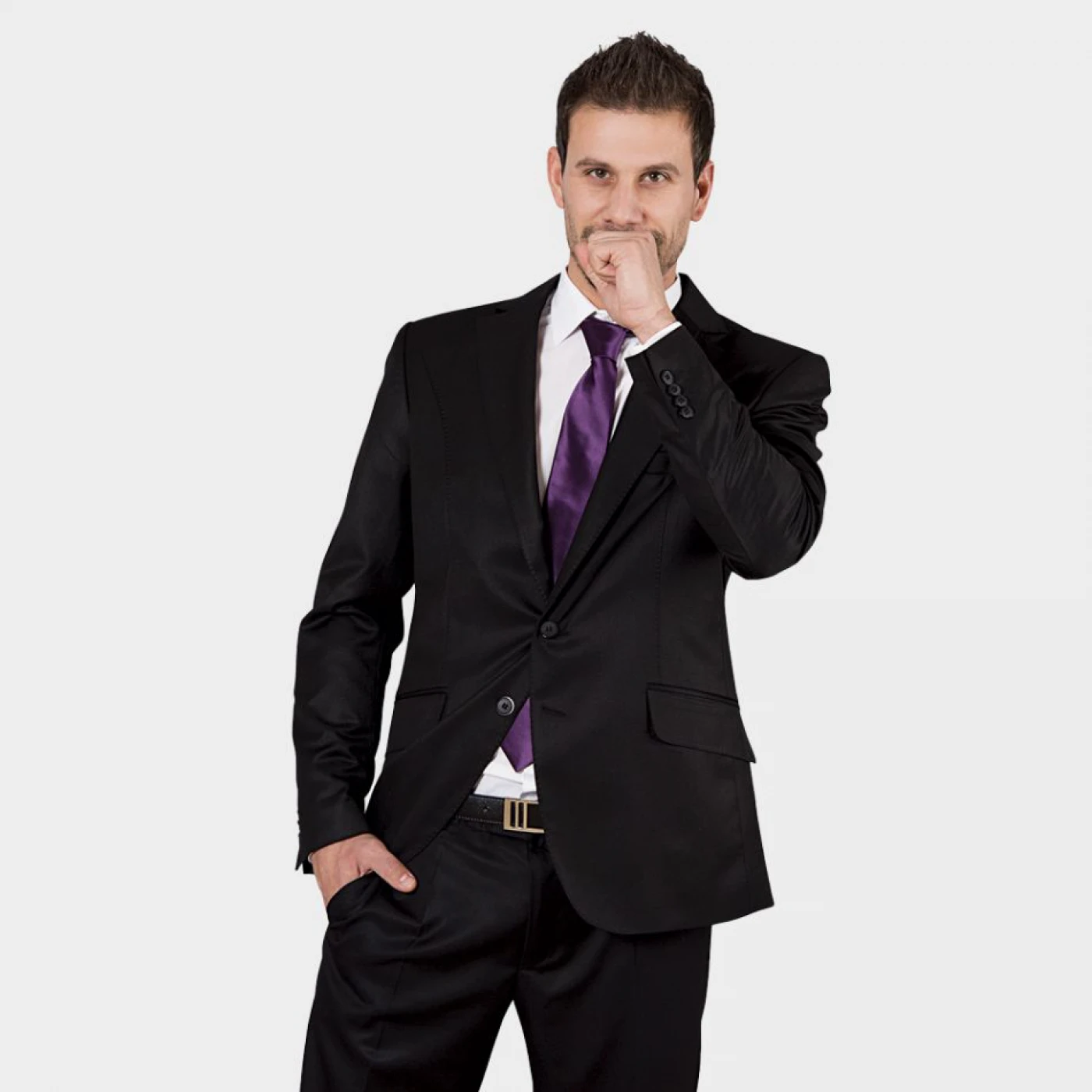 Sacou cu două buzunare inferioare, unul superior și unul interior. Închidere cu doi nasturi din plastic. Model montat cu cusătură decorativă AMF.