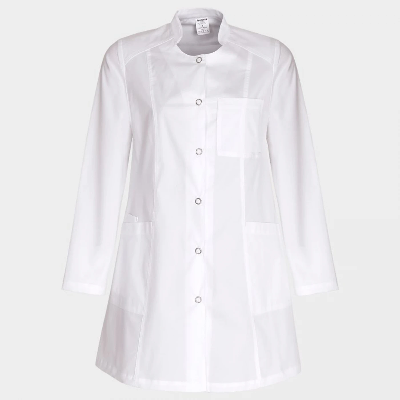 Halat pentru femei, cu mânecă lungă și guler. Închidere cu nasturi tip capse. Un buzunar în stânga sus cu zonă suplimentară pentru ecuson, două buzunare inferioare, cu un buzunar suplimentar mai mic în dreapta.