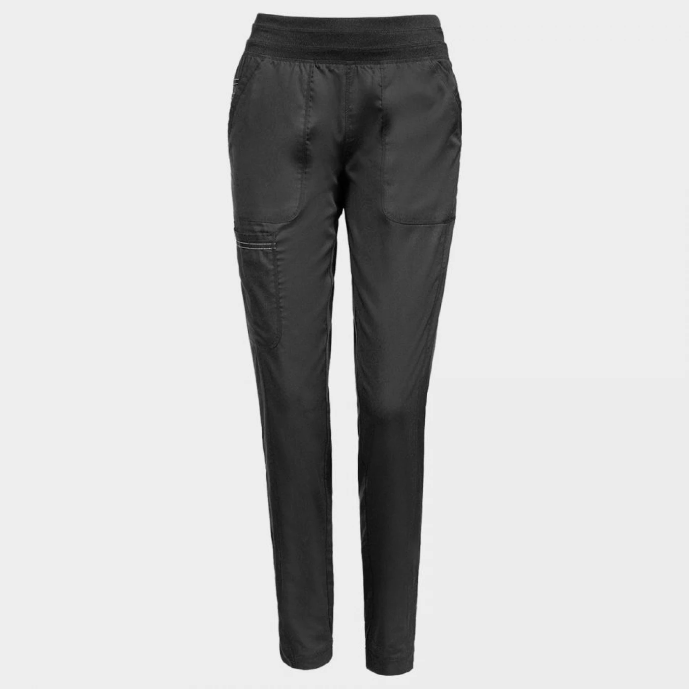 Pantaloni medicali pentru femei, cu talie elastică, care oferă confort și comoditate pe tot parcursul zilei. Parte din colecția Cherokee Revolution, ce combină funcționalitatea cu un stil modern.