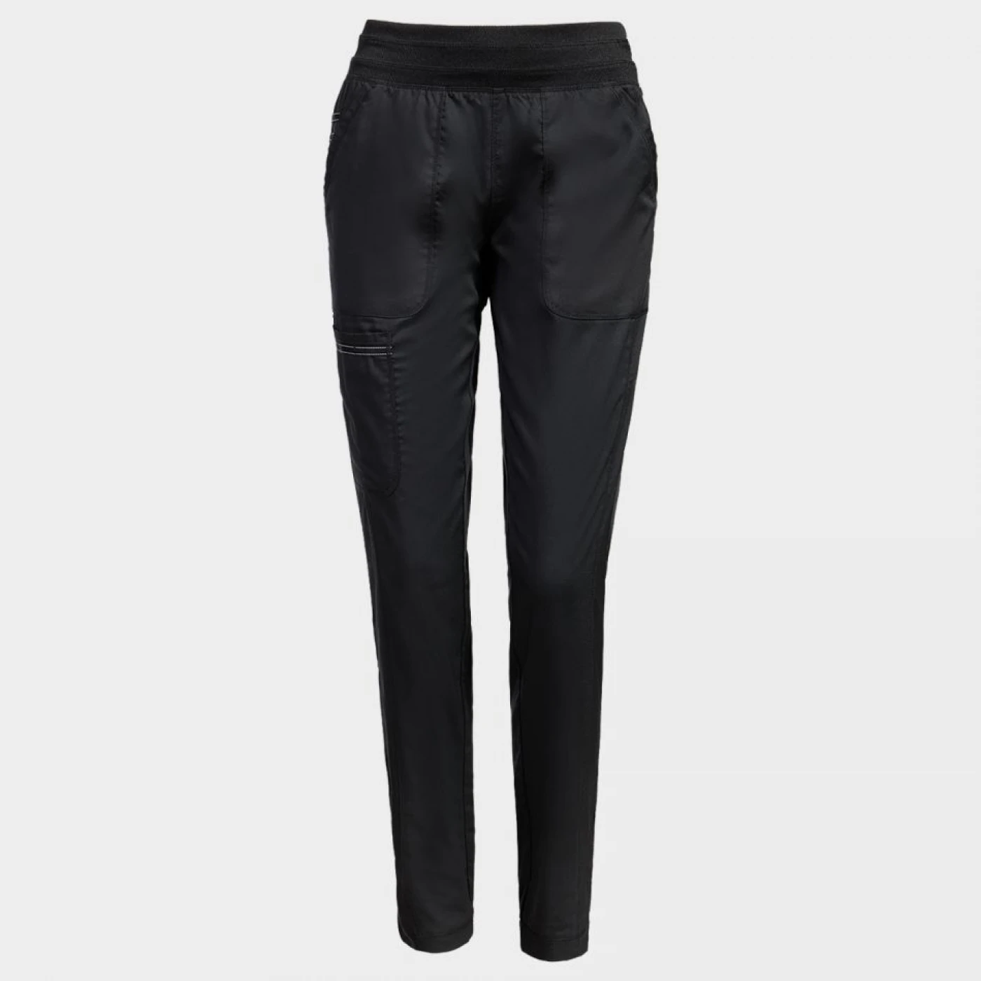 Pantaloni medicali pentru femei, cu talie elastică, care oferă confort și comoditate pe tot parcursul zilei. Parte din colecția Cherokee Revolution, ce combină funcționalitatea cu un stil modern.