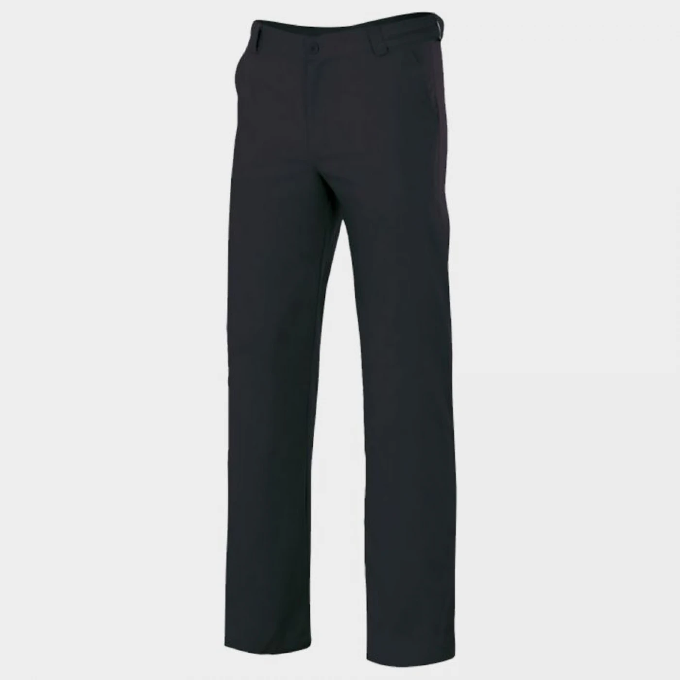 Pantaloni unisex, cu două buzunare în față și două la spate, cu bandă elastică în talie, închidere cu fermoar și nasturi, croi a.