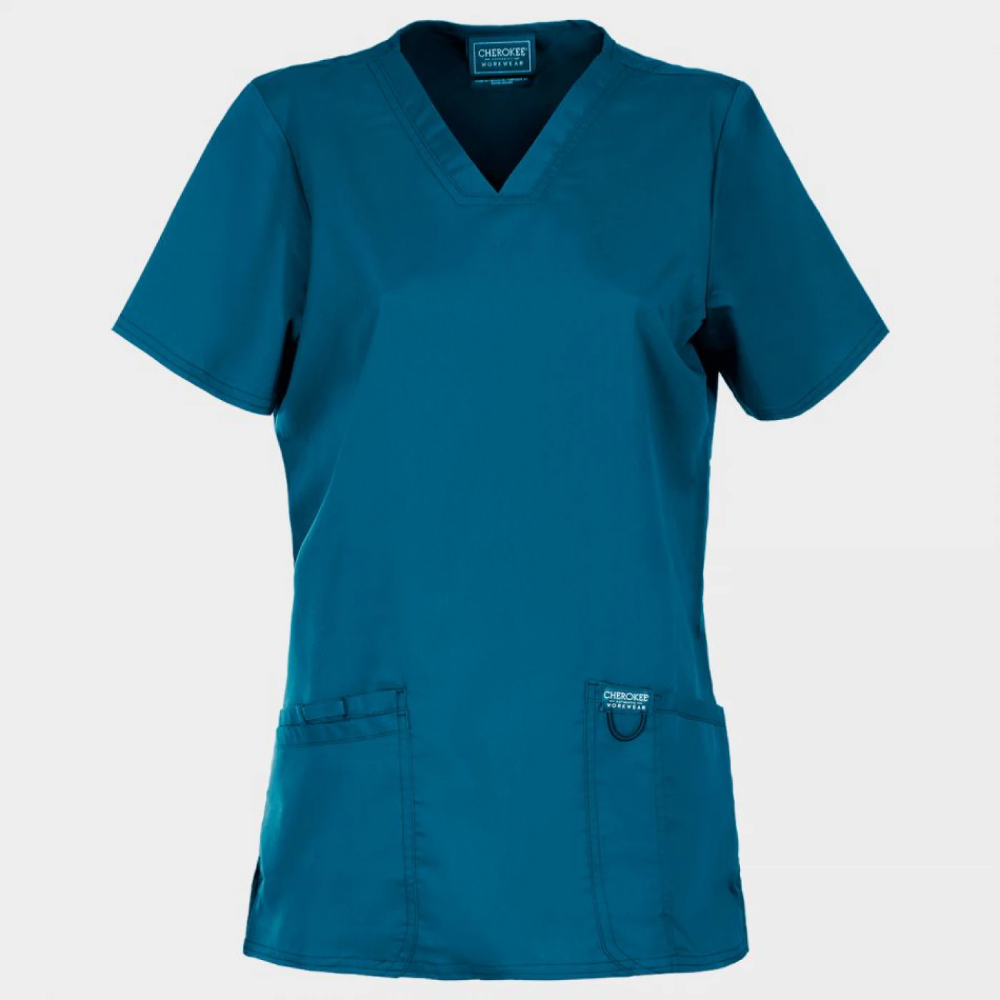Tunică medicală de damă CHEROKEE V-NECK CARIBBEAN BLUE WWE620 / Stenso / Sanitara, Asistenti medicali, Curatenie