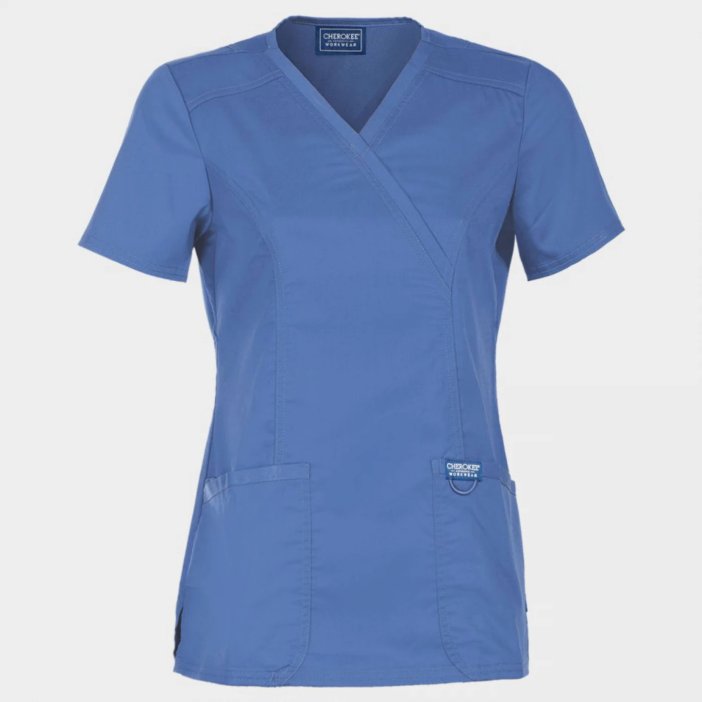 Tunică medicală de damă CHEROKEE WRAP ALBASTRU DESCHIS WWE610 / Stenso / Sanitara, Asistenti medicali, Curatenie