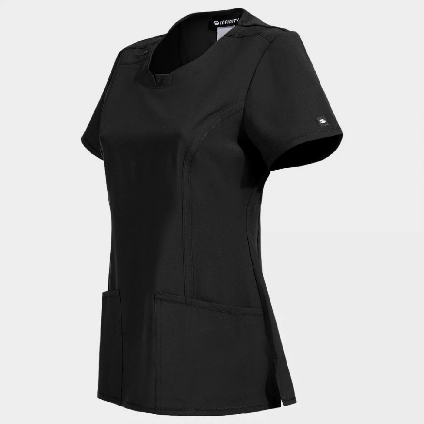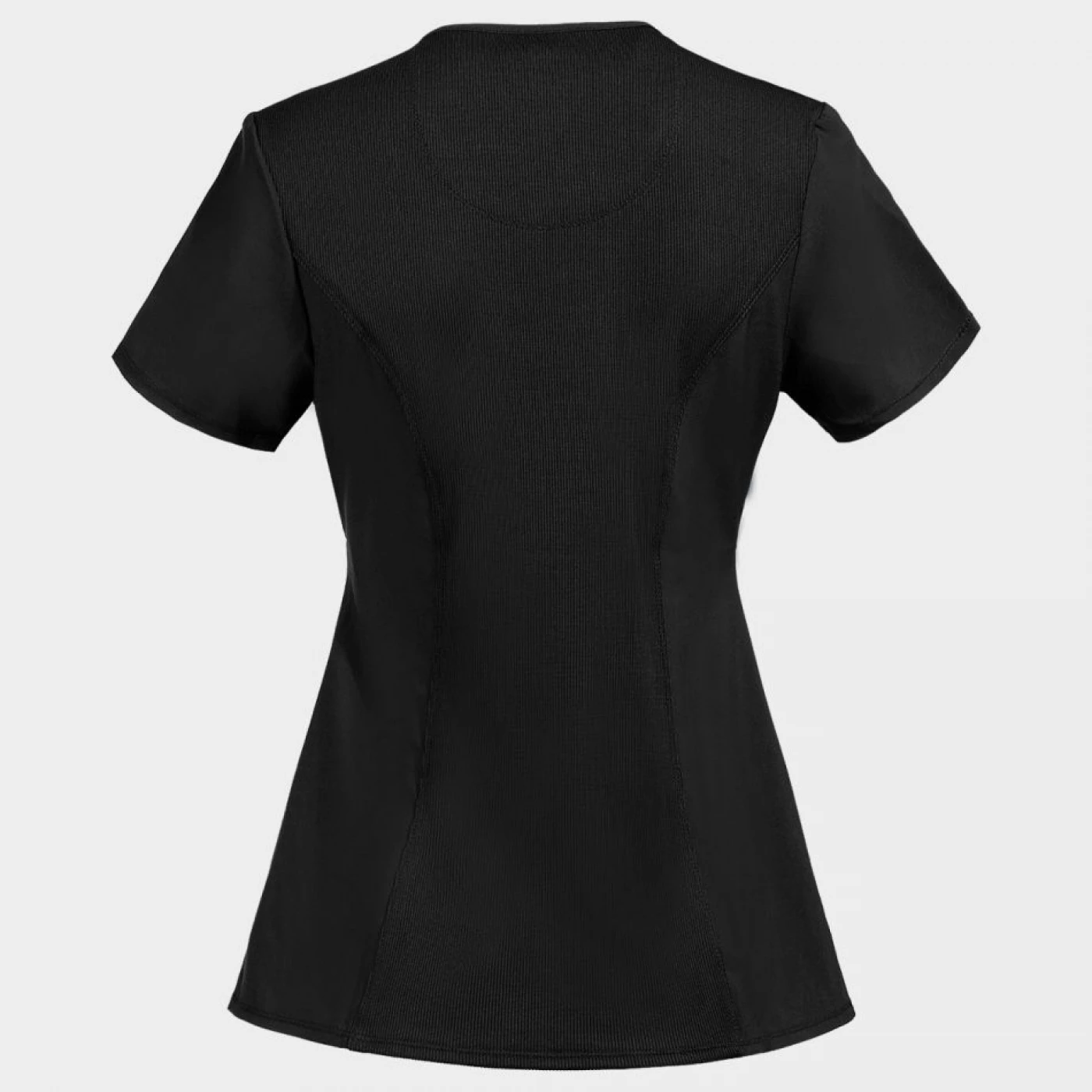 Tunică medicală pentru femei, cu decolteu rotund și tratament antimicrobian, care oferă protecție suplimentară și prospețime pe tot parcursul zilei. Parte din colecția Cherokee Infinity, ce combină designul modern cu funcționalitatea.