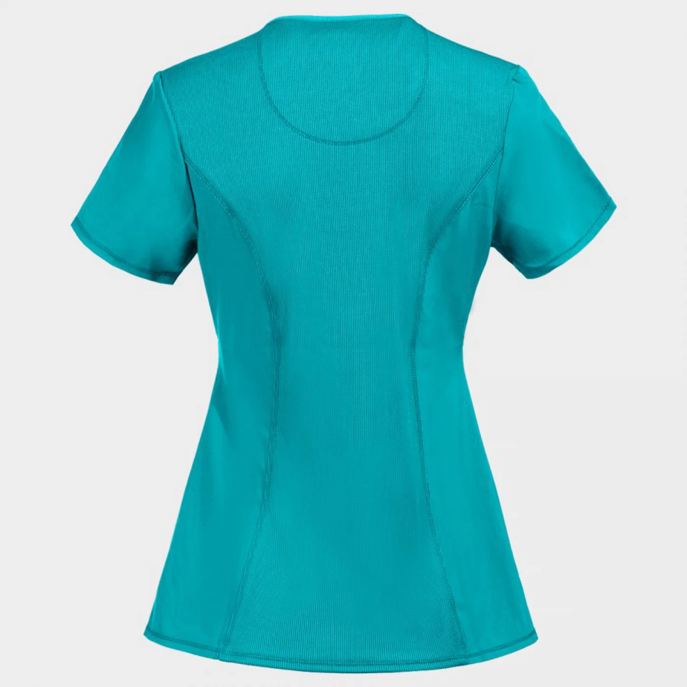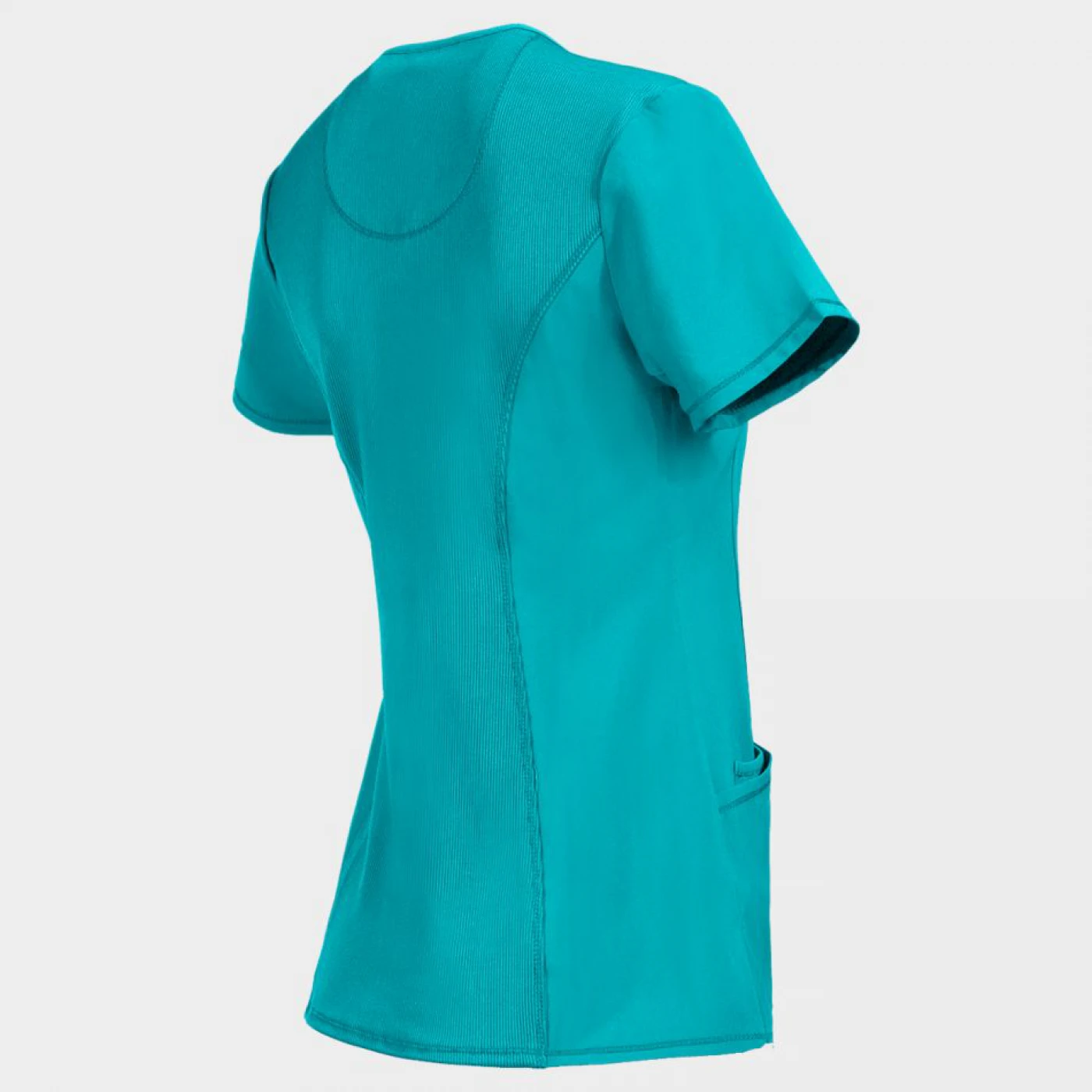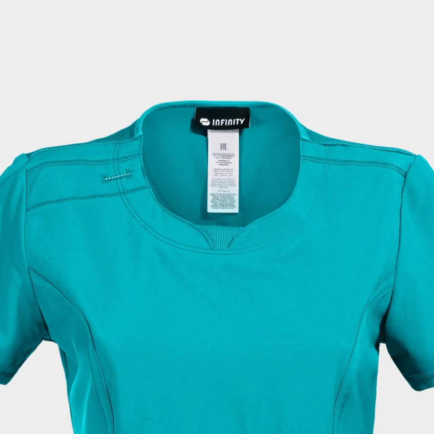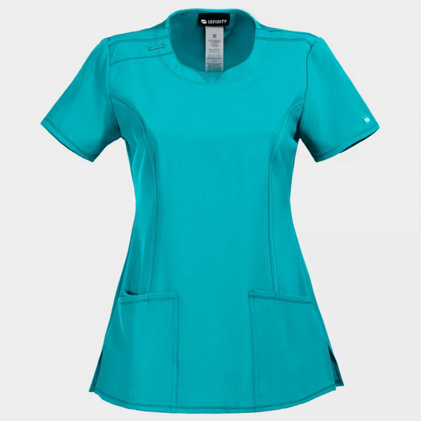 Tunică medicală pentru femei, cu decolteu rotund și tratament antimicrobian, care oferă protecție suplimentară și prospețime pe tot parcursul zilei. Parte din colecția Cherokee Infinity, ce combină designul modern cu funcționalitatea.