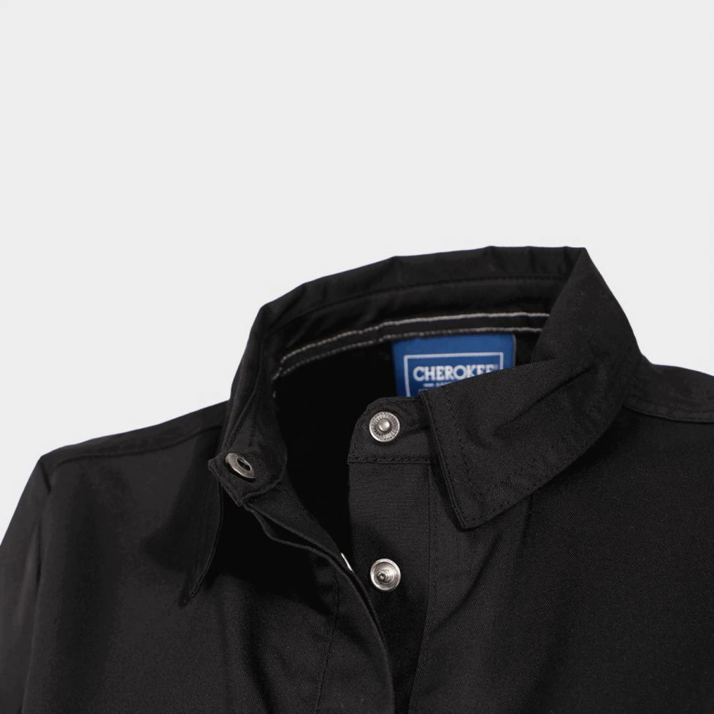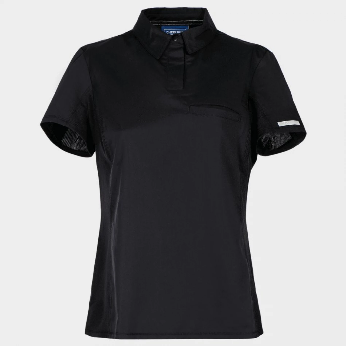 Tunică medicală de damă cu guler polo, oferind un aspect elegant și profesional. Face parte din colecția Cherokee Revolution, combinând confortul, elasticitatea și funcționalitatea.