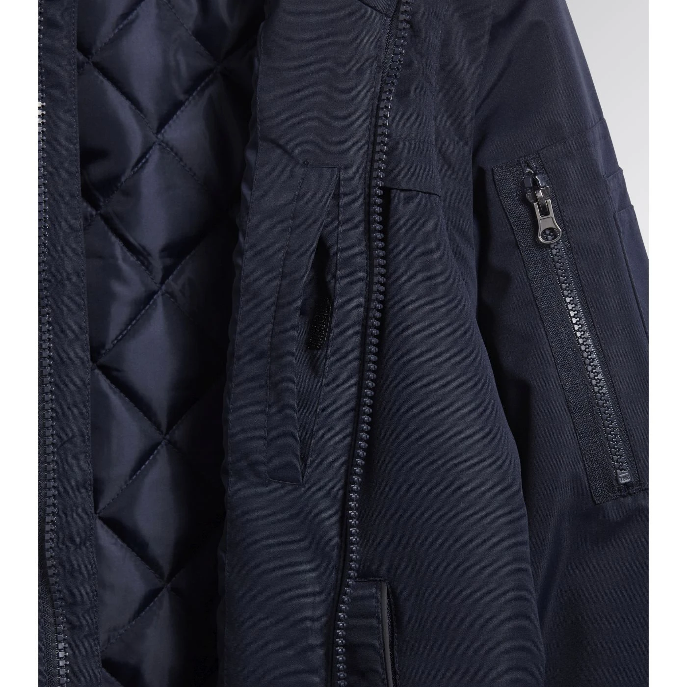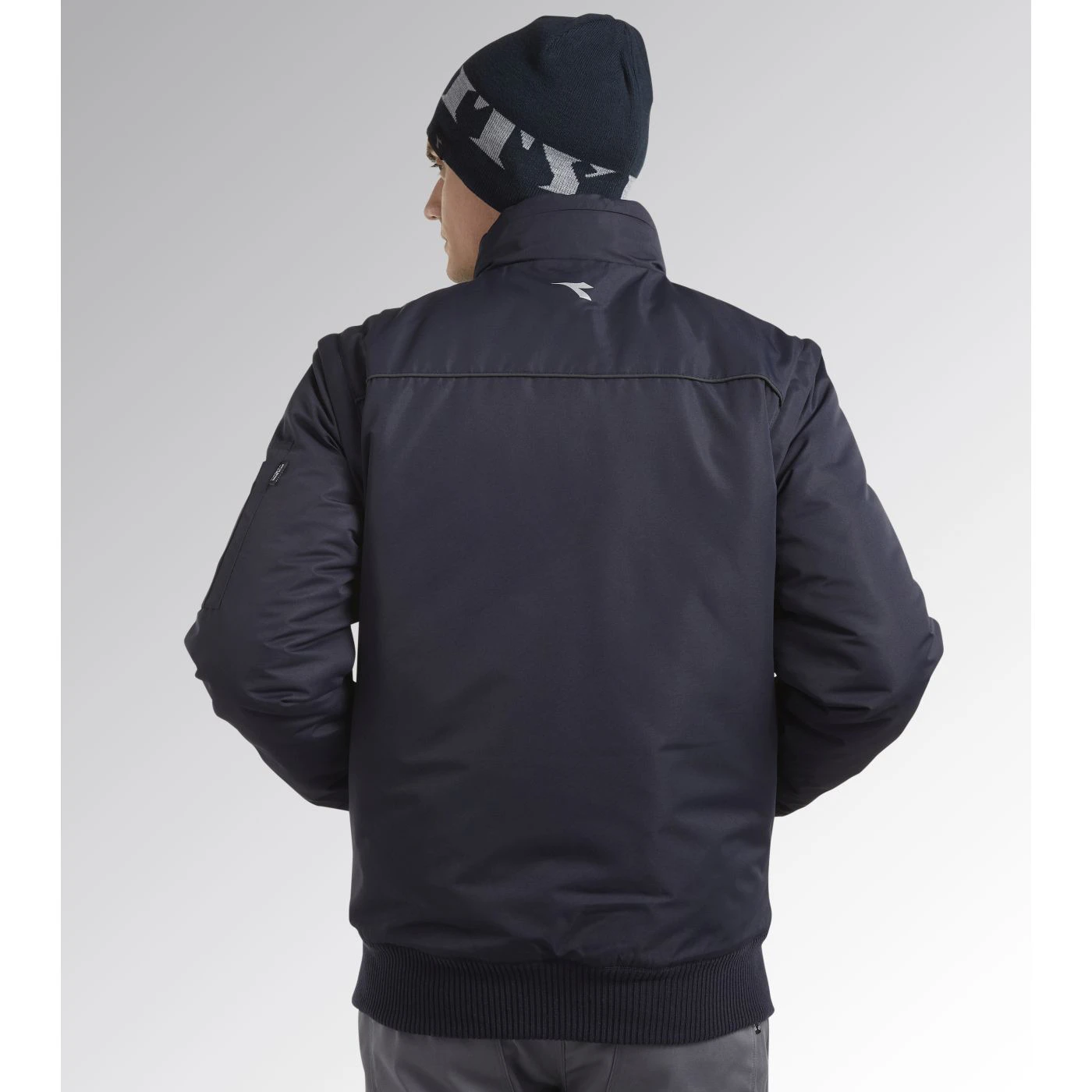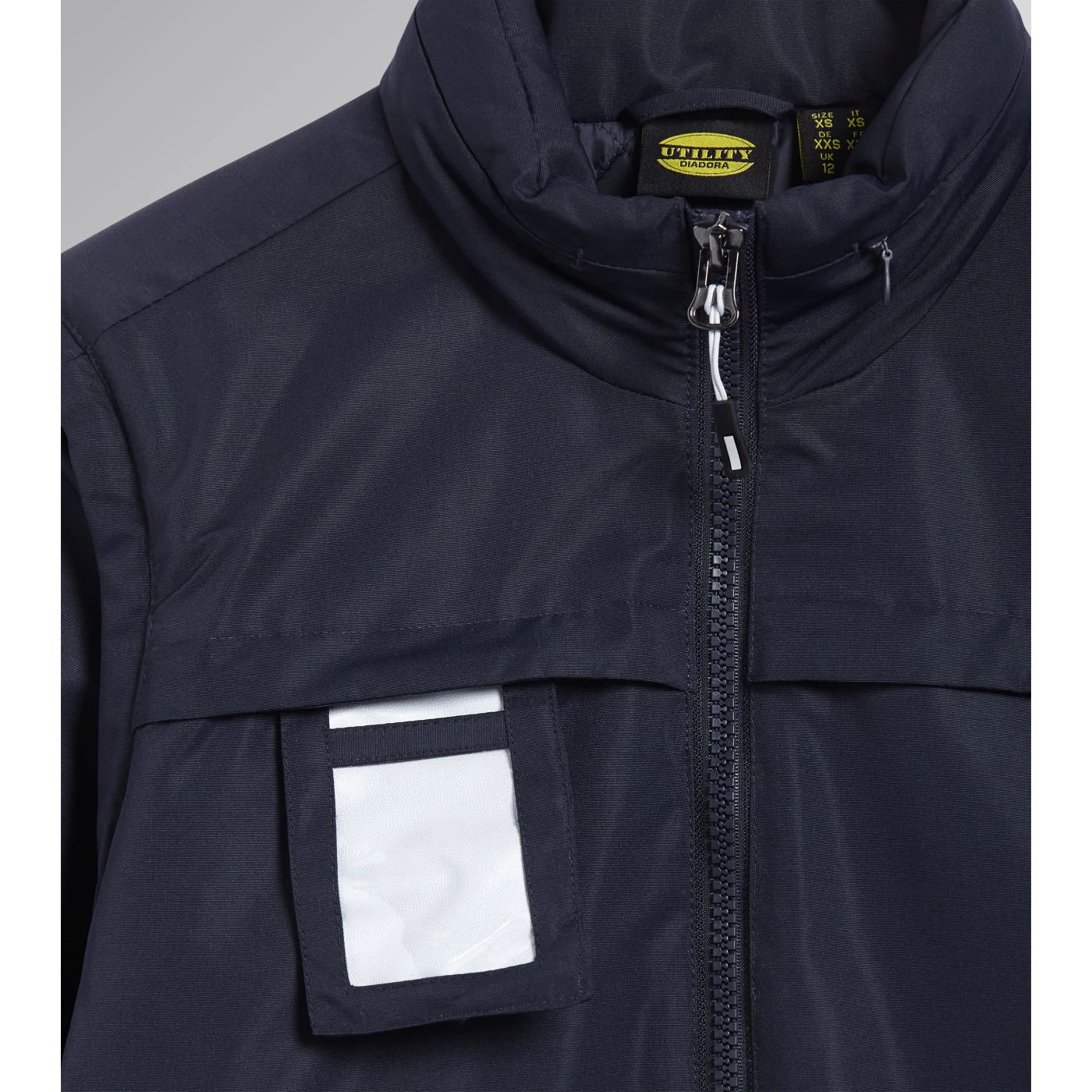 Padded bomber jacket with removable sleeves in abrasion-resistant and water-repellent Ottoman polyester fabric, nylon service hood, soft lining for a warm feel, removable badge holder in chest pocket, reflective details on the back and pocket trim for improved visibility, left side left ree for customisation, ribbed hem and cuffs for greater comfort, cartridge pocket on left sleeve, inside pocket.