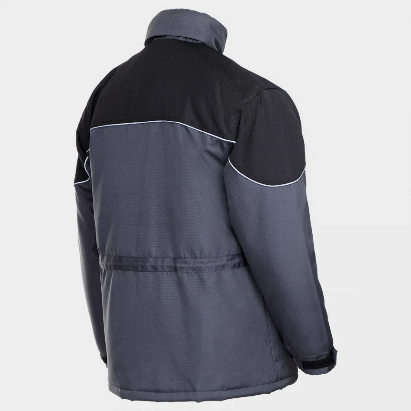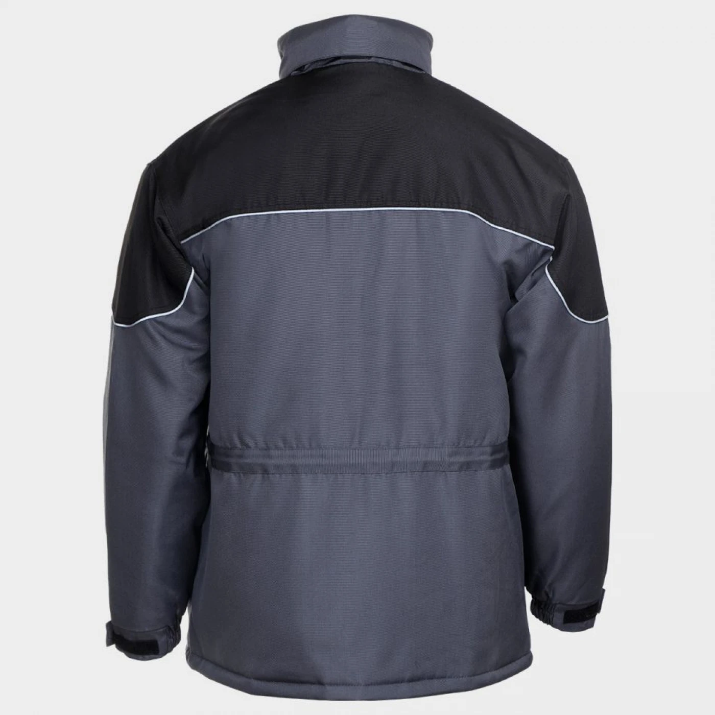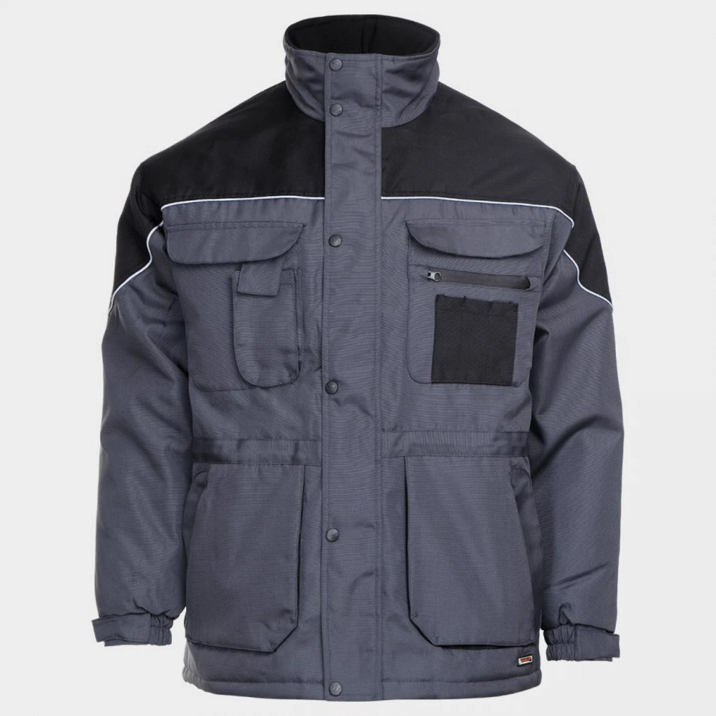Jachetă impermeabilă cu căptușeală termică, buzunare voluminoase și gluga la guler. Închidere cu fermoar și capse. Elemente reflectorizante.