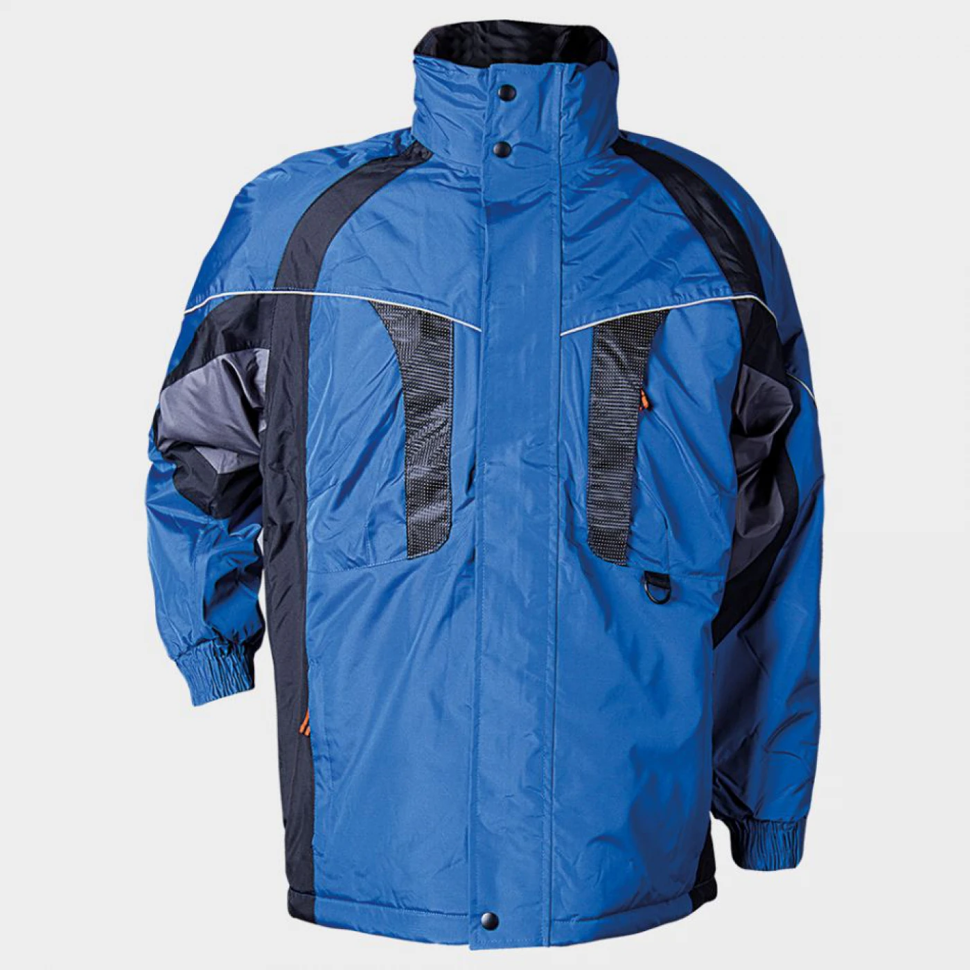 Jachetă rezistentă la apa și la frig cu margini reflectorizante. Glugă în guler.