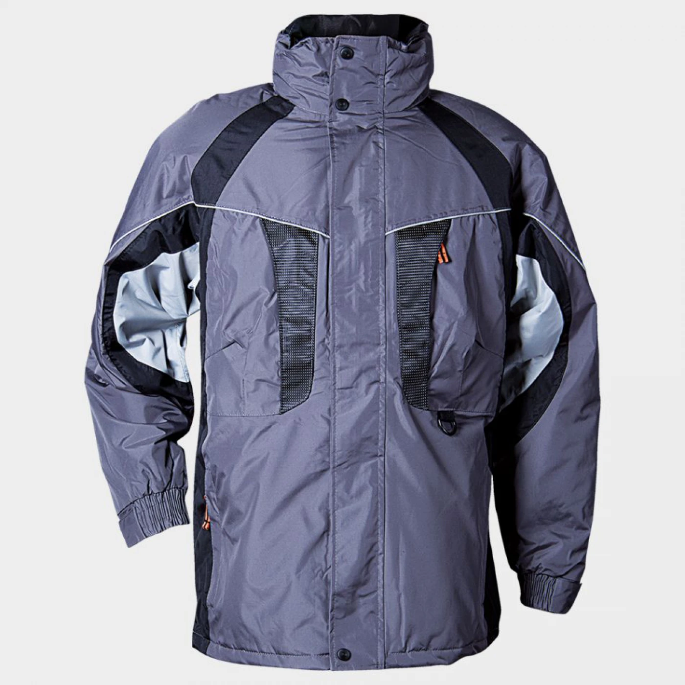 Jachetă rezistentă la apa și la frig cu margini reflectorizante. Glugă în guler.