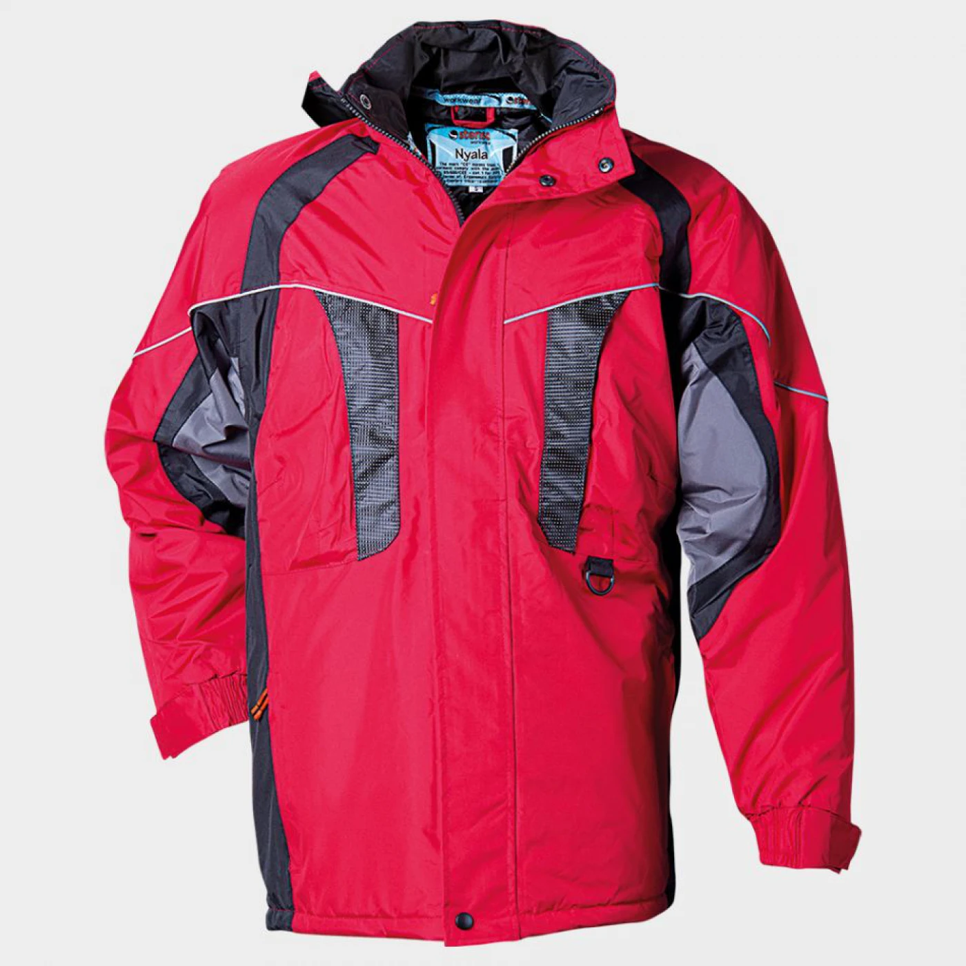 Jachetă rezistentă la apa și la frig cu margini reflectorizante. Glugă în guler.