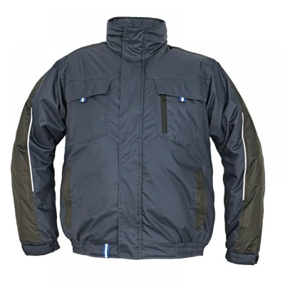 Jachetă scurtă bărbătescă de iarnă, cu izolaţie insulated, cu glugă în guler, fermoar acoperit, două buzunare laterale, două buzunare de dimensiuni mari la piept, două buzunare interioare; benzi reflectorizante pe mâneci, pe marginile buzunarelor şi pe guler; manşete ajustabile cu velcro; material impermeabil şi rezistent la vânt