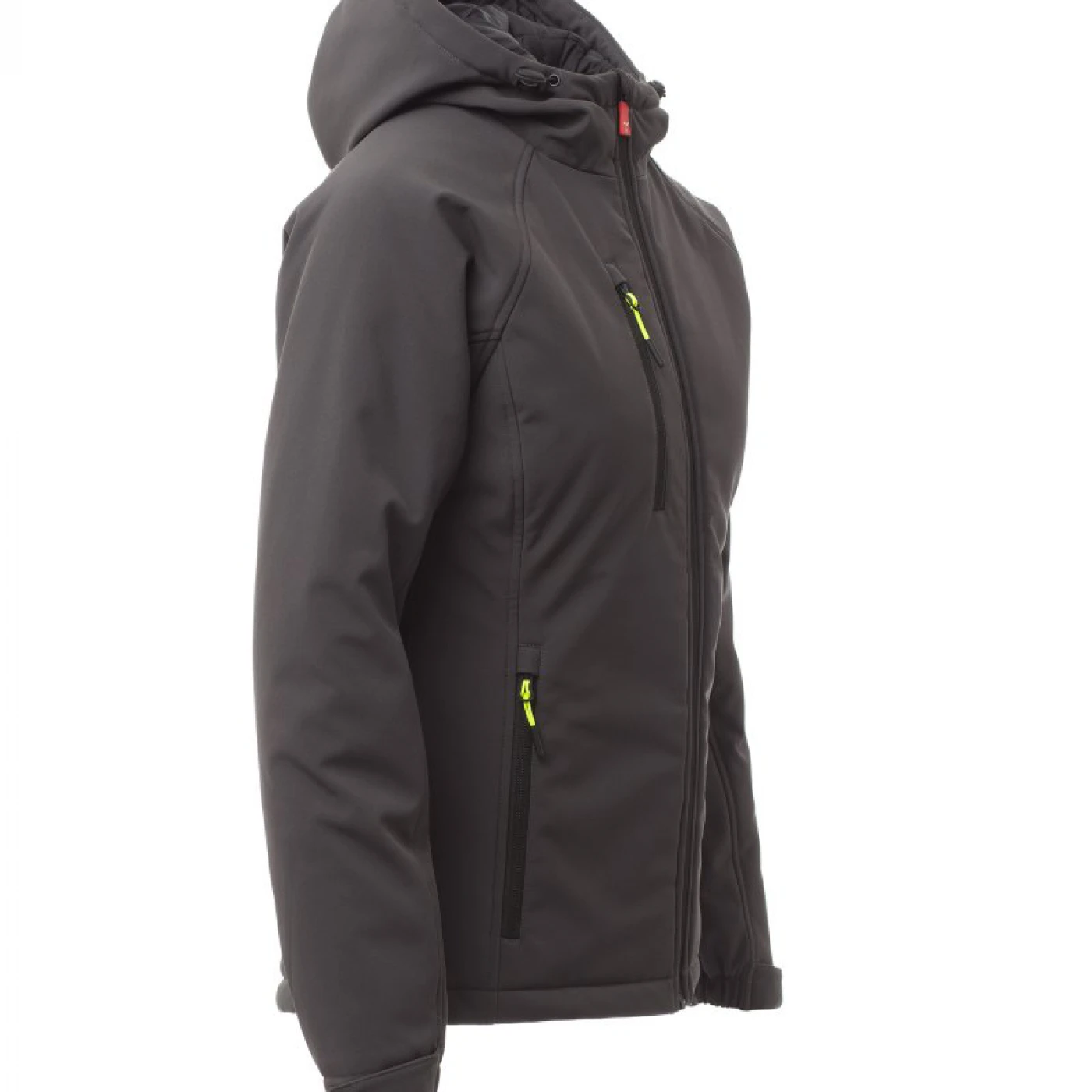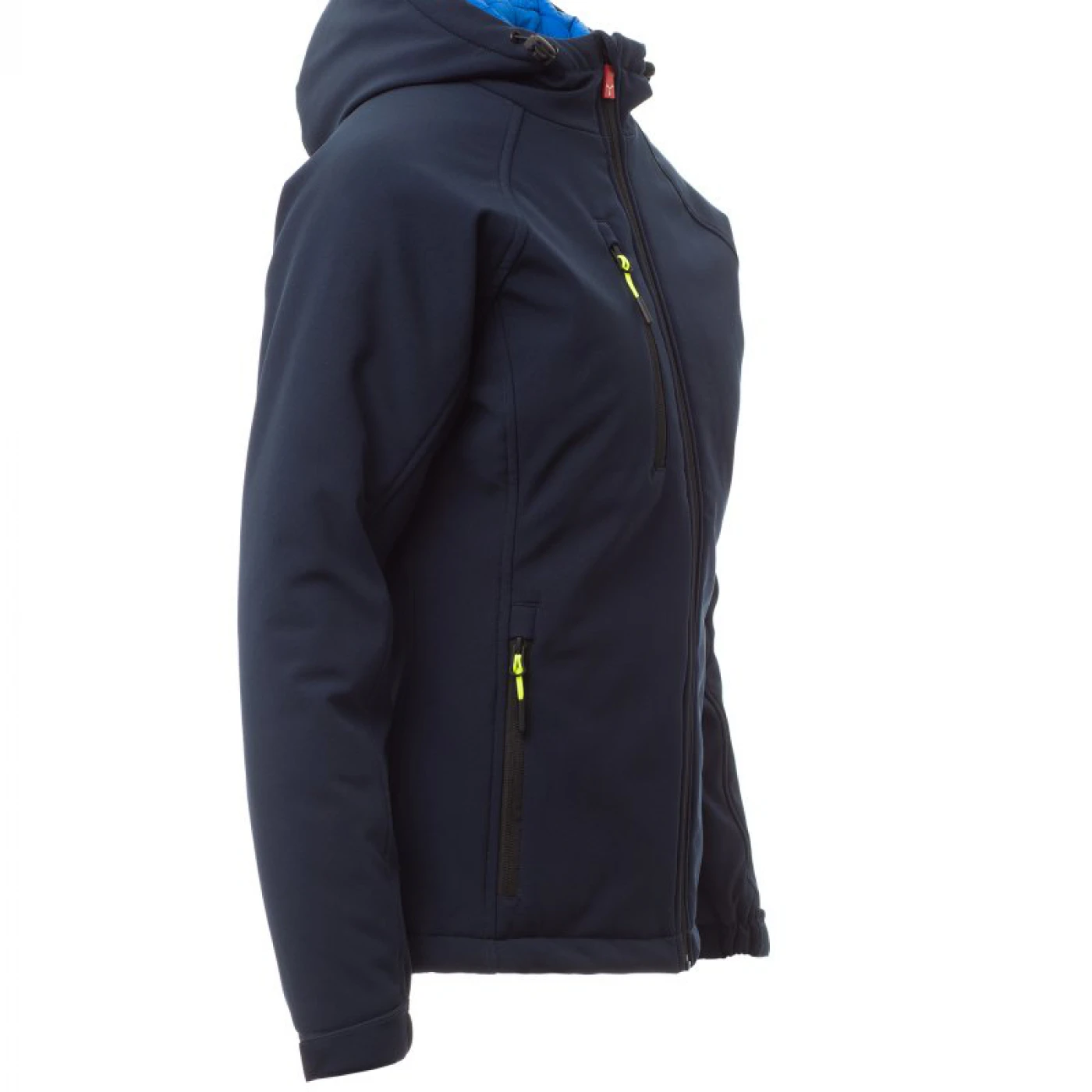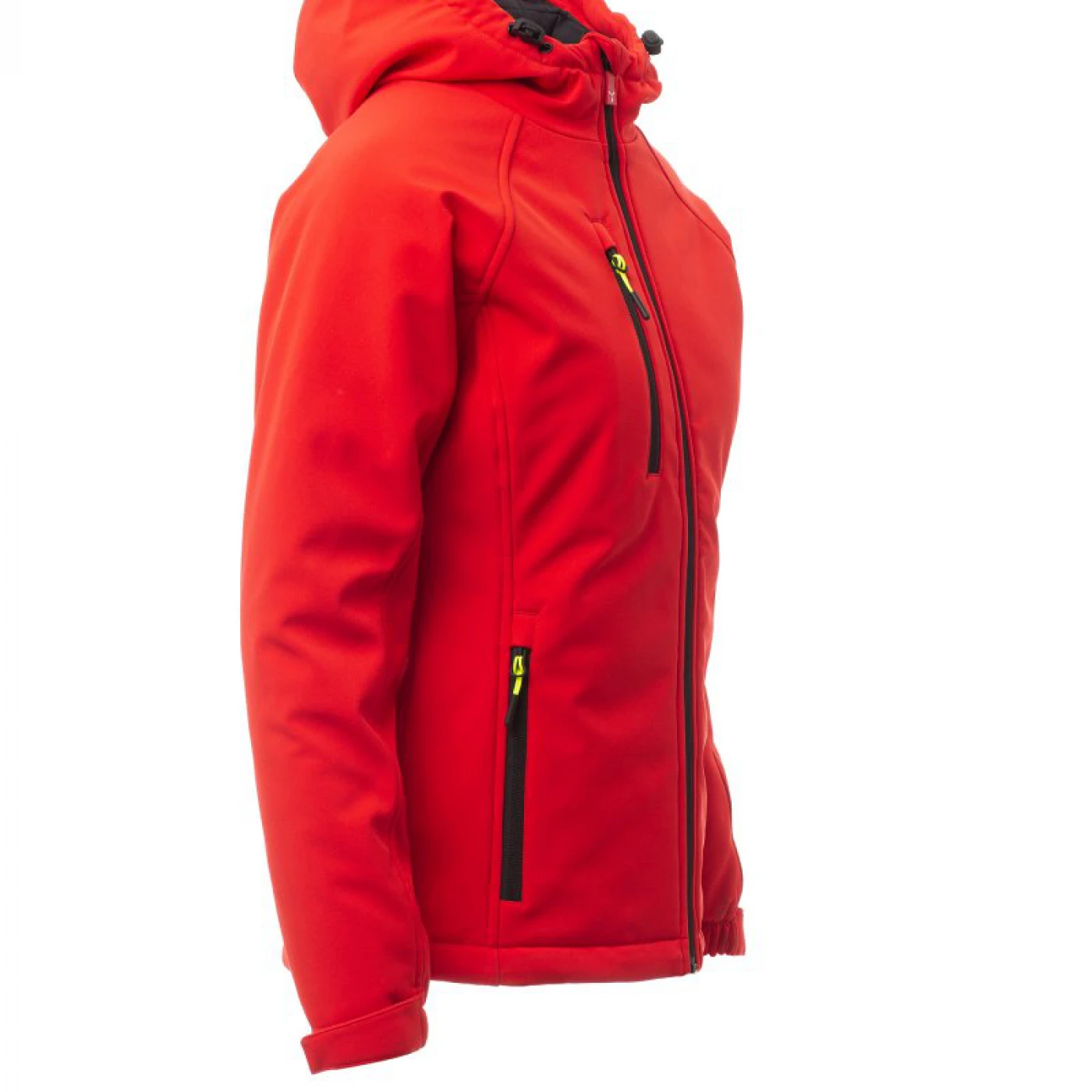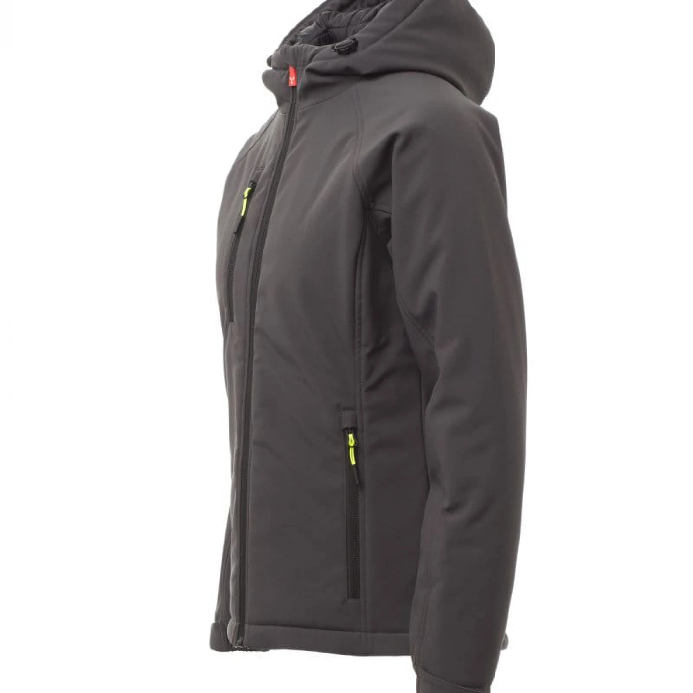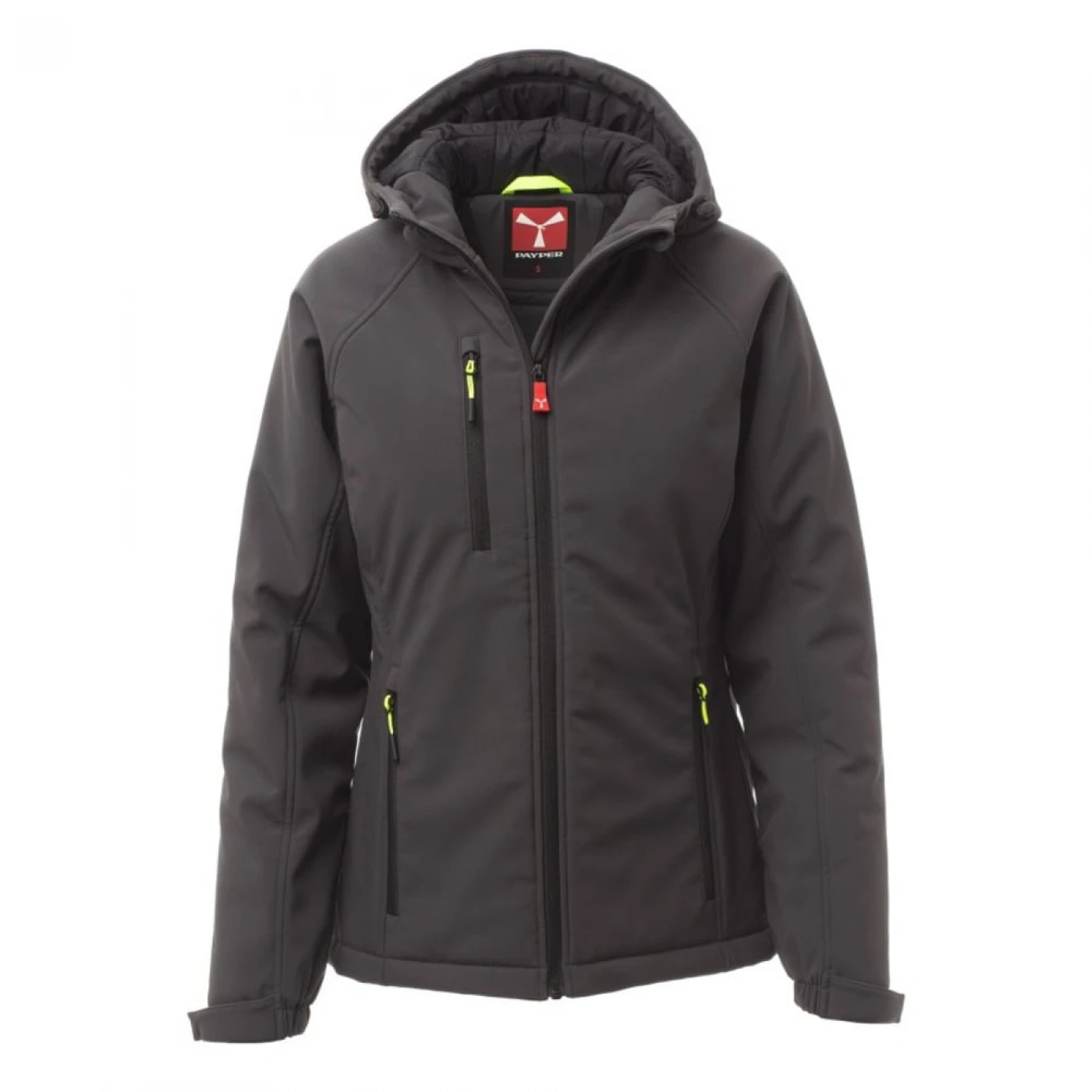 Jacheta softshell de iarna pentru femei, cu gluga nedetasabila si care asigura o protectie sporita impotriva vantului (windproof) si impotriva apei (waterproof - WP 8000 mm H₂O, WVT 5000 g/m² 24h). Are o croiala confortabila, inchidere cu fermoar lung cu sistem de semiblocare si mansete reglabile cu velcro. In partea din fata are doua buzunare laterale si unul pe piept, toate cu inchidere cu fermoar fluorescent. La interior este echipata cu doua buzunare, unul cu inchidere cu velcro si unul cu fermoar. \n