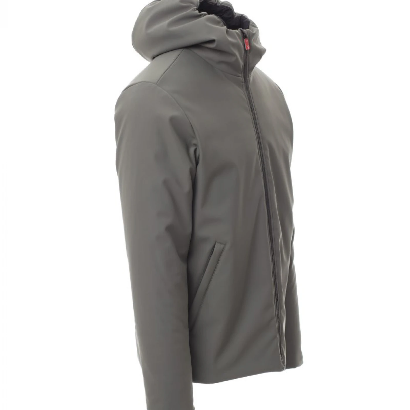 Jacheta softshell de iarna pentru barbati, cu gluga nedetasabila, captusita pe interior si care asigura o protectie sporita impotriva vantului (windproof) si impotriva apei (waterproof – WP 8000 mm H₂O, WVT 3000 g/m² 24h). Are o croiala confortabila, inchidere cu fermoar lung cu sistem de semiblocare si mansete reglabile cu velcro. Echipata cu doua buzunare frontale si unul interior, toate cu inchidere cu fermoar. \n