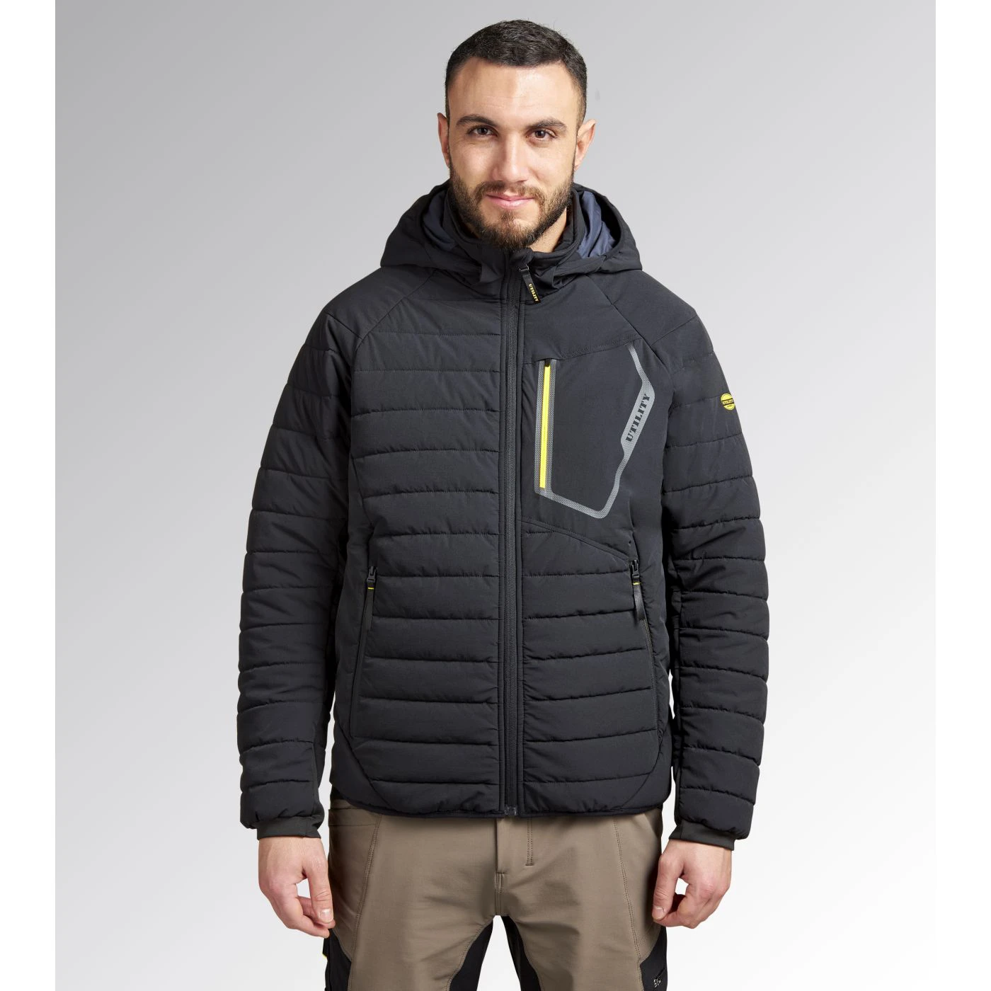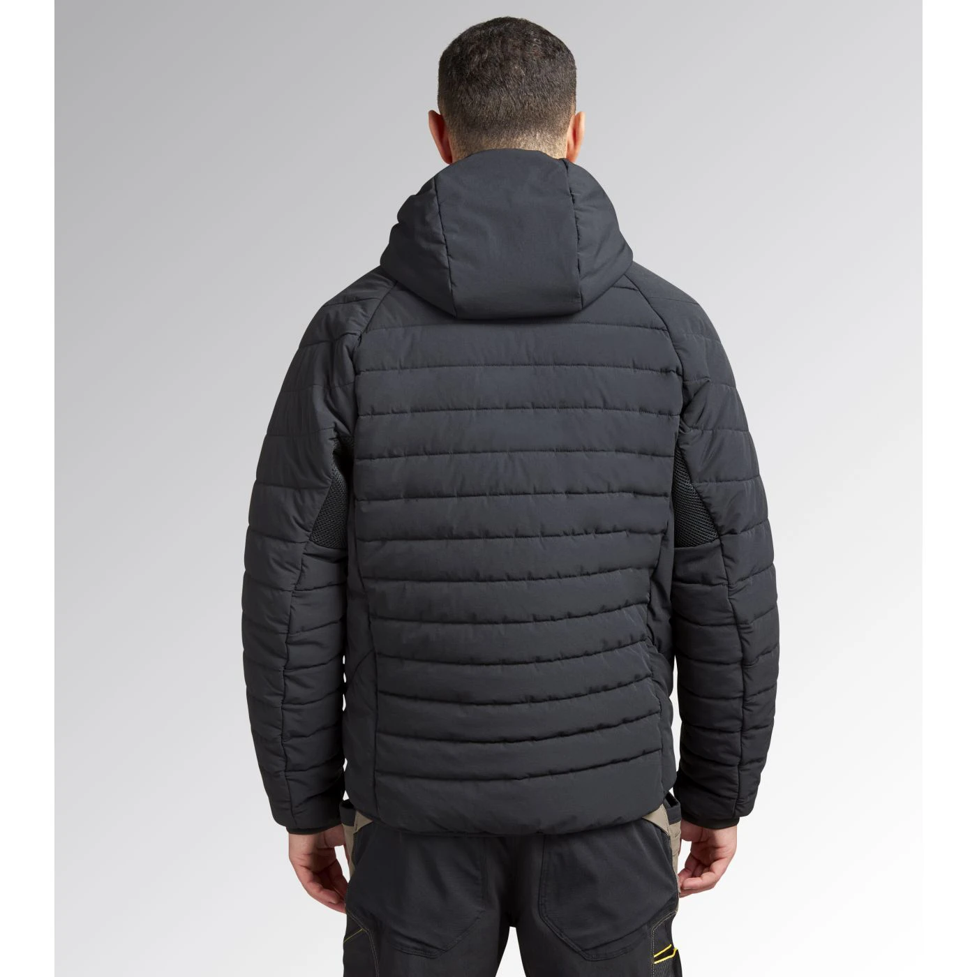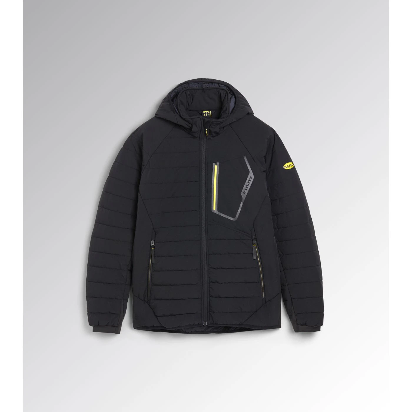 Padded stretch jacket with thermal eco-certified SORONA® AURA wadding, a fibre that comes from renewable sources, made with an environmentally friendly focus. Durable Water Resistant treatment for increased water protection. 4way stretch nylon lining on the back to guarantee maximum comfort and a graphene-detailed front and sleeves for proper heat regulation. Breathable mesh inserts on the underarms. Zip-off ergonomic hood with press-stud buttons and inner elastic for a better fit. Two zipped side pockets with contrasting detailing and one front pocket with contrasting zip and a heat-sealed Utility-branded print. Chin guard with branded inner print. Two inner pockets and an elasticated hem. Ergonomic raglan sleeves and 3D Mesh inserts on the underarms for increased breathability. Sleeve trims with shaped elasticated cuffs. Regular fit.
