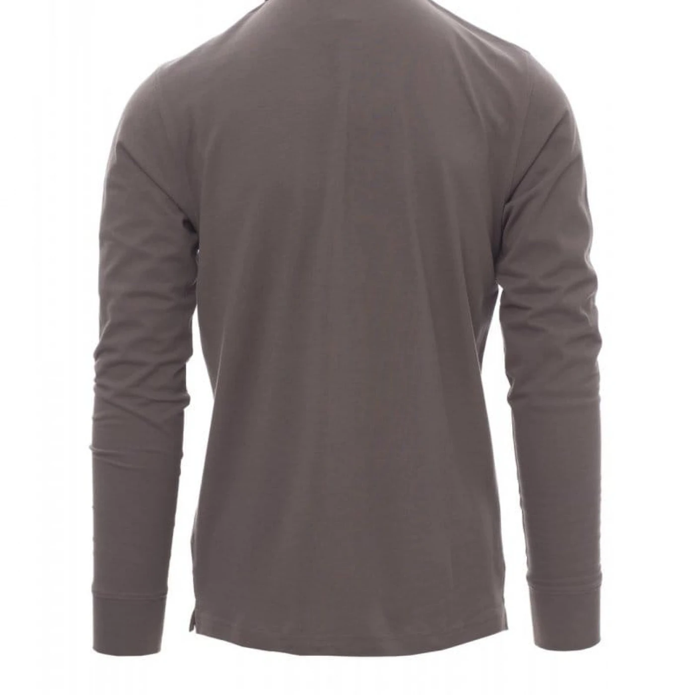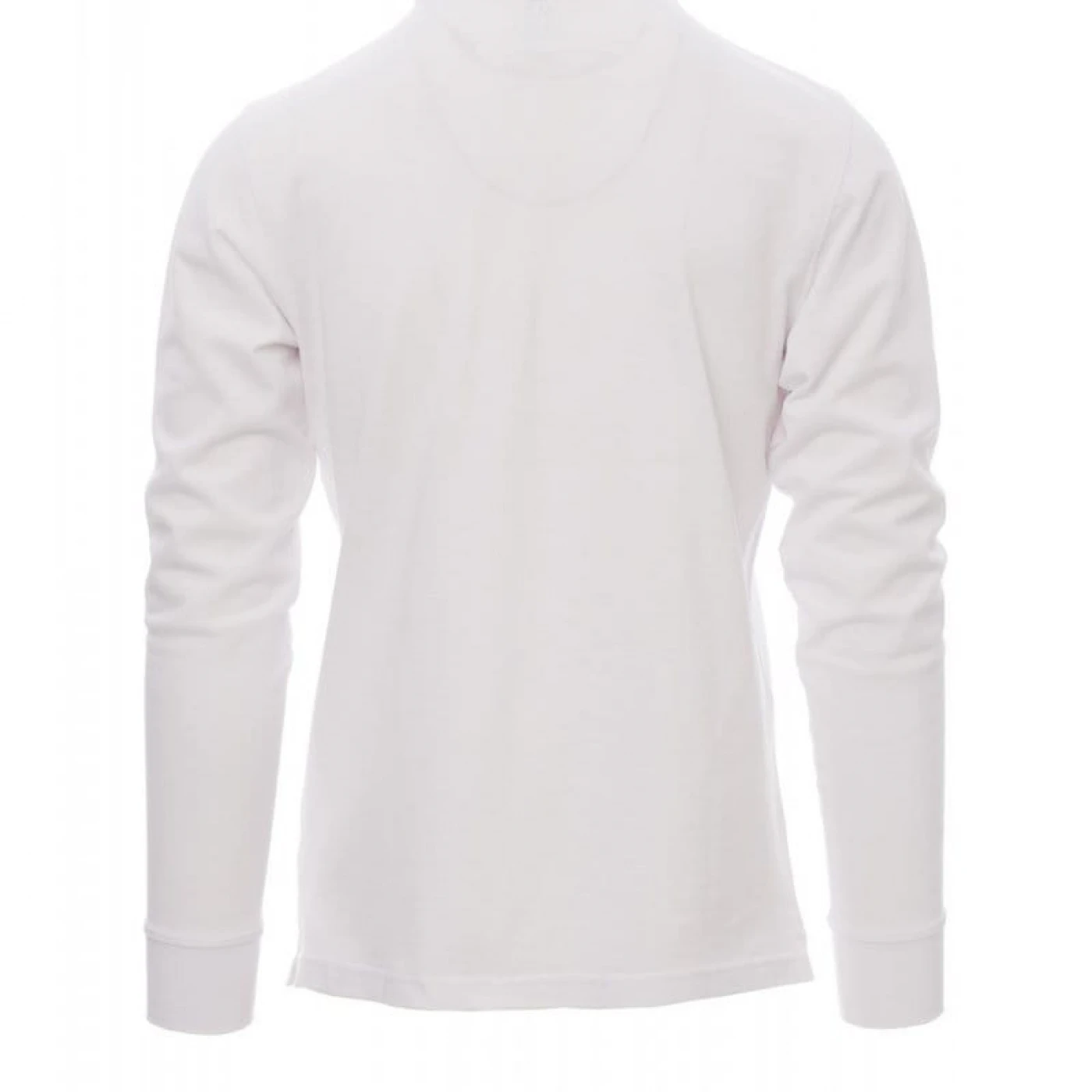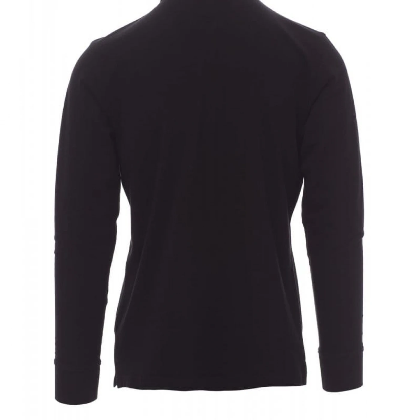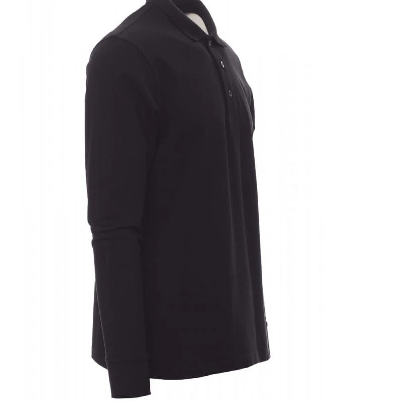Tricou polo pentru barbati cu maneci lungi terminate cu mansete elastice, inchidere frontala cu 3 nasturi cu efect sidef, cusaturi ascunse pentru guler cu banda de culoare asortata, banda de intarire pe laterale