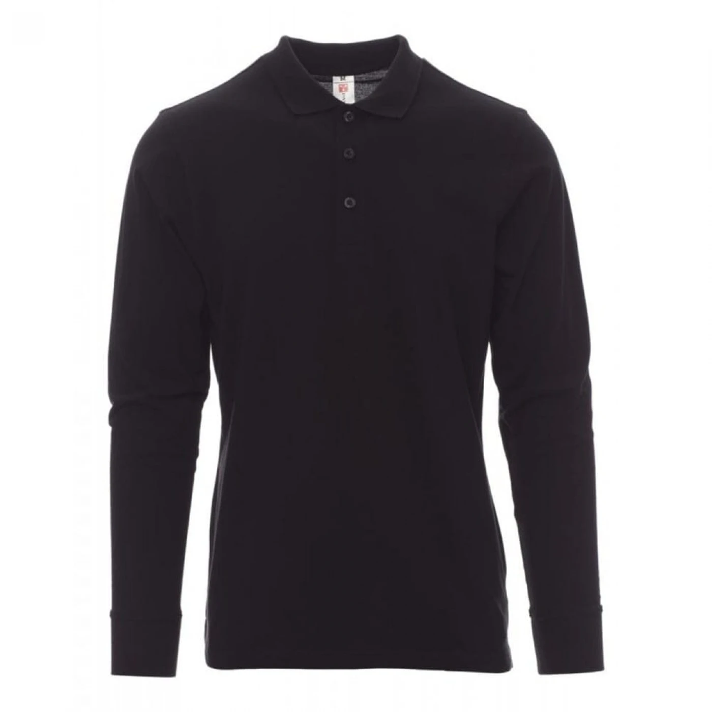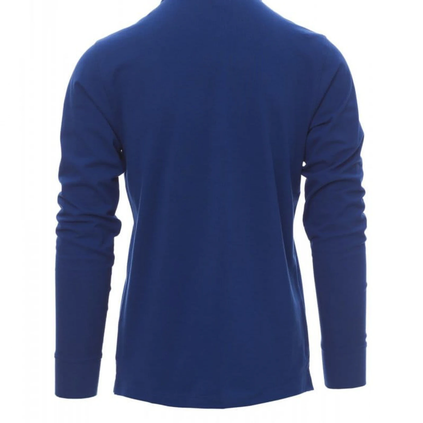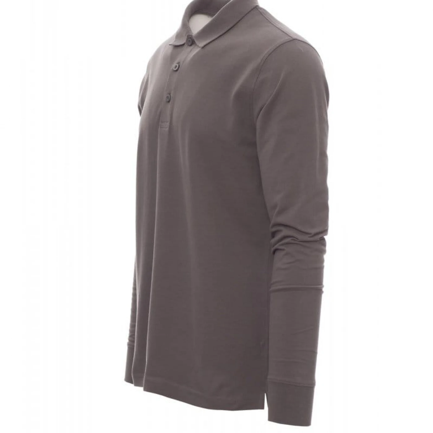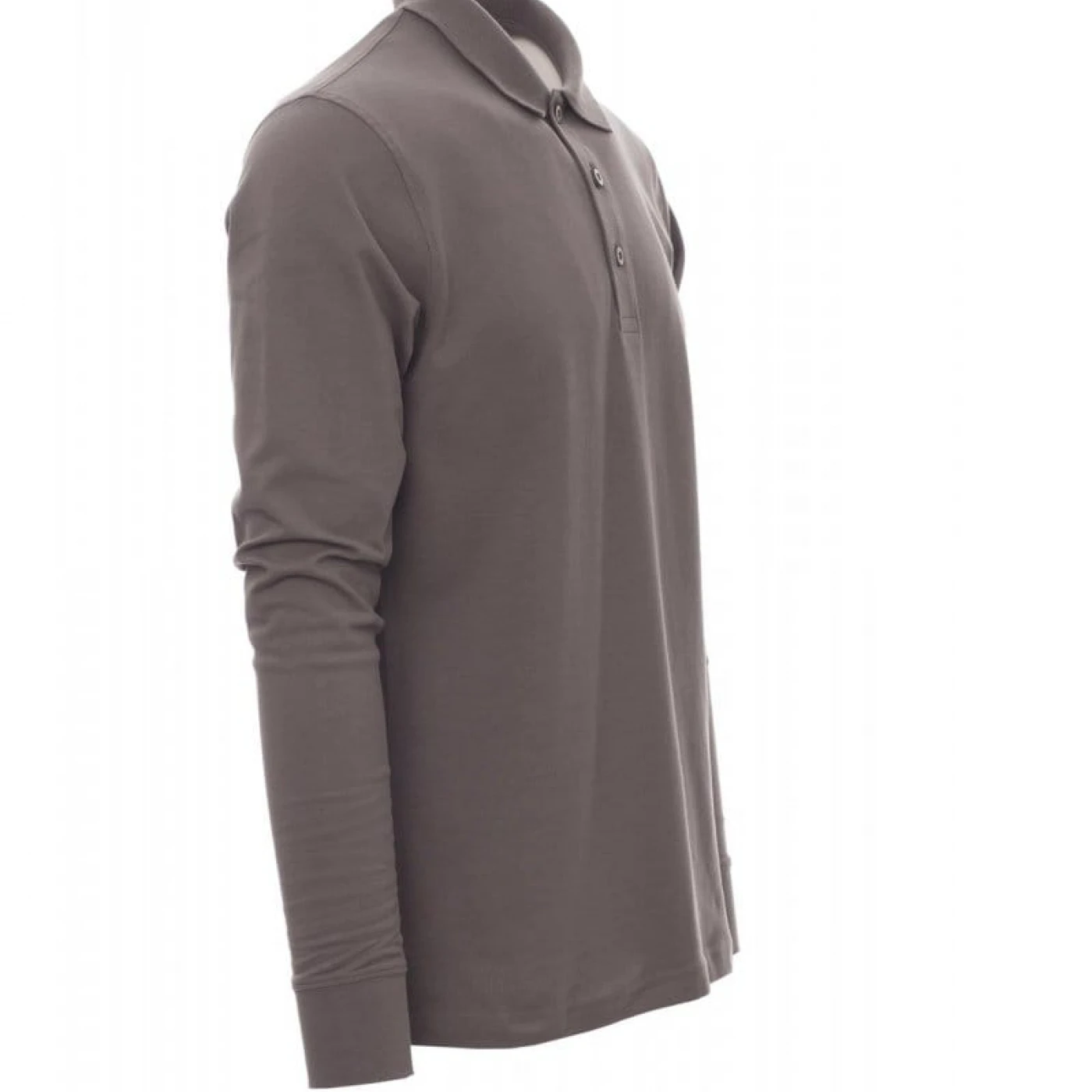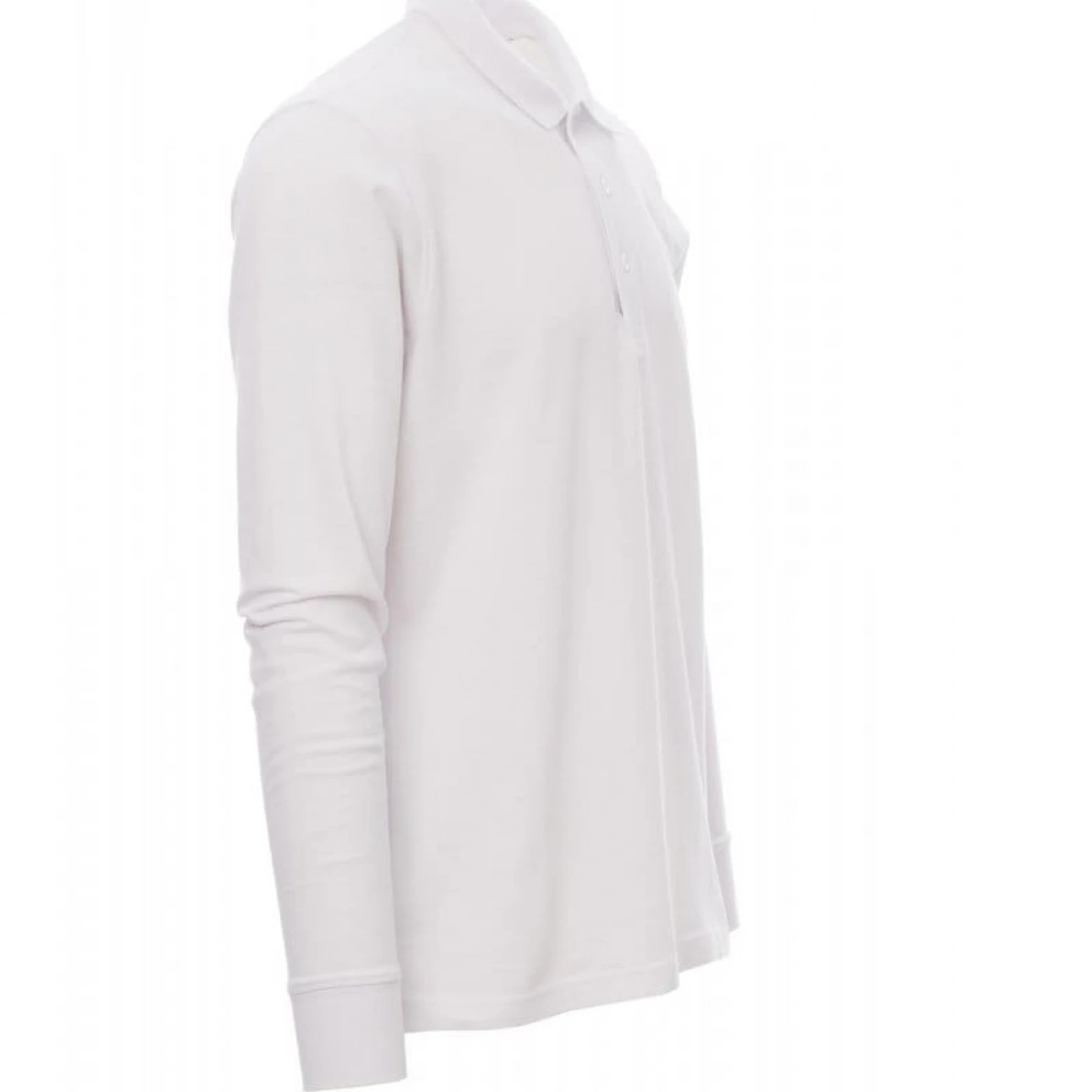 Tricou polo pentru barbati cu maneci lungi terminate cu mansete elastice, inchidere frontala cu 3 nasturi cu efect sidef, cusaturi ascunse pentru guler cu banda de culoare asortata, banda de intarire pe laterale