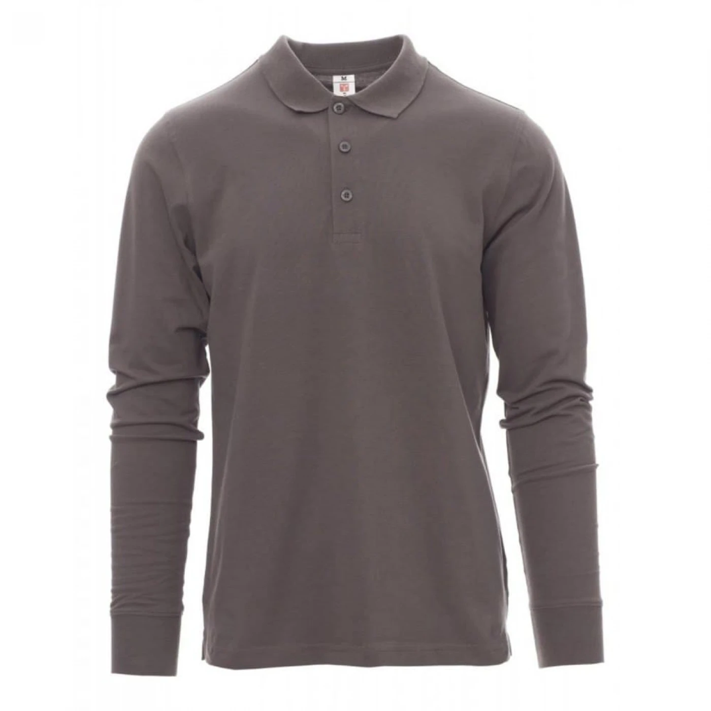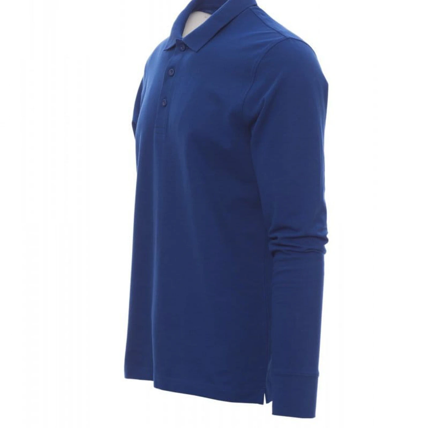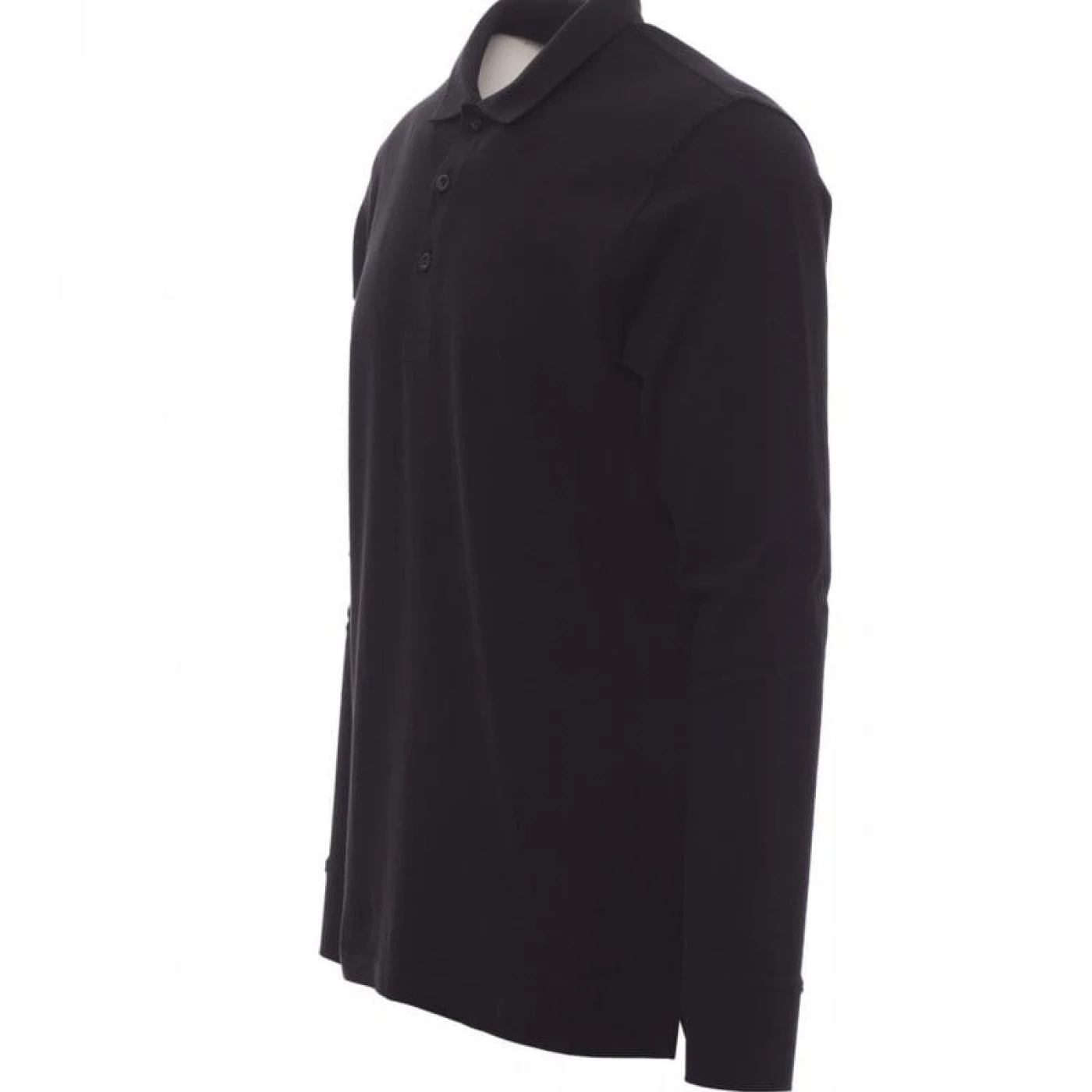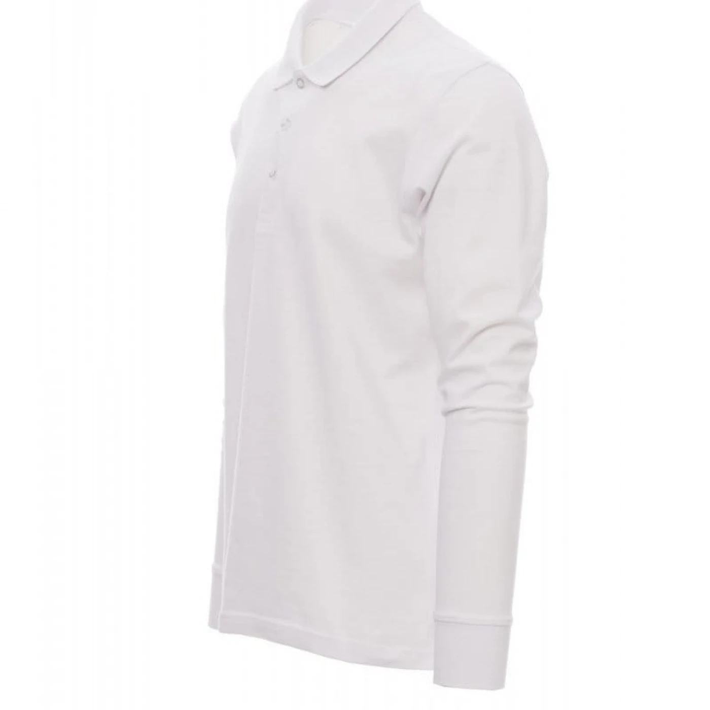 Tricou polo pentru barbati cu maneci lungi terminate cu mansete elastice, inchidere frontala cu 3 nasturi cu efect sidef, cusaturi ascunse pentru guler cu banda de culoare asortata, banda de intarire pe laterale