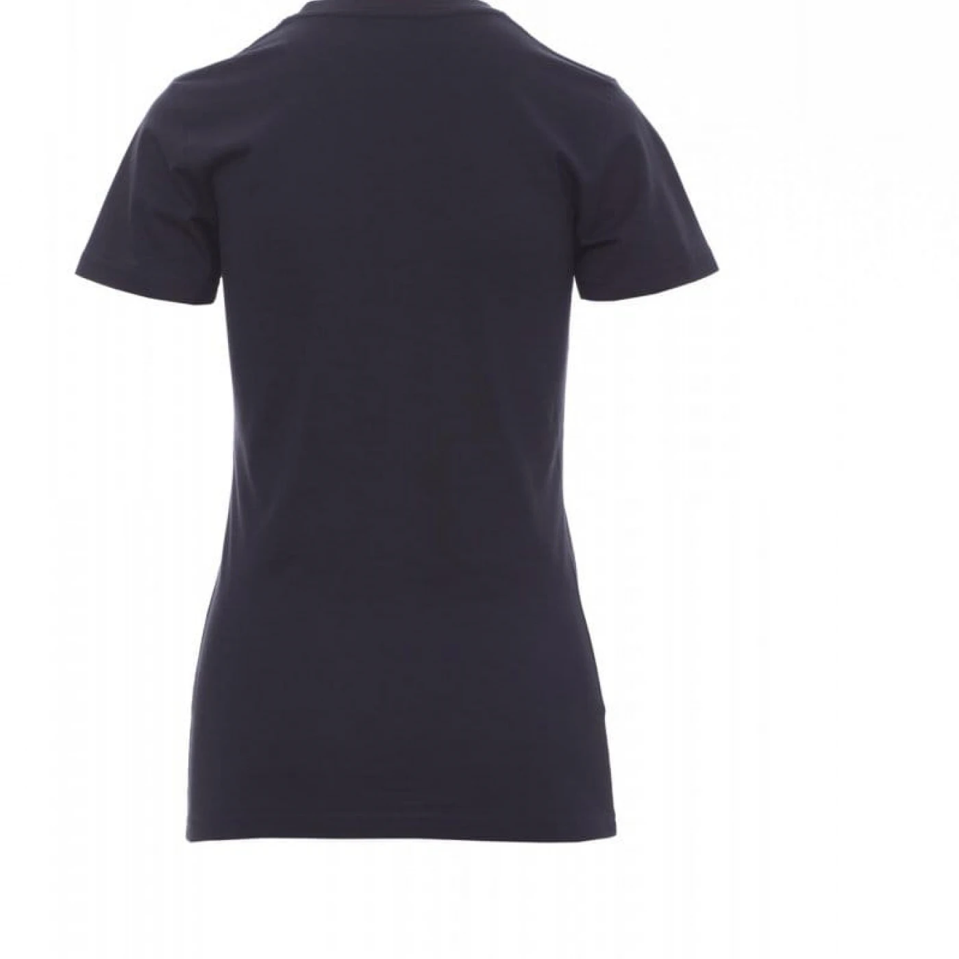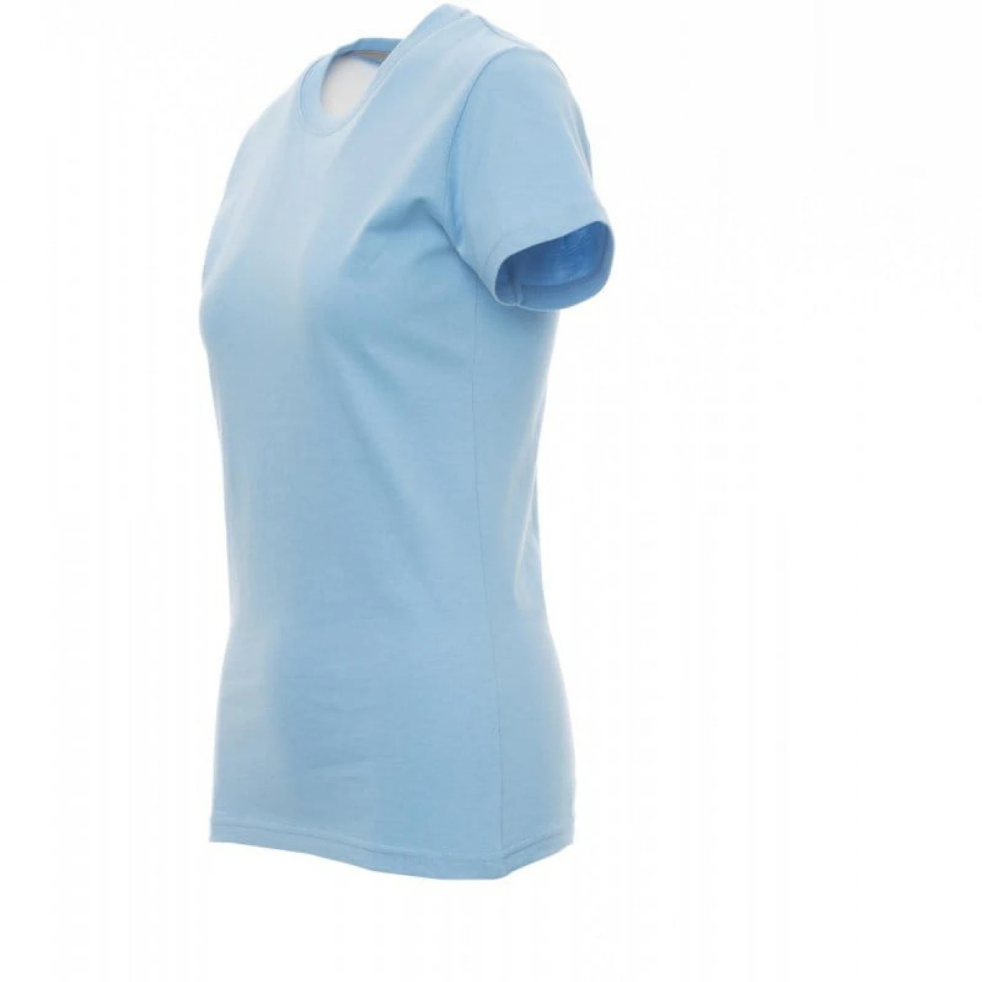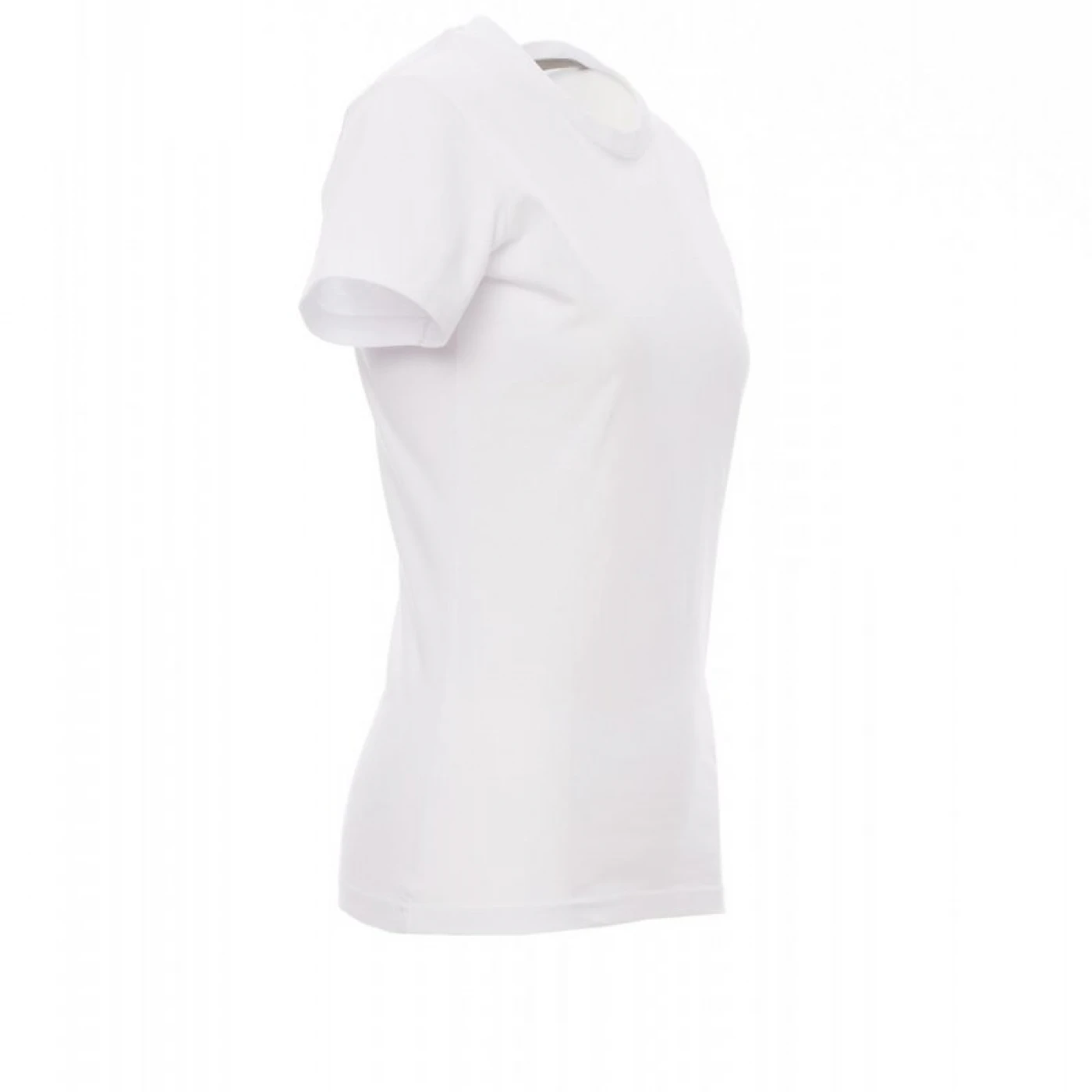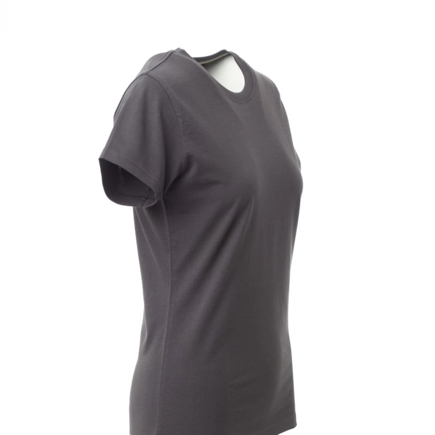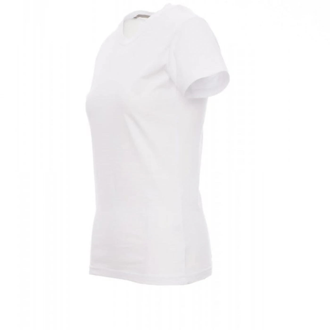 Tricou clasic cu maneca scurta pentru femei confectionat din 100% bumbac. Prevazut cu o banda de intarire din spandex la baza gatului si cusaturi contrastante. \n