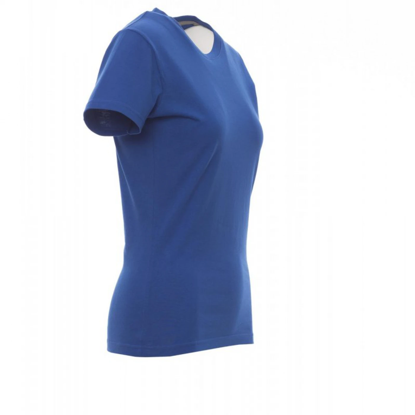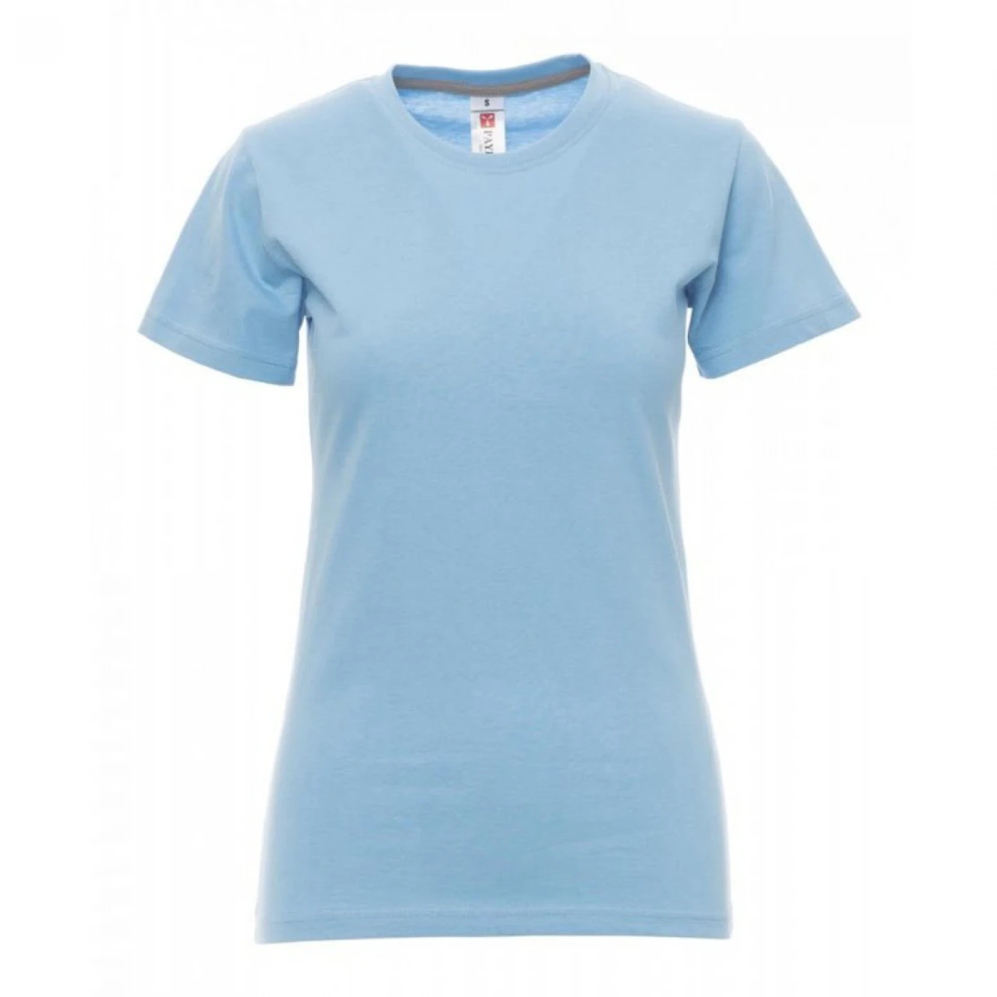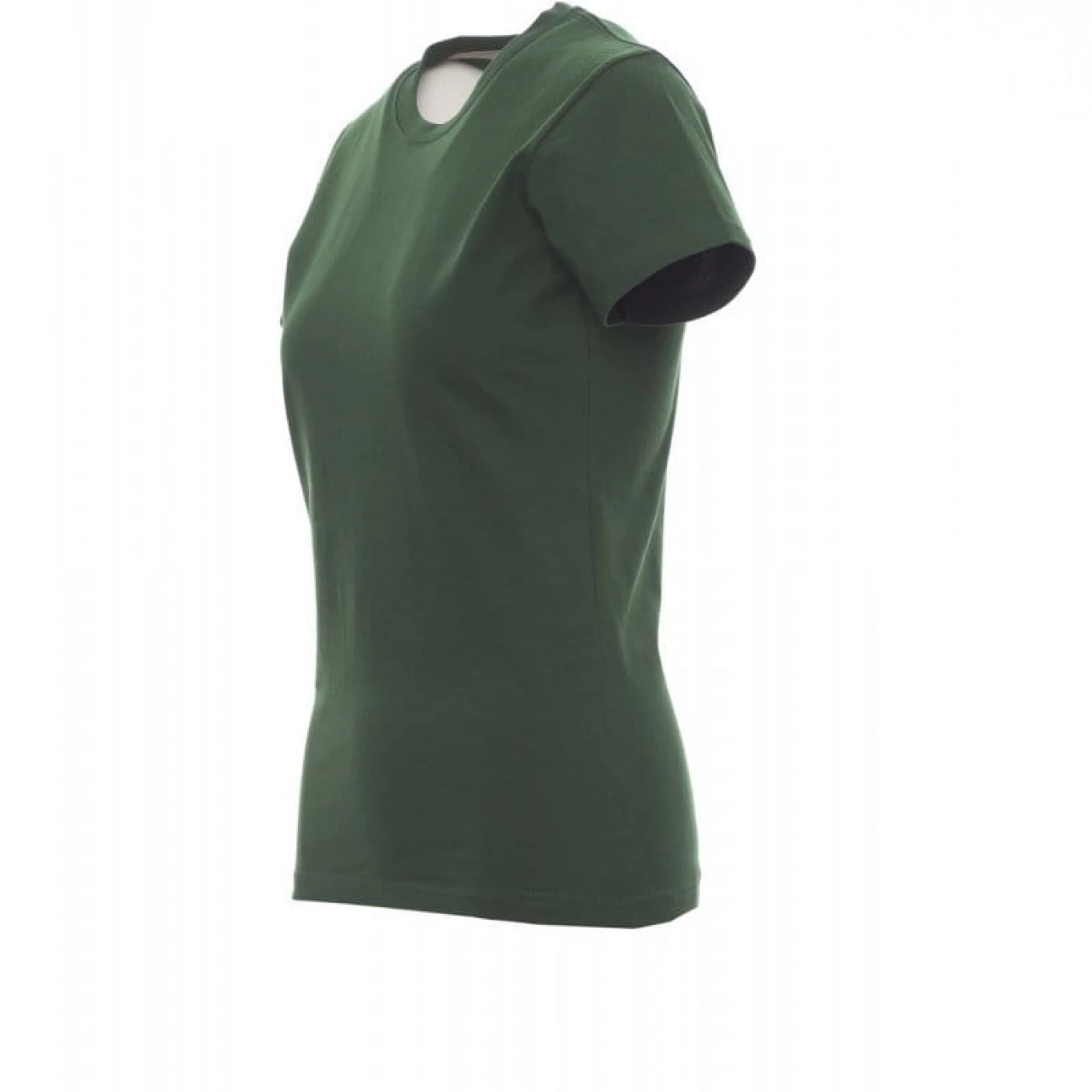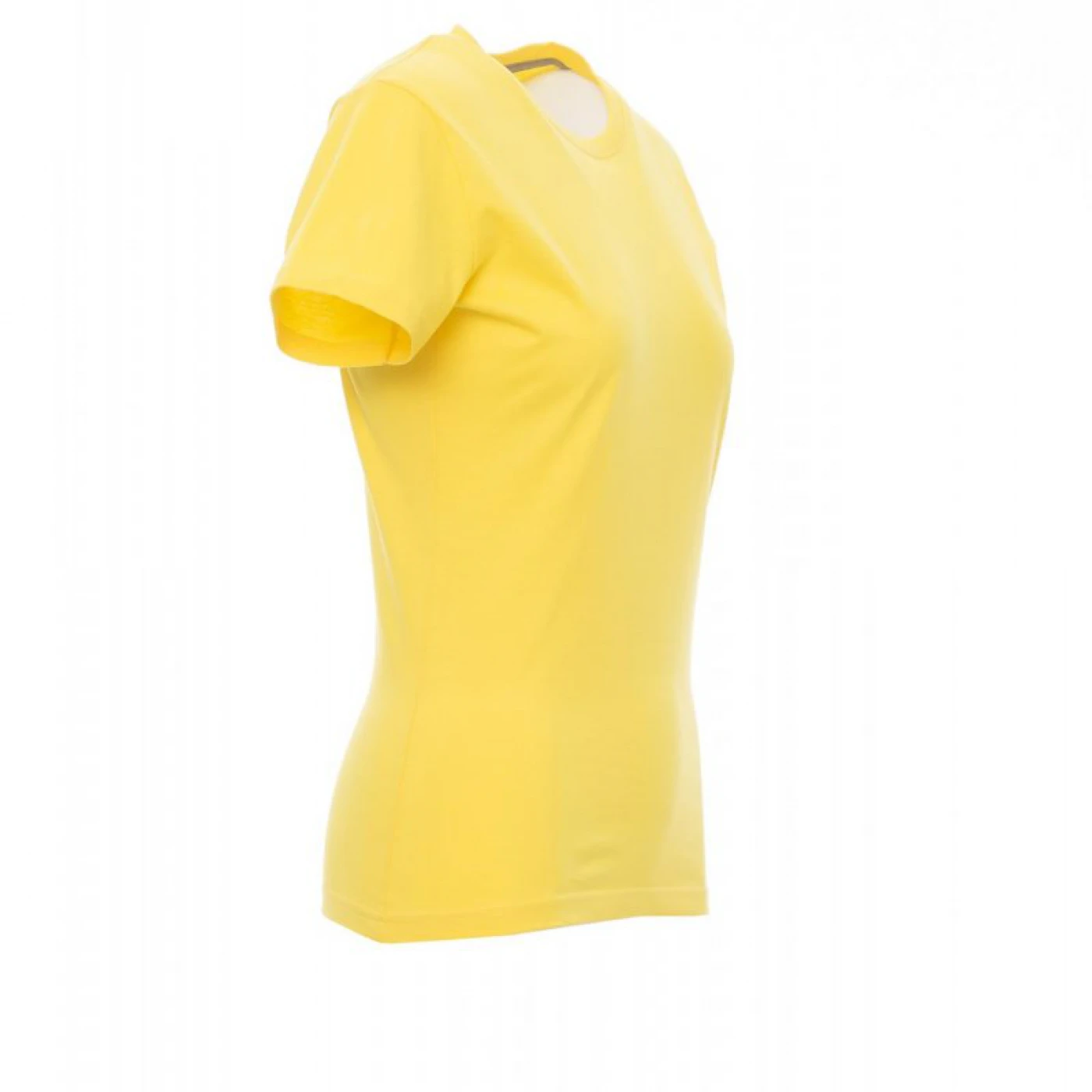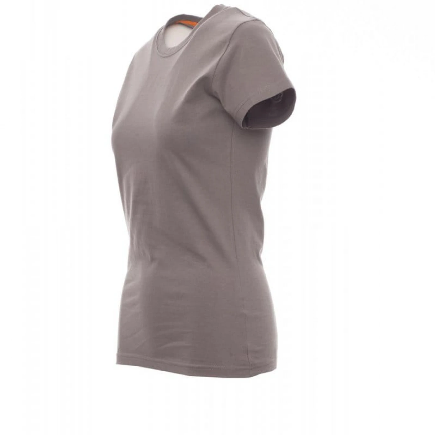 Tricou clasic cu maneca scurta pentru femei confectionat din 100% bumbac. Prevazut cu o banda de intarire din spandex la baza gatului si cusaturi contrastante. \n