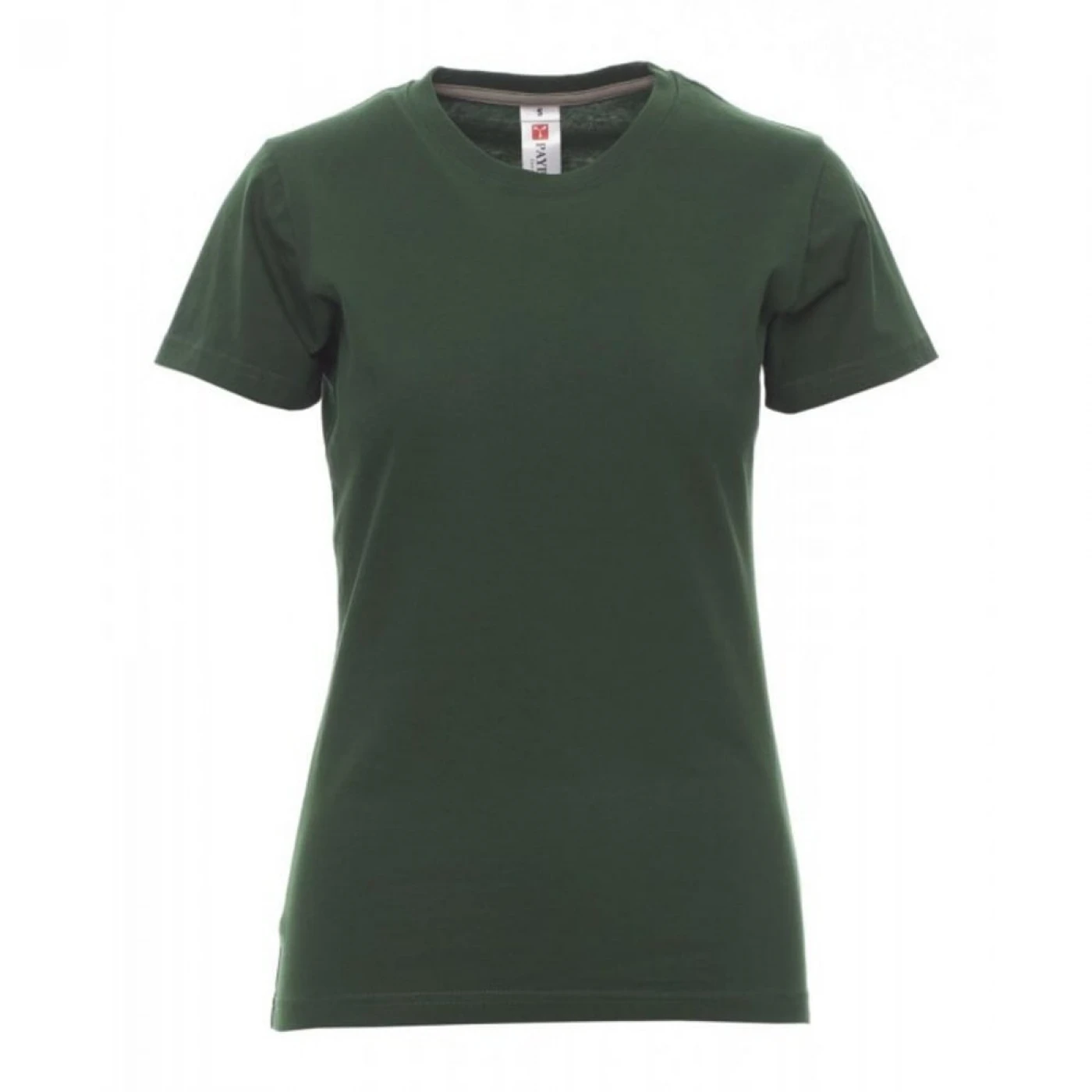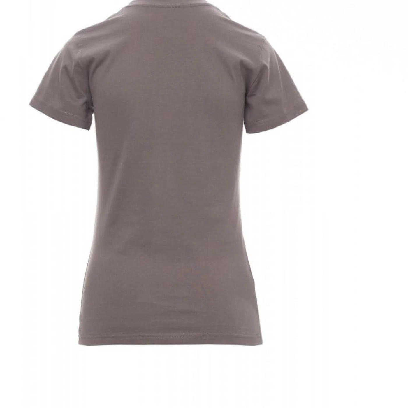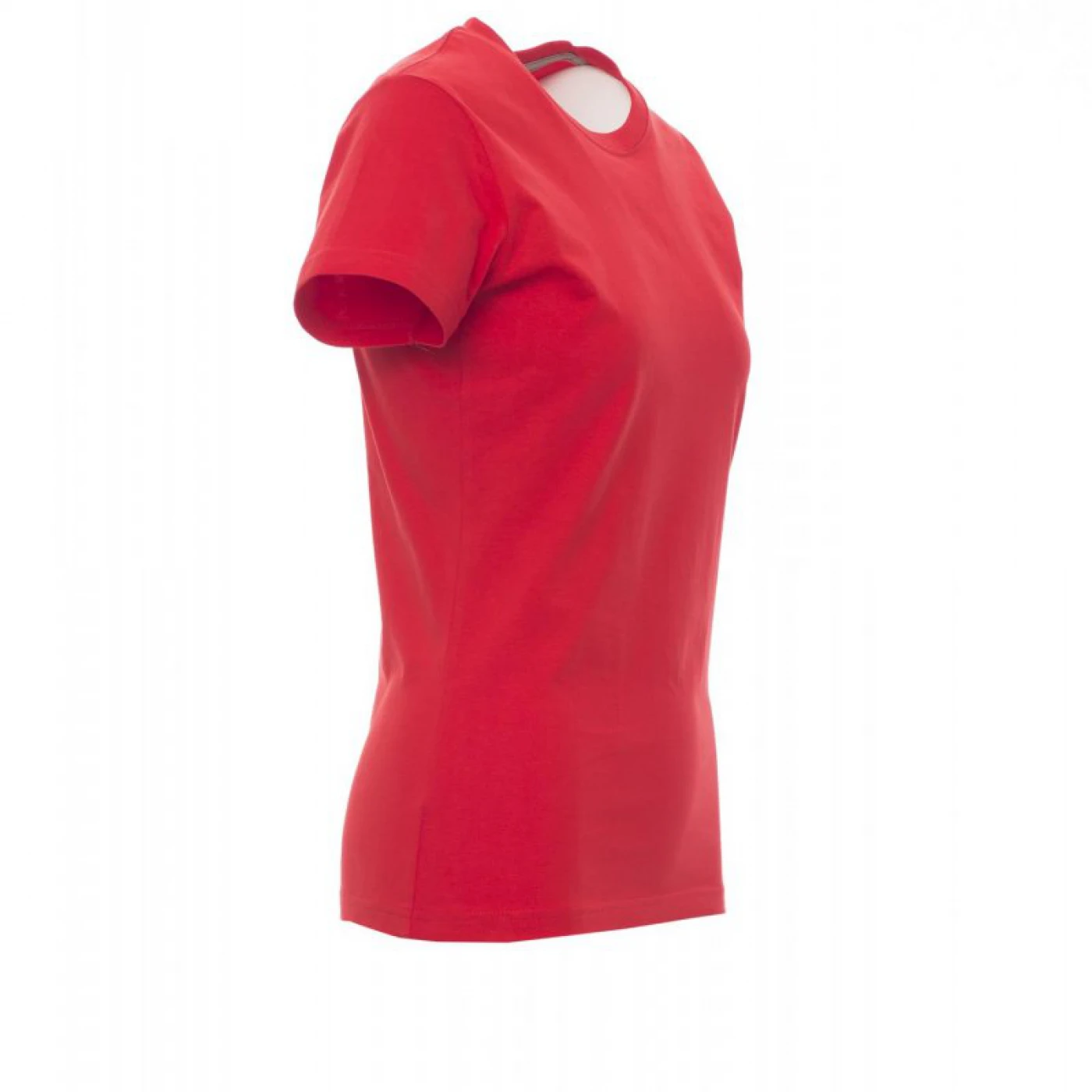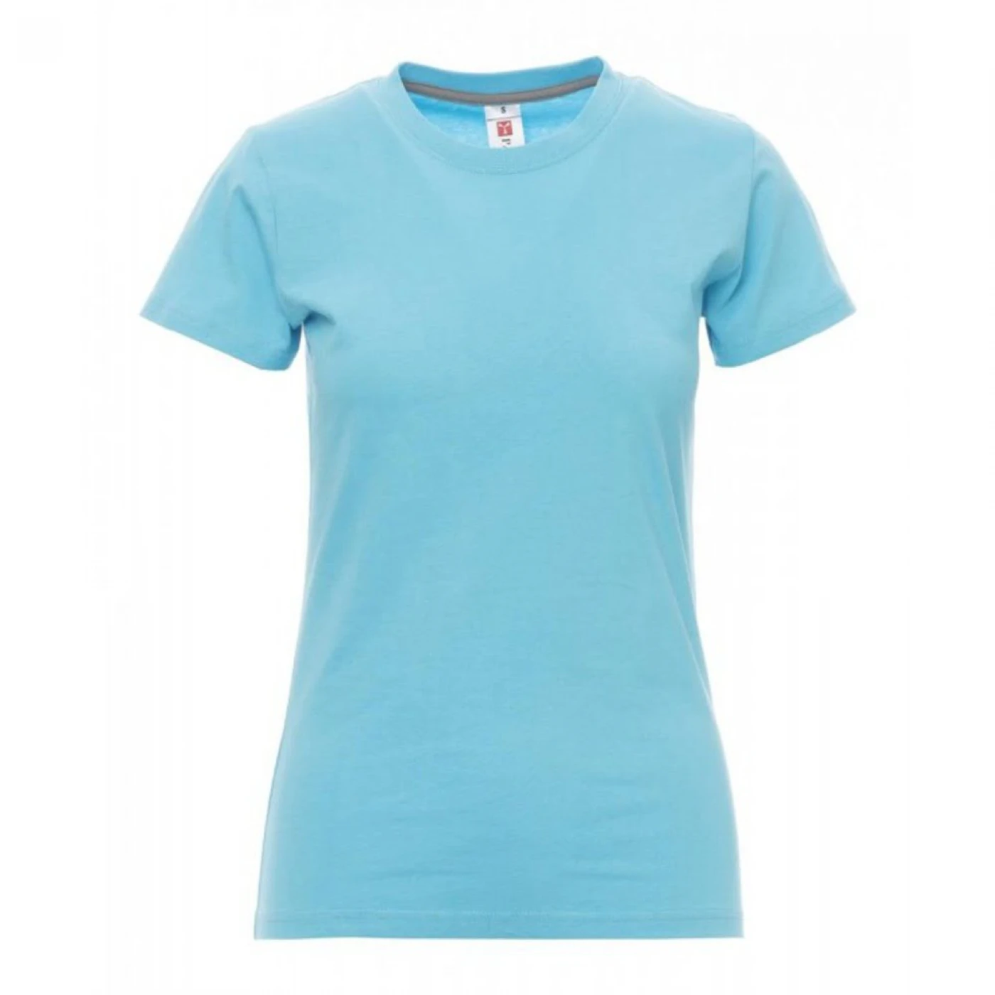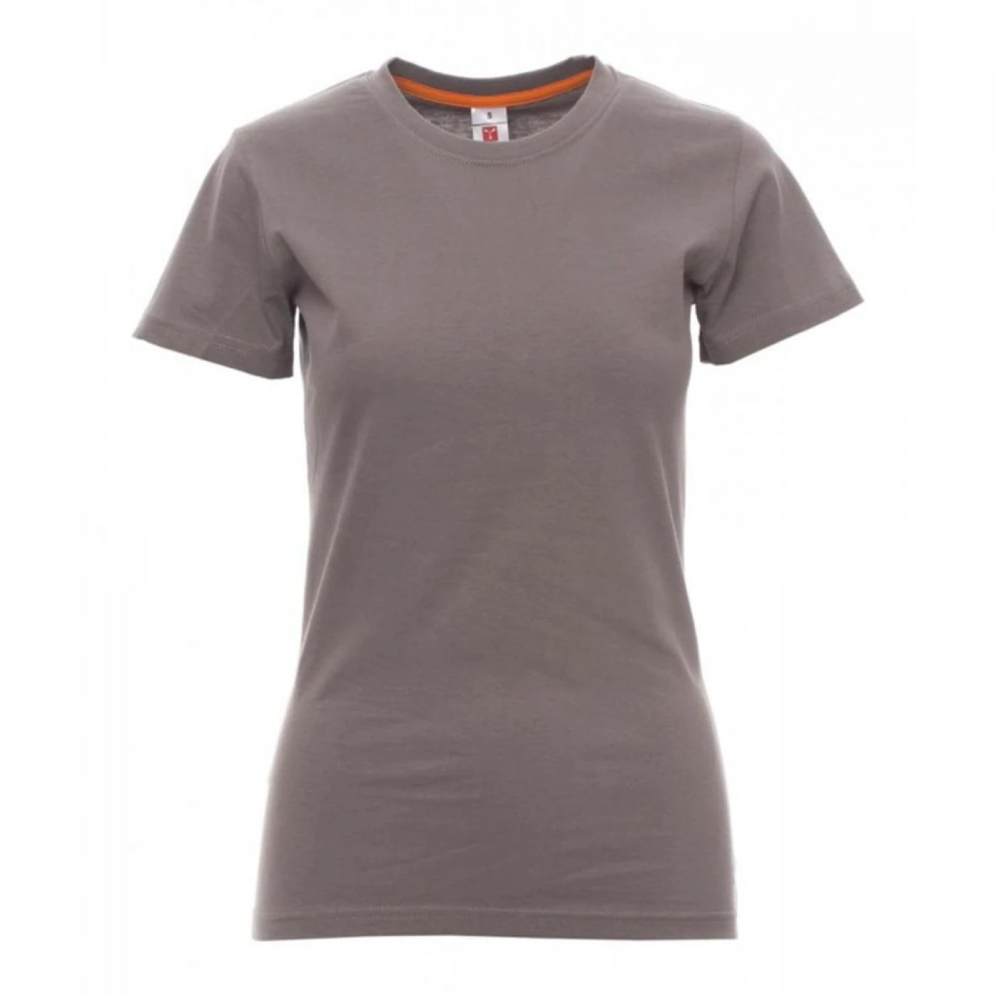 Tricou clasic cu maneca scurta pentru femei confectionat din 100% bumbac. Prevazut cu o banda de intarire din spandex la baza gatului si cusaturi contrastante. \n