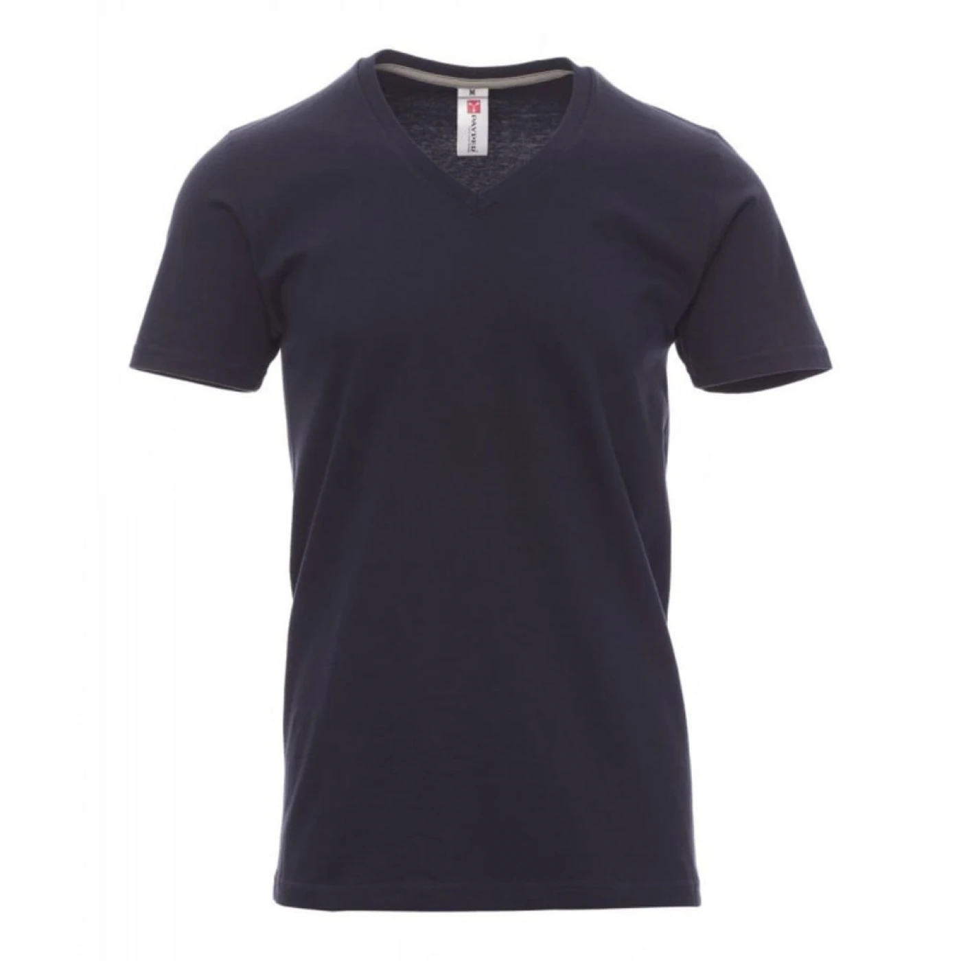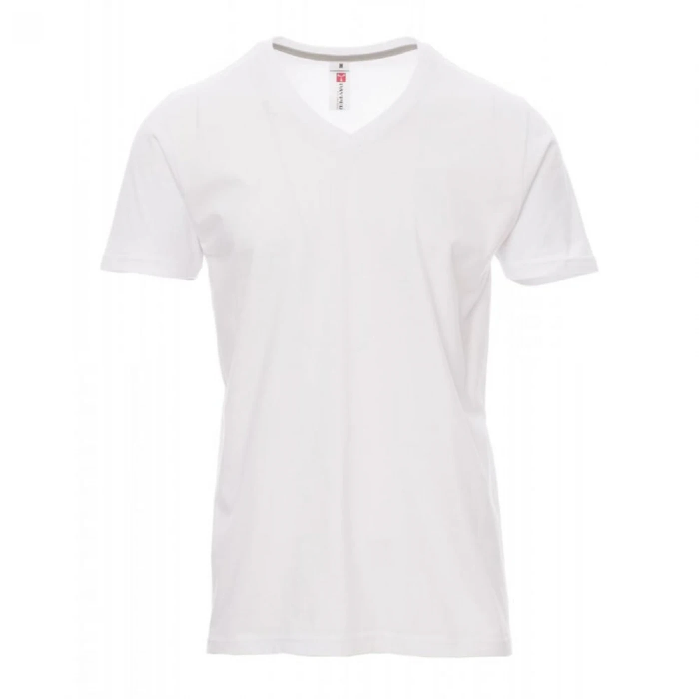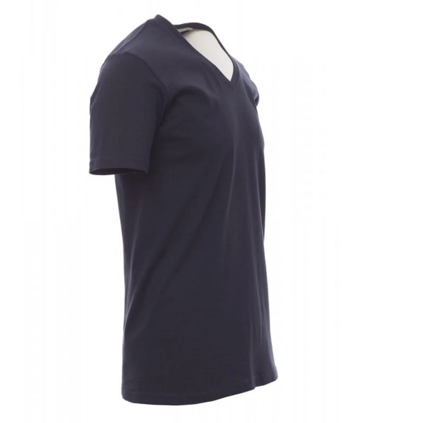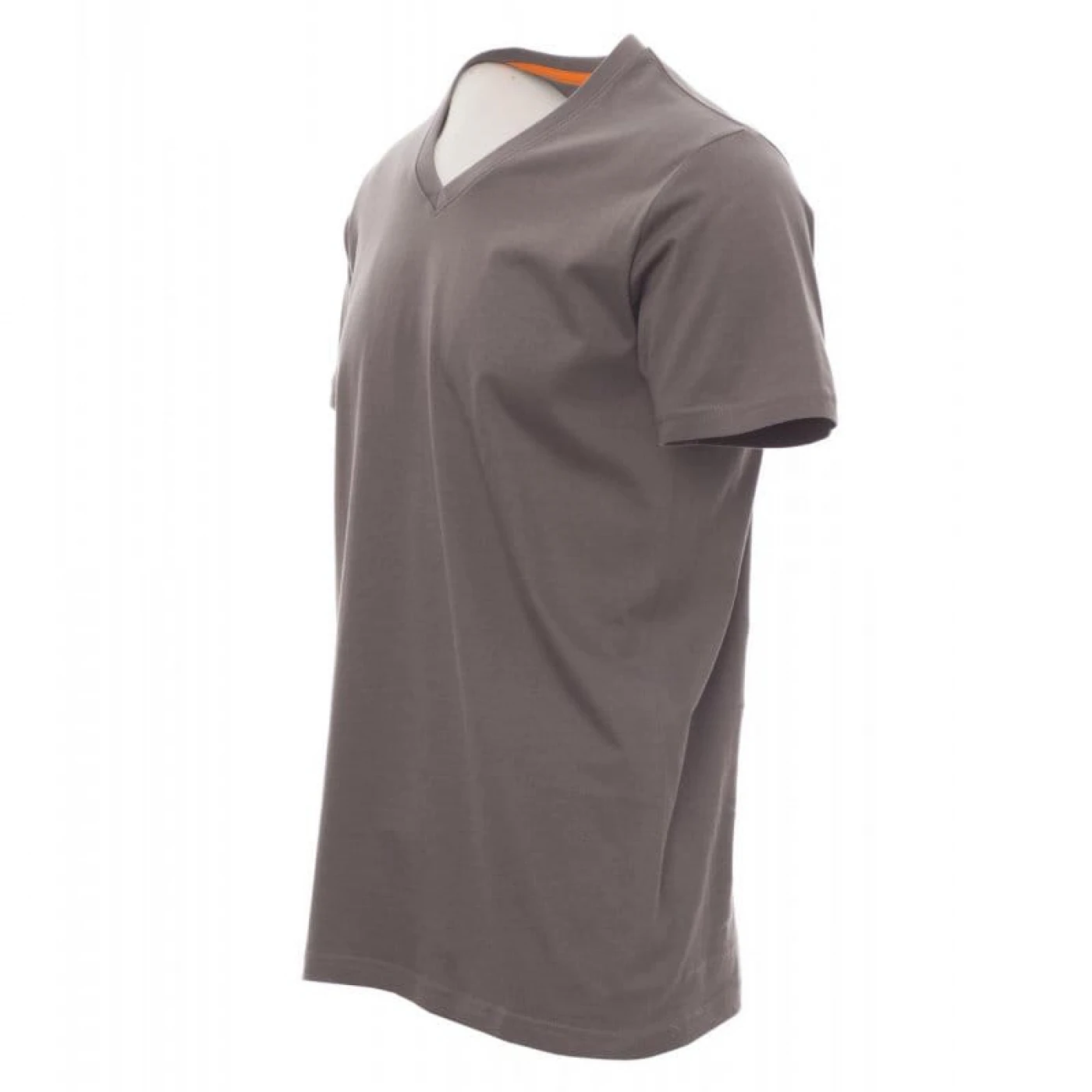 Tricou pentru barbati cu maneca scurta, cu guler in V, confectionat din material moale si respirabil, care asigura confort. Prevazut cu o banda de intarire din spandex la baza gatului si cusaturi contrastante. Design tubular. \n