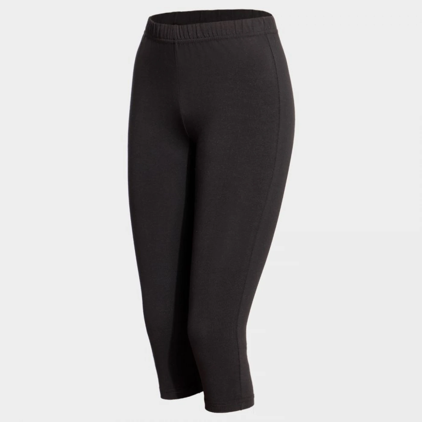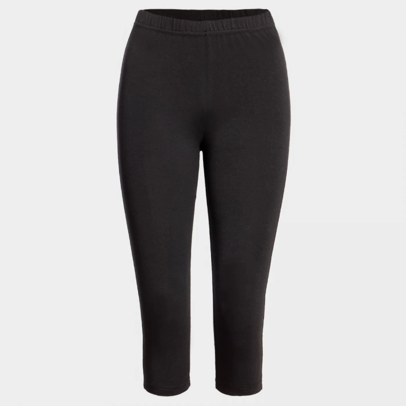 Jambiere de damă 3/4, de culoare neagră clasică, confecționați dintr-un tricot moale și elastic, potriviți pentru un stil de viață activ sau utilizare zilnică.