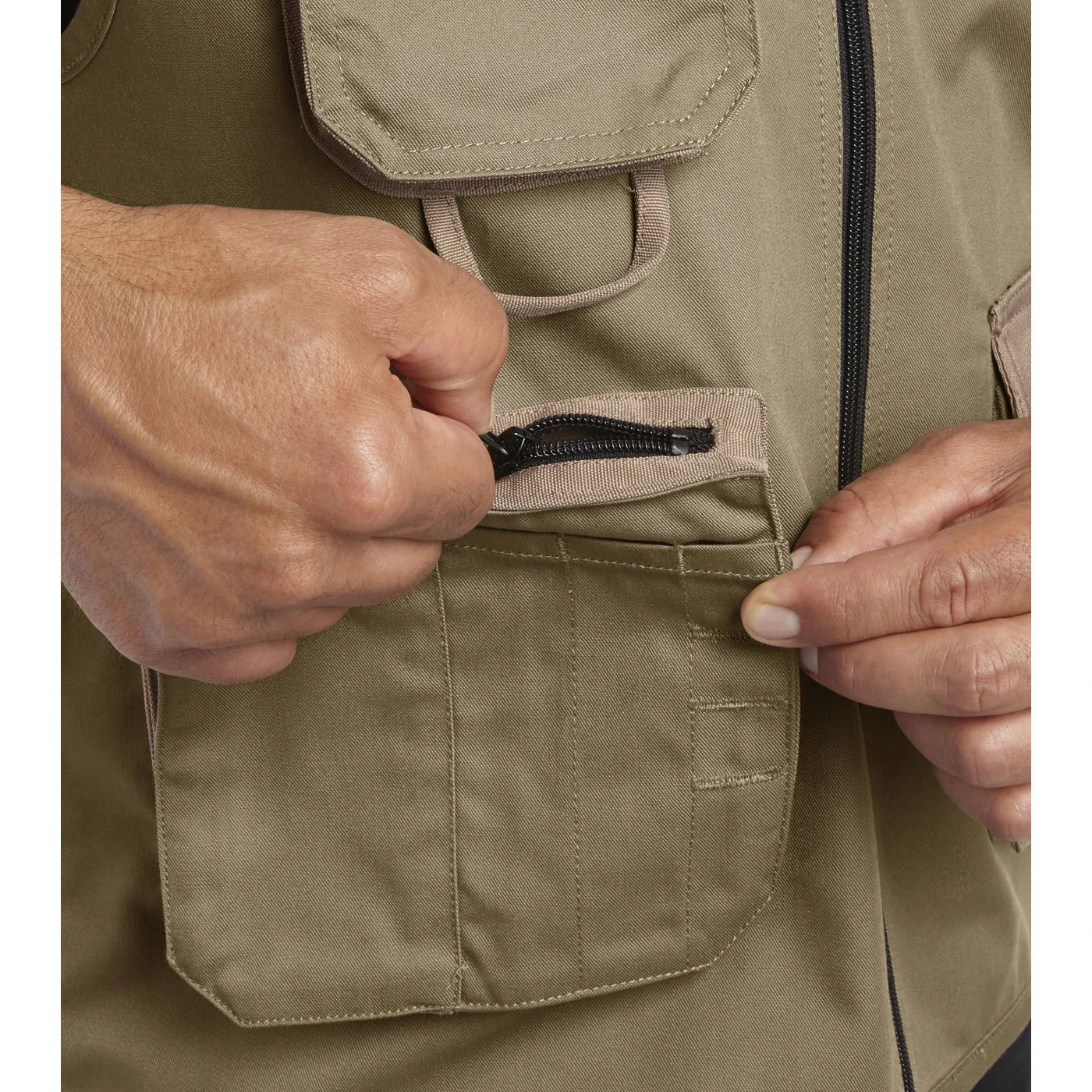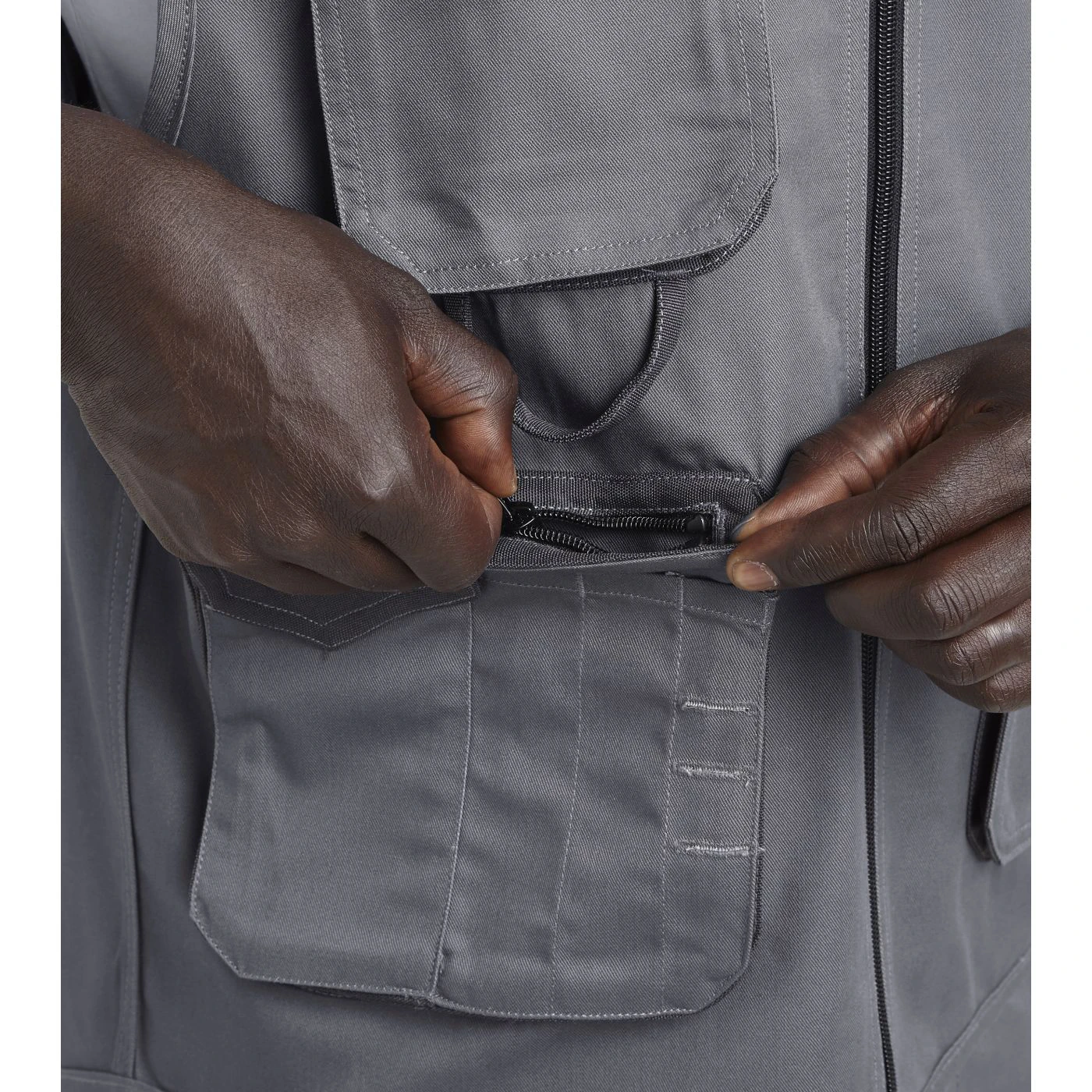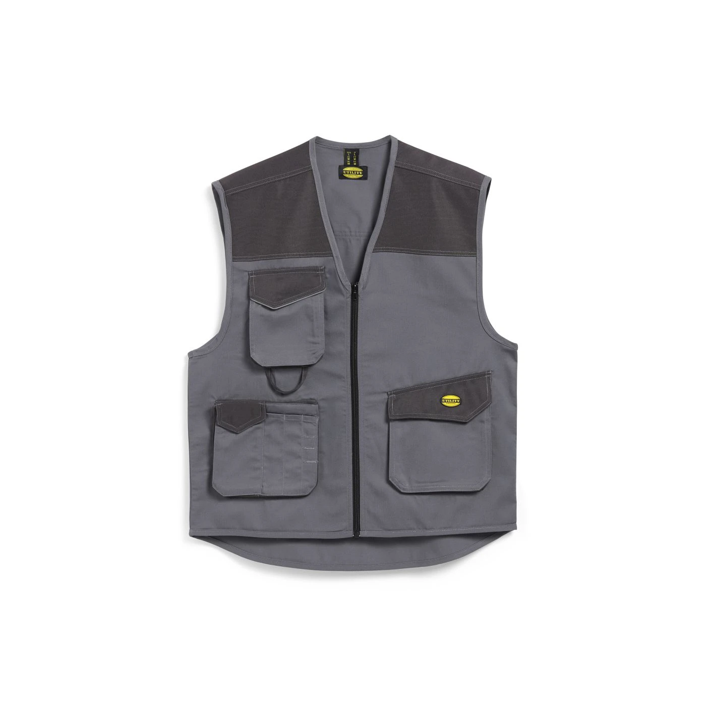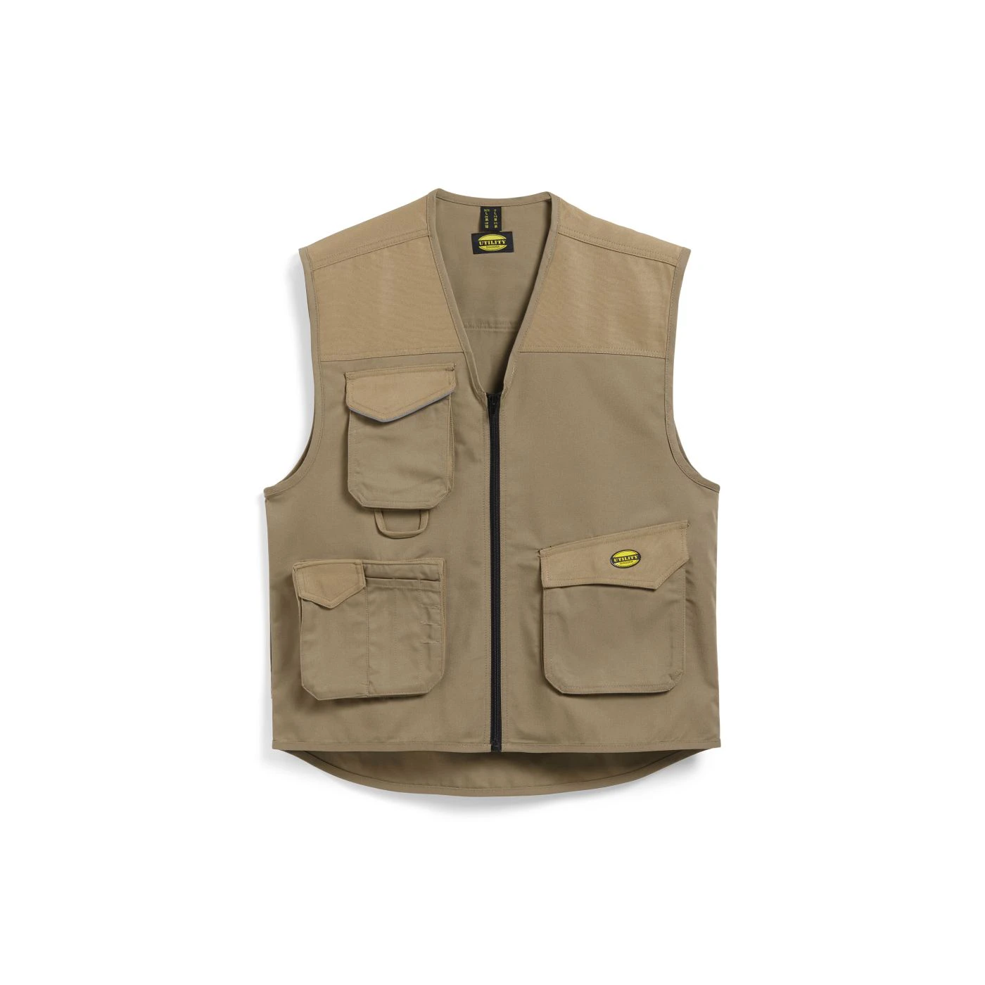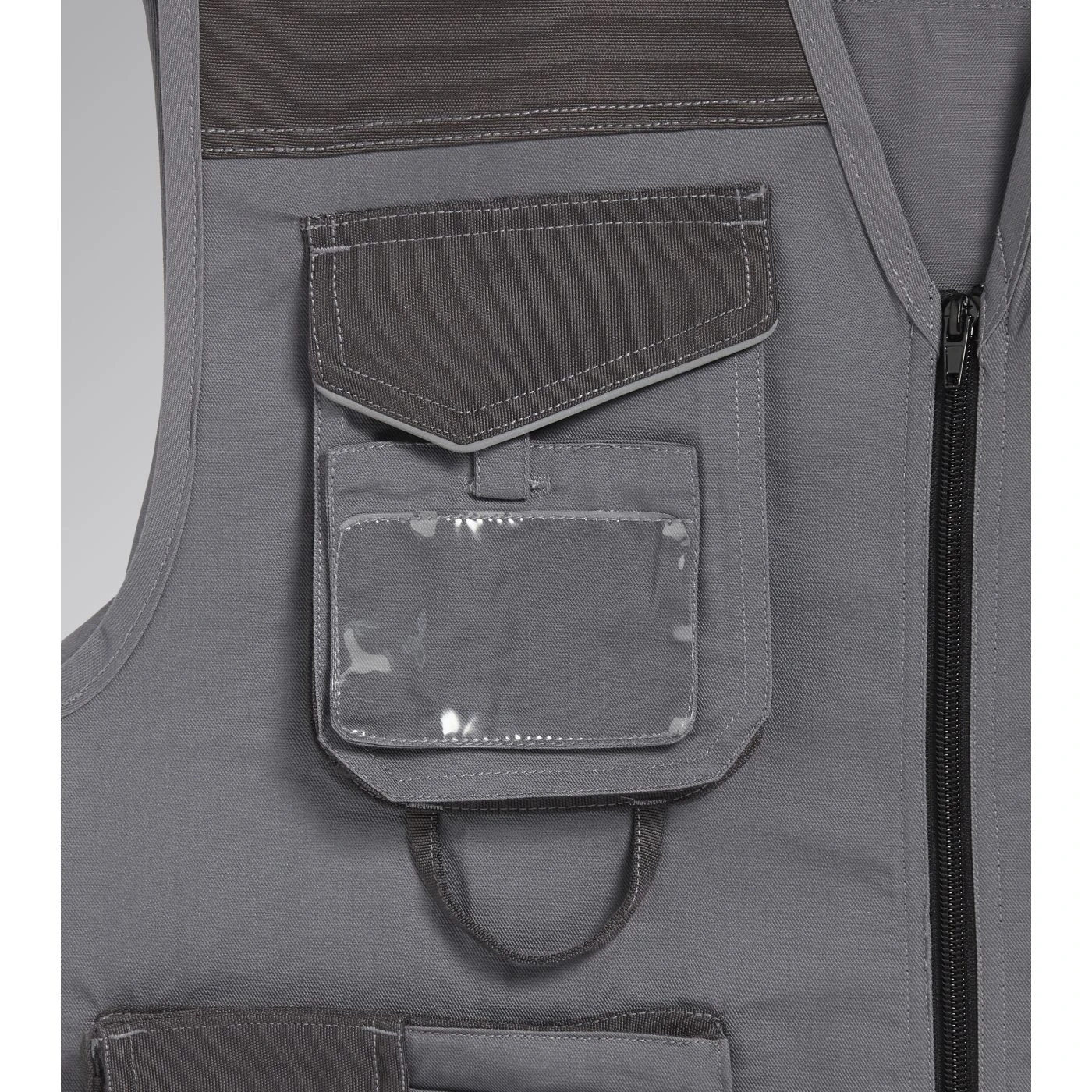 Vest with 3 front pockets, patch tool pockets, reflective details. Double stitching.