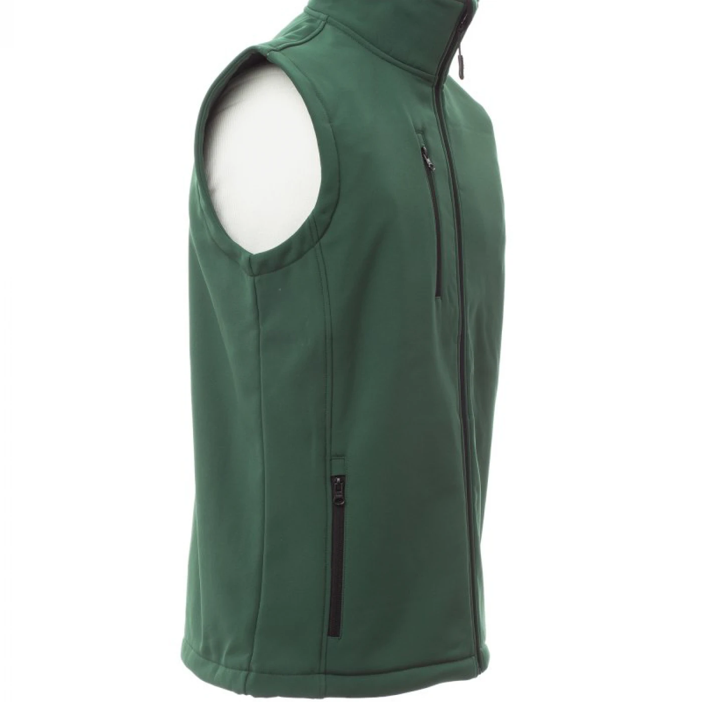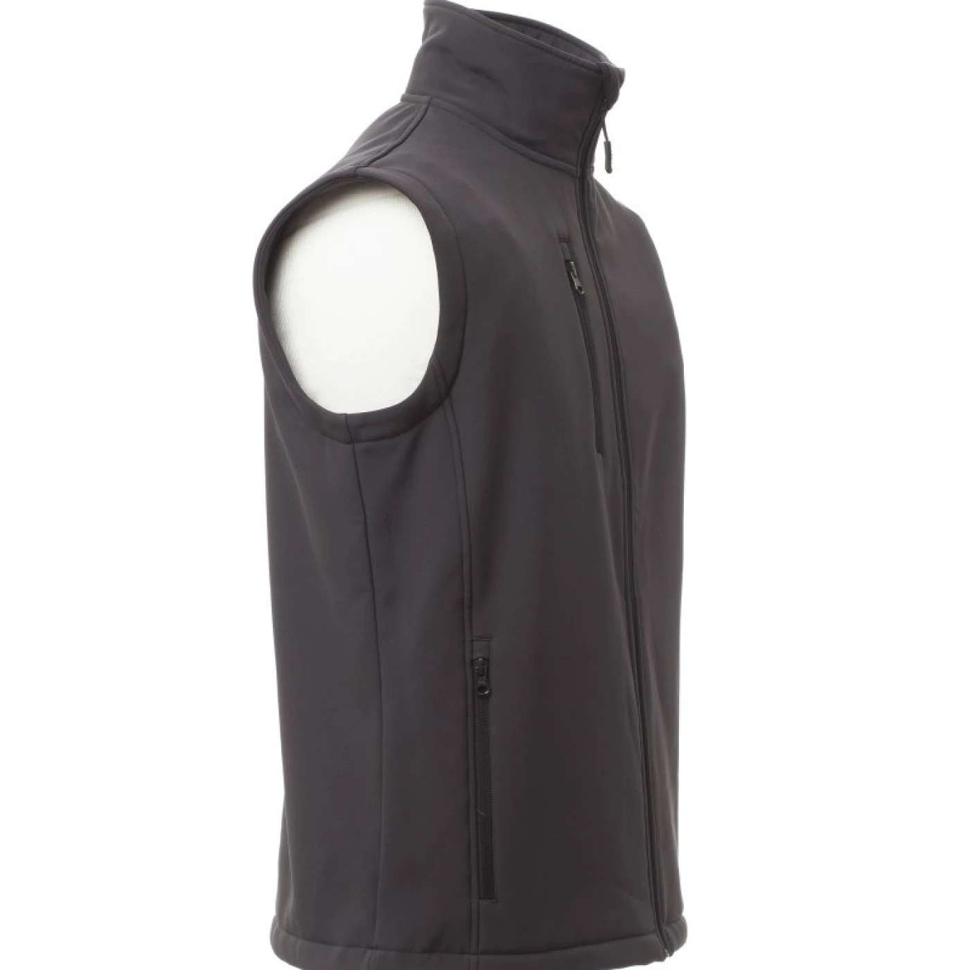 Vestă pentru bărbați din material tip soft-shell, care asigura o protectie sporita impotriva vantului (windproof) si impotriva apei (waterproof - WP 8000 mm H₂O, WVT 5000 g/m² 24h). Inchidere cu fermoar lung cu glisor metalic „semi-auto lock”. Echipata cu două buzunare laterale si un buzunar la piept, toate cu inchidere cu fermoar. \n