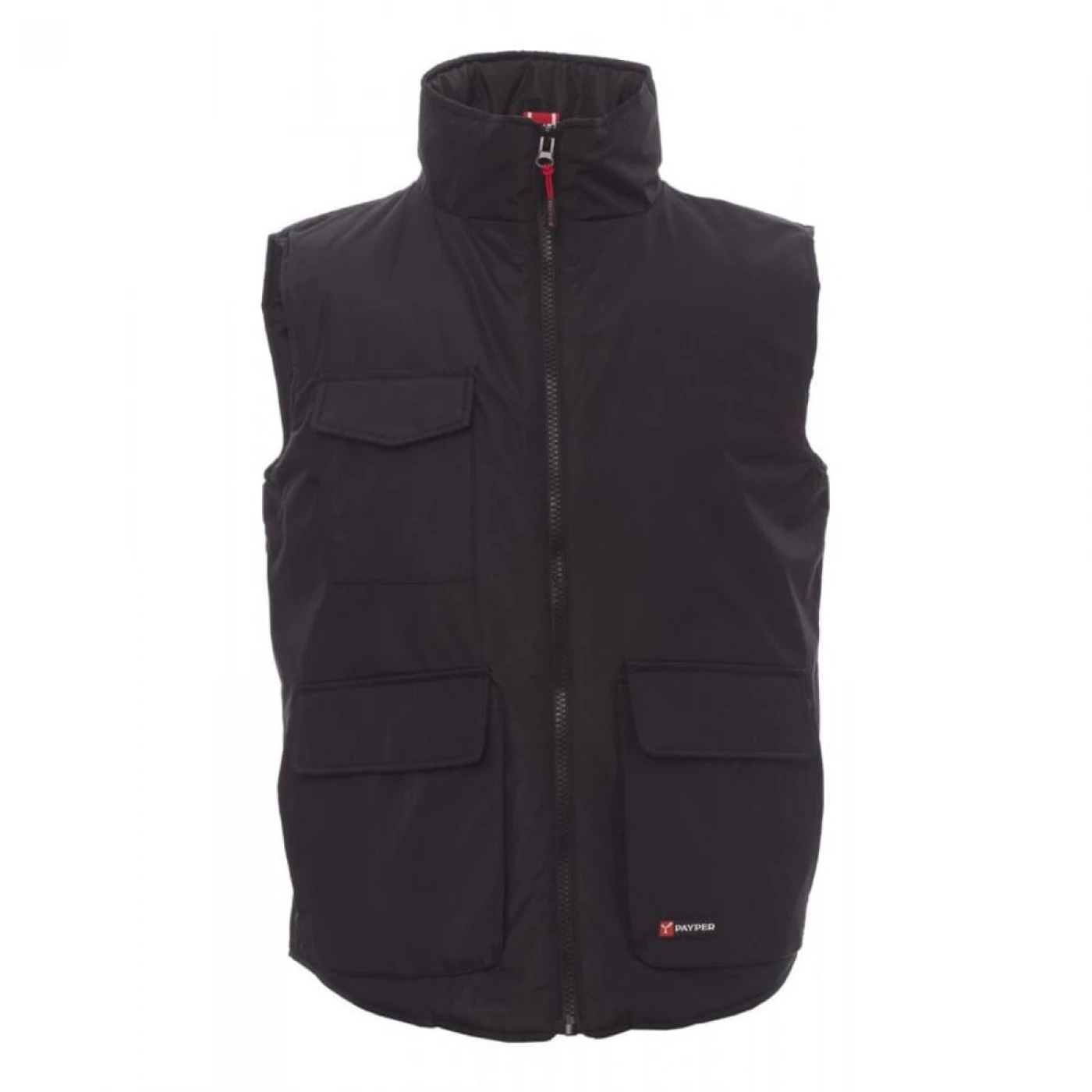 Vesta unisex cu fermoar din plastic cu tragere metalica, doua buzunare frontale spatioase cu Lock System, doua buzunare laterale, buzunar la piept pentru telefon. Vătuită la interior, fermoar pentru imprimare serigrafică și brodare facilitate. \n