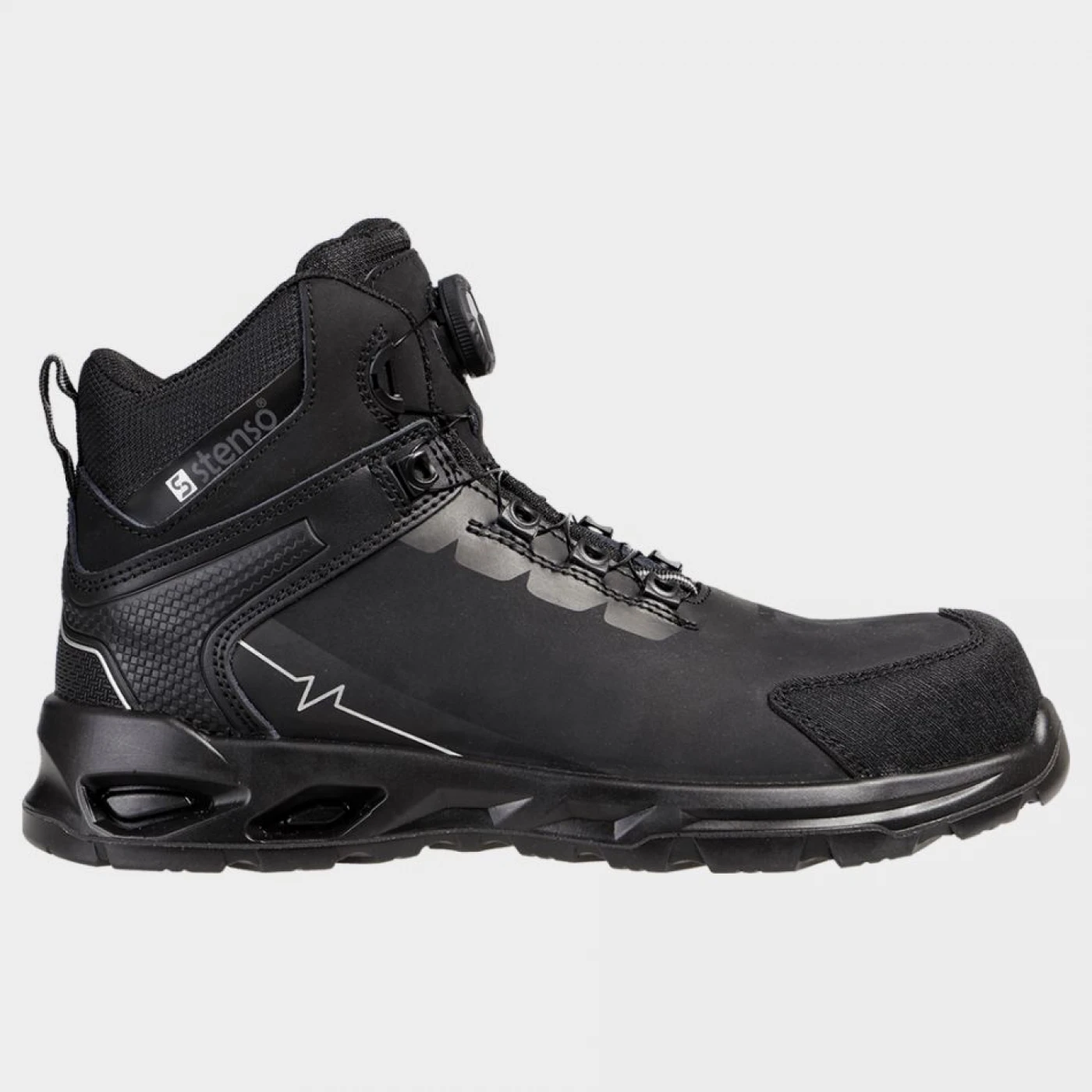 Încălțăminte de protecție Stenso moderne, concepute pentru performanță și protecție ridicată în medii de lucru solicitante. Ideale pentru utilizare profesională în construcții, industrie și logistică. Au un design contemporan, un nivel înalt de siguranță și un sistem automat de închidere care permite încălțarea și descălțarea rapidă, printr-o simplă rotire.