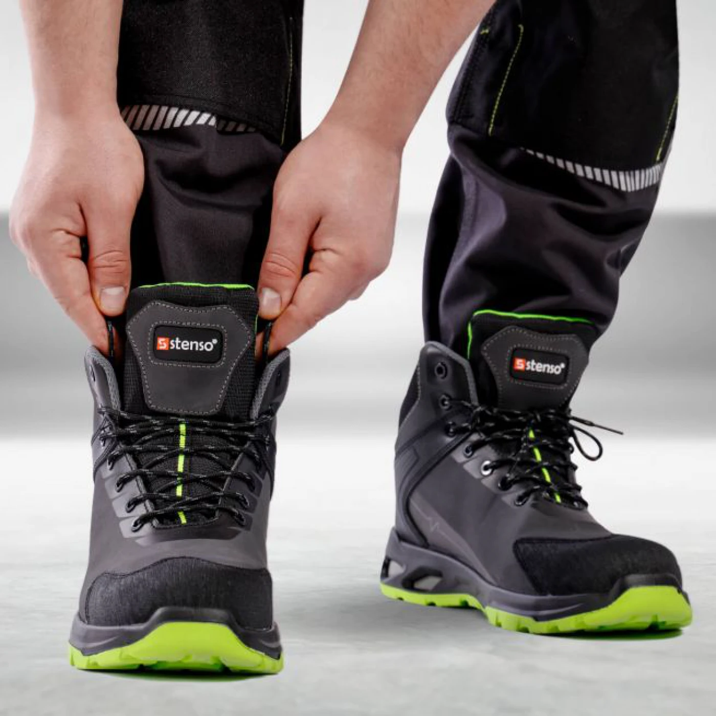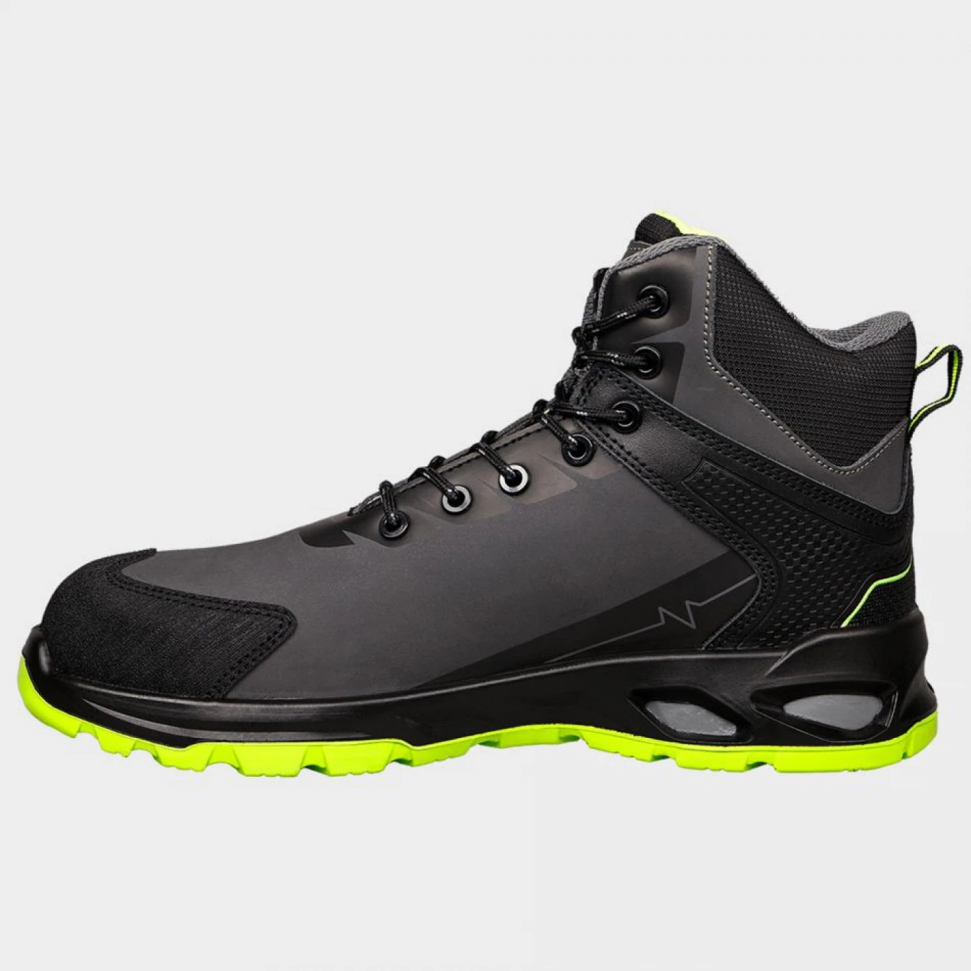 Pantofi până la glezna, robuste, ofer rezistență și confort la fiecare pas. Partea superioară este confecționată din năbuc hidrofug, combinat cu detalii Oxford. Partea interioară este realizată din țesătură din plasă respirabilă și rezistentă la uzură, asigurând o purtare confortabilă și de lungă durată. Partea din față a pantofilor este întărită cu fibră de sticlă, care oferă rezistentă și protecție suplimentară. Lamelă Kevlar® face pantofii mai puternici, fără a interfera cu flexibilitatea pantofului. Talpă este realizată din PU/PU și oferă stabilitate și tracțiune excepțională.