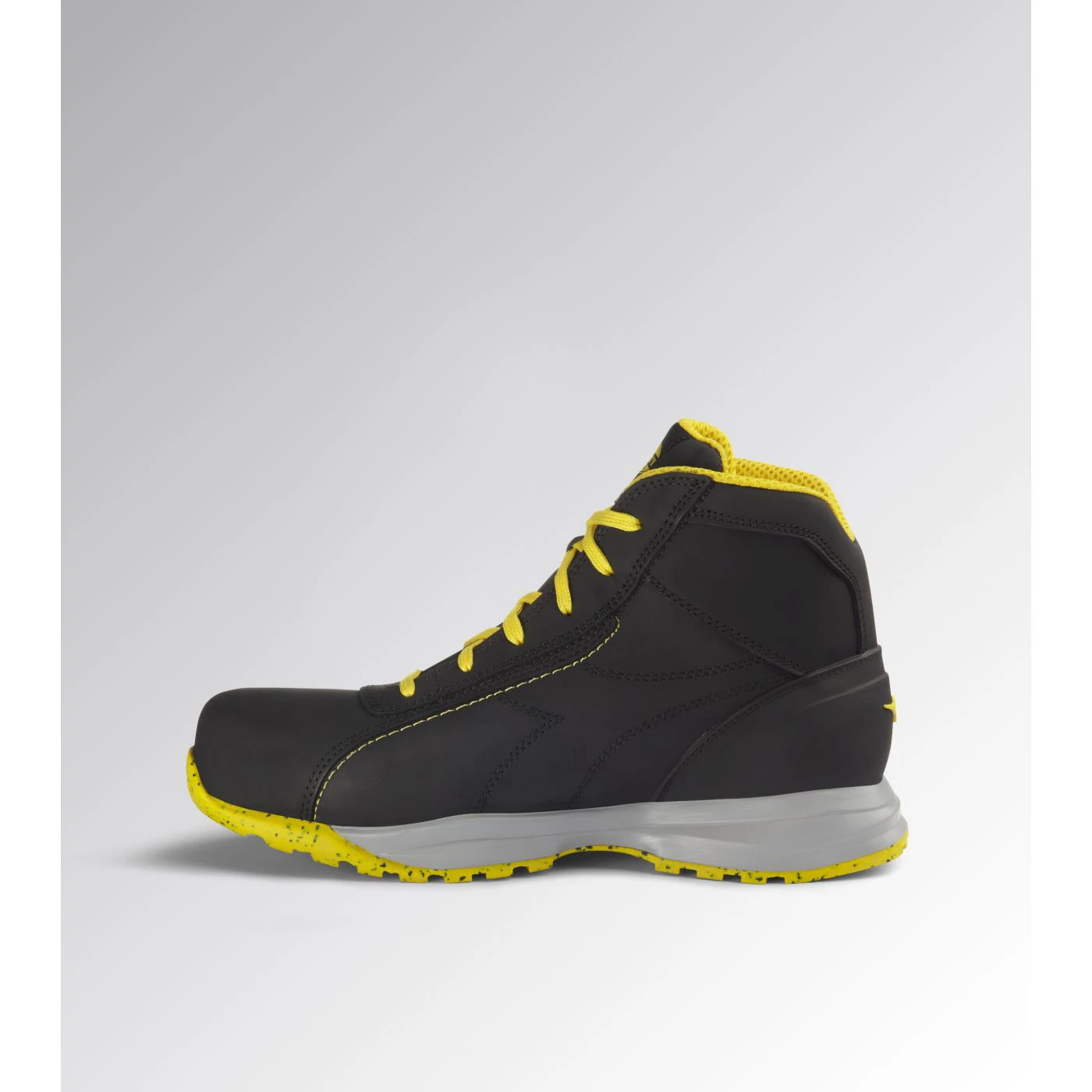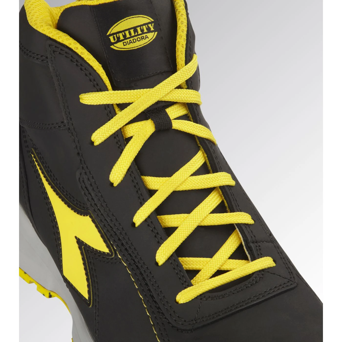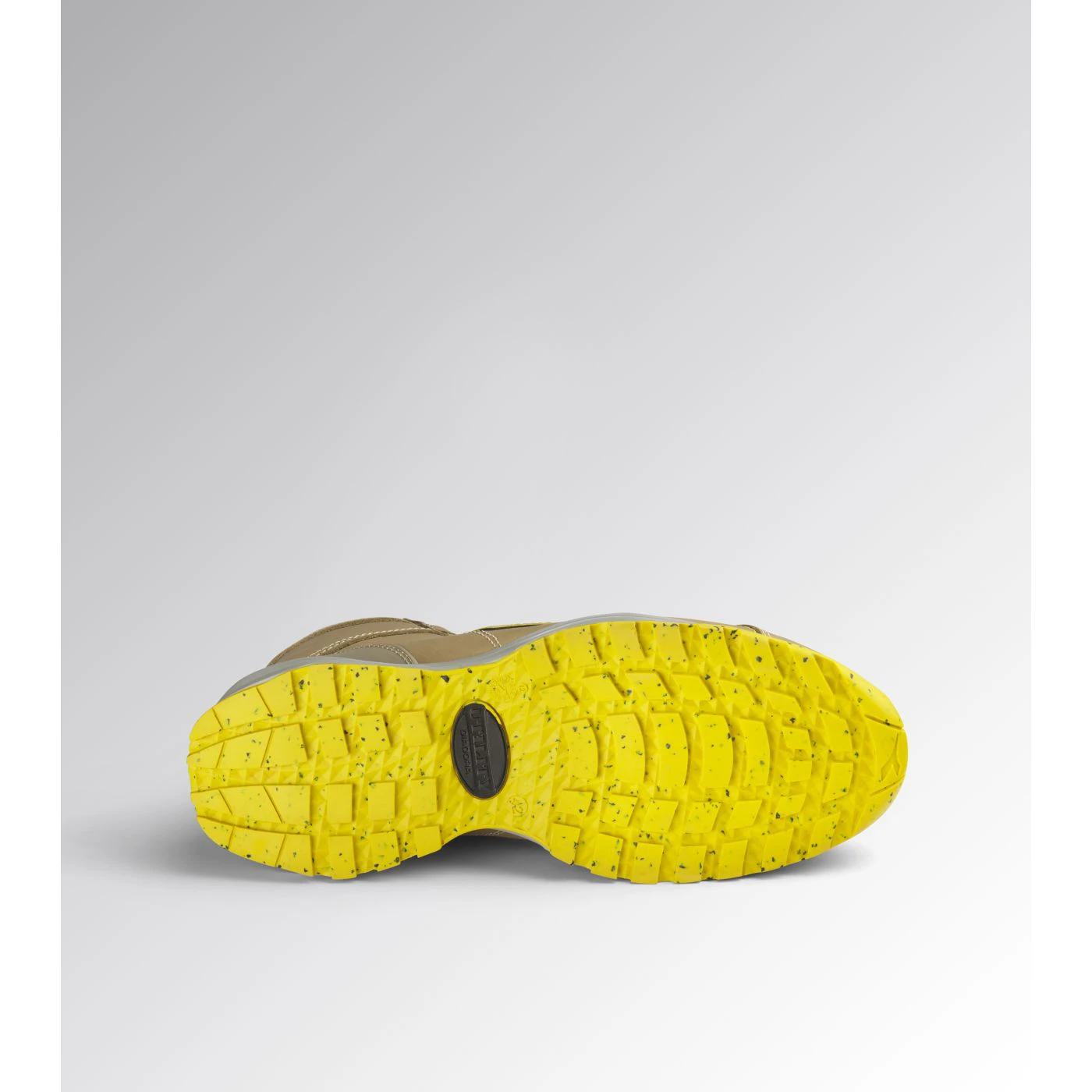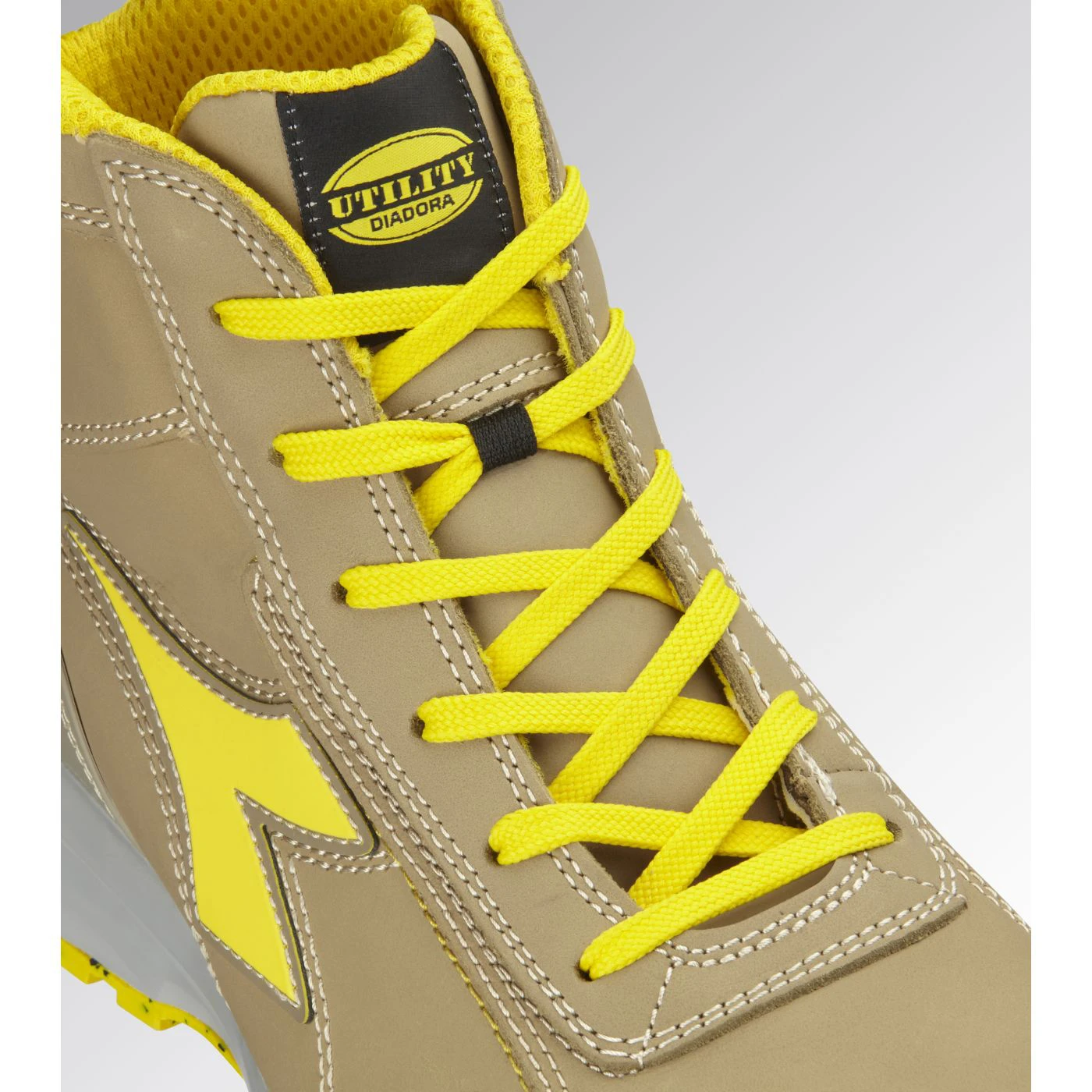 Water-repellent mid-cut S3S safety shoes in cowhide nubuck. Ergonomic TPU heel support. 200J aluminium toe cap. Anti-puncture K-SOLE insert. Width 11. Mass Damper System technology. Air mesh lining with a non-slip microfibre insert. Removable ergonomic insole in PU foam and activated carbon.