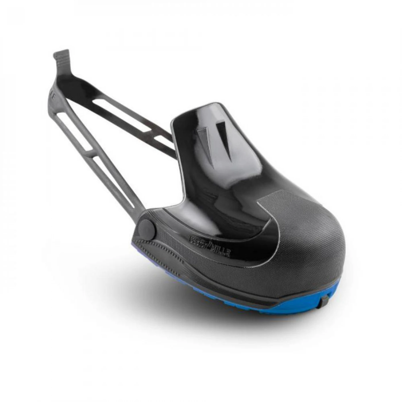 Bi-coulored & double density TPU - Made with a composite (fiberglass toe cap 240J - EN 12568 standards) - Removable and interchangeable strap (perfectly fits any shoe) - Protective tongue |