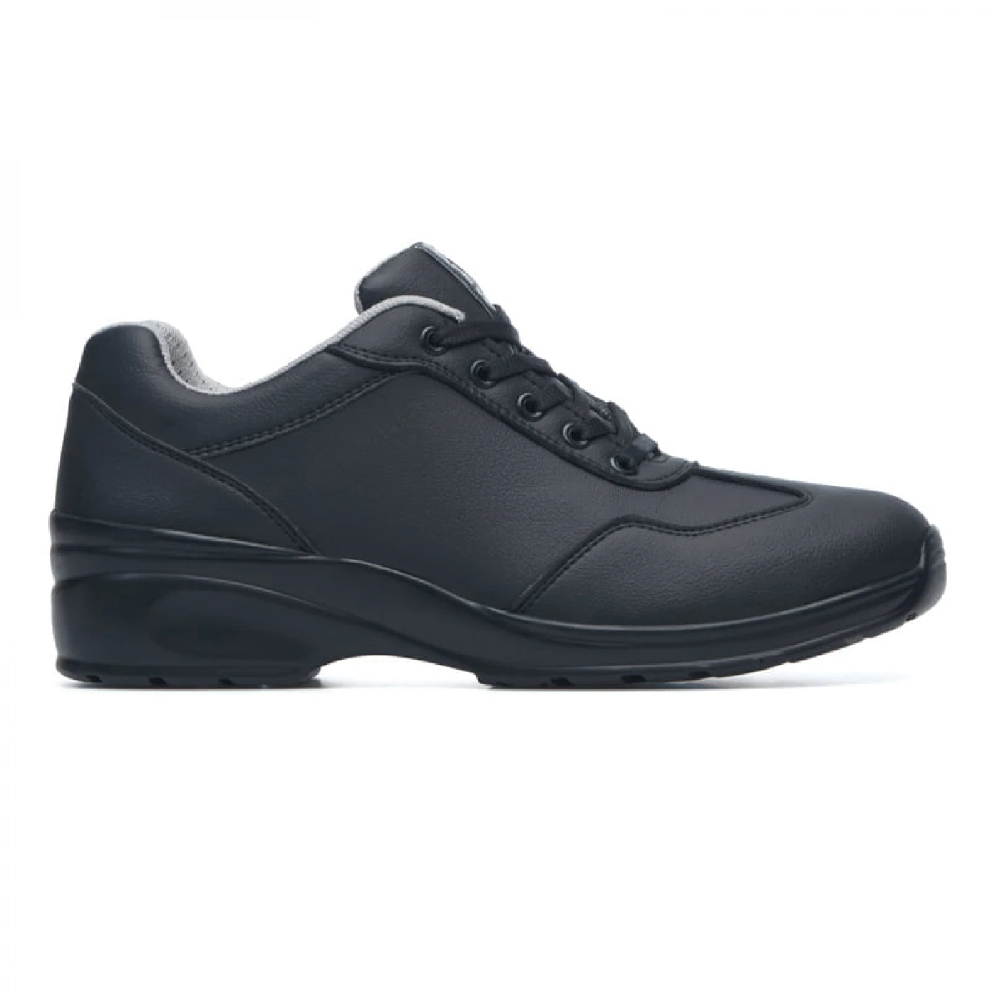 Pantofi de lucru pentru femei O1 SRC din microfibra Dry-Black, fara bombeu de protectie. Datorita brantului Top-dry cu forma anatomica din tesut absorbant piciorul este mentinut permanent uscat. Talpa este lipita, din poliuretan monodensitate.
