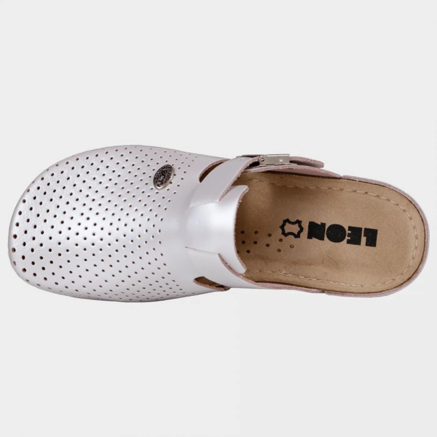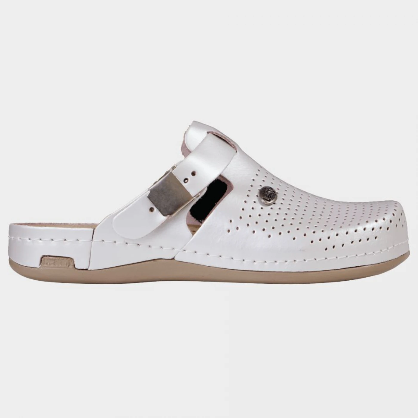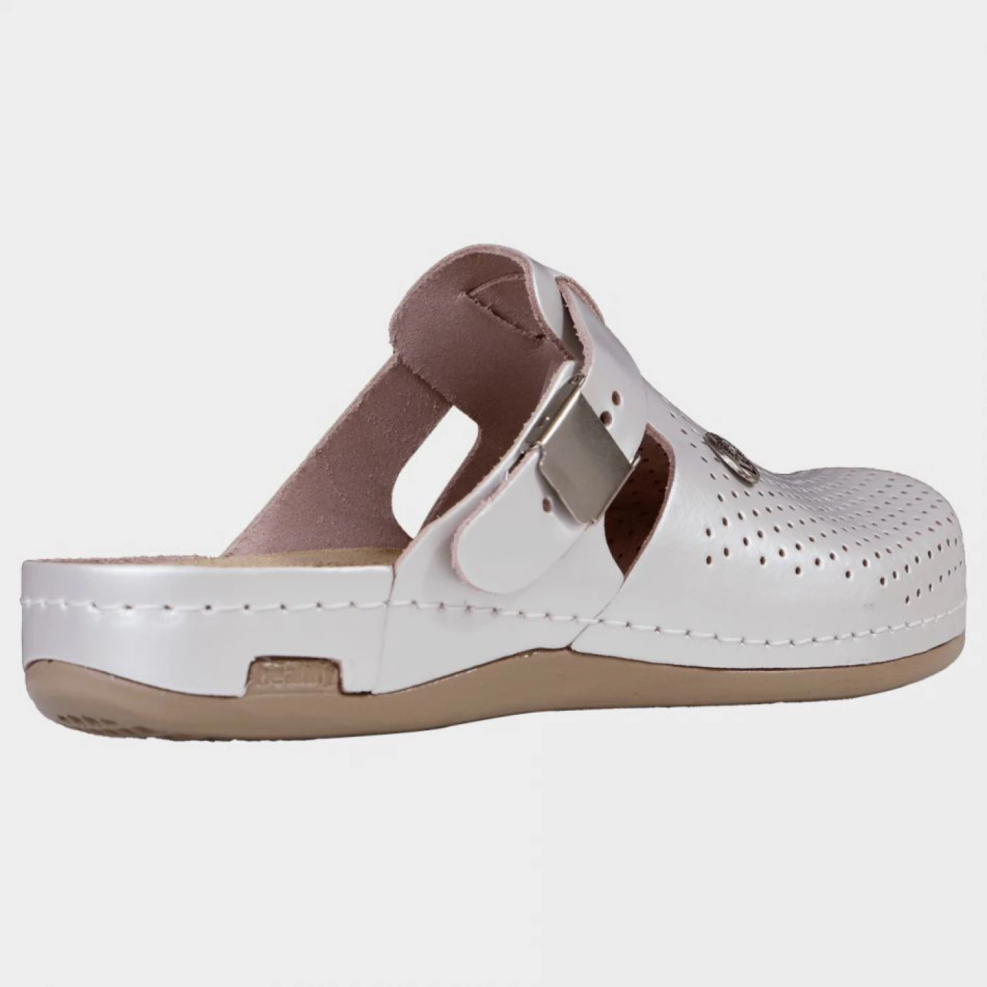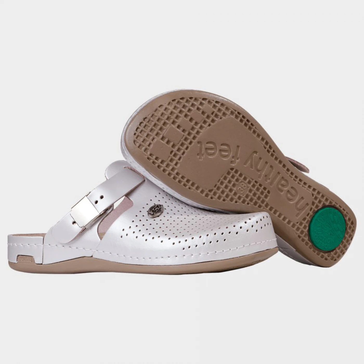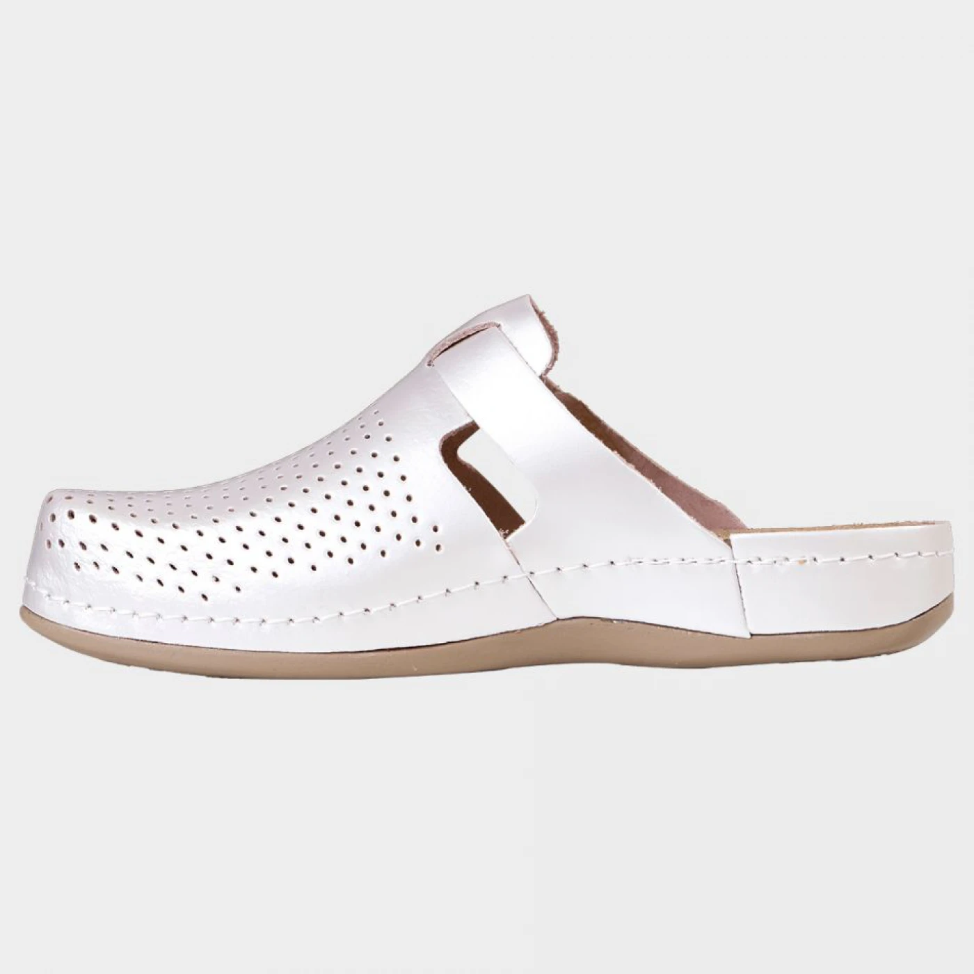 Saboți confortabili de damă, cu o parte superioară din piele naturală, cu un design perforat și un interior din piele pentru un plus de confort. Branțul din gel moale și călcâiul reglabil asigură o potrivire confortabilă și personalizată. Cu o talpă din PU și un branț special proiectat pentru anti-alunecare, acești saboți ofer confort pe tot parcursul zilei.