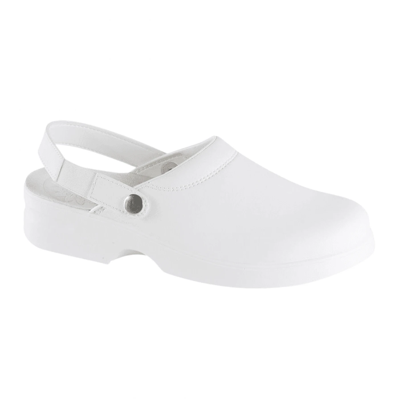 Saboti de lucru OB E A SRA din microfibră DRY-WHITE cu căptușeală din material textil perforat, rezistent la abraziune care asigură aerisirea piciorului. Talpa este din poliuretan, antialunecare și antistatică.