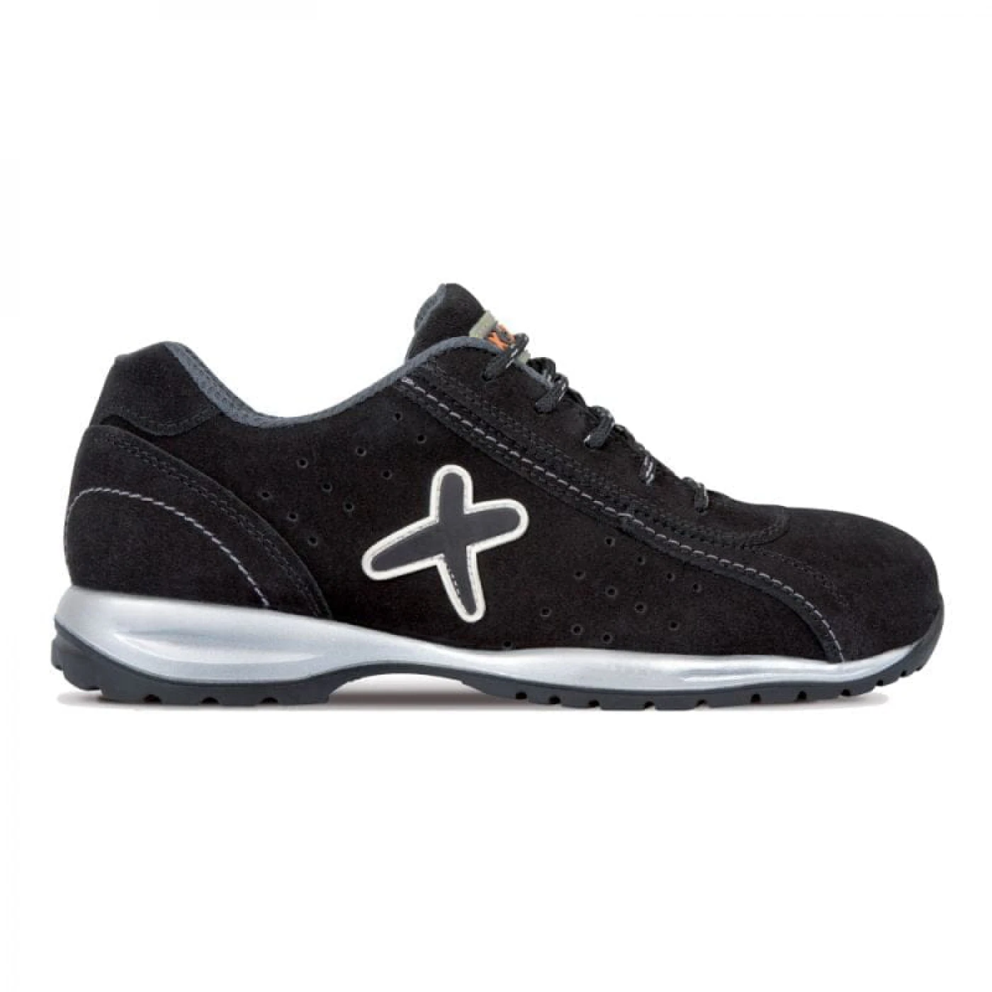 Pantofi de protectie S1P HRO SRC din șpalț de bovină, cu element ornamental din cauciuc. Asigură un confort ridicat datorită branțului X-DRY și căptușelii din material textil perforat, rezistent la abraziune și respirabil. Sunt dotați cu bombeu nemetalic din material compozit. Talpa este formată din poliuretan + cauciuc nitrilic rezistent la 300°C contact 60 secunde, antistatică, antiderapantă, rezistentă la abraziune şi hidrocarburi.