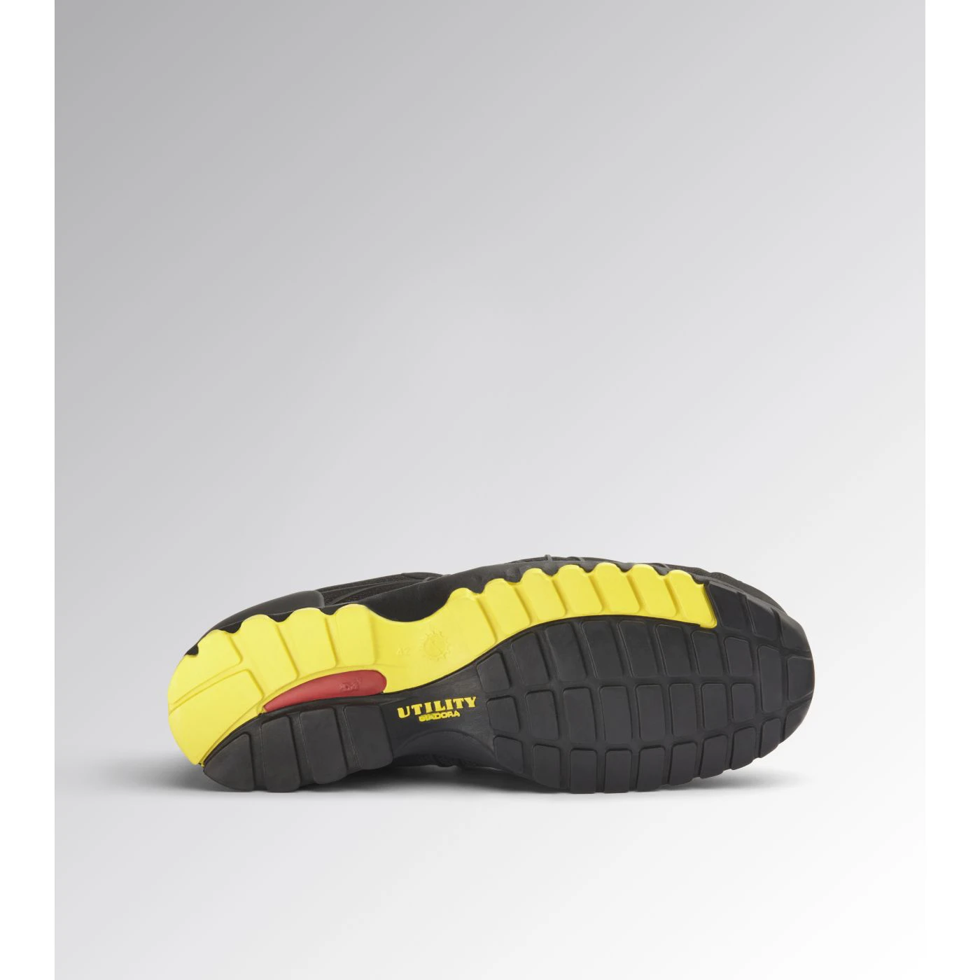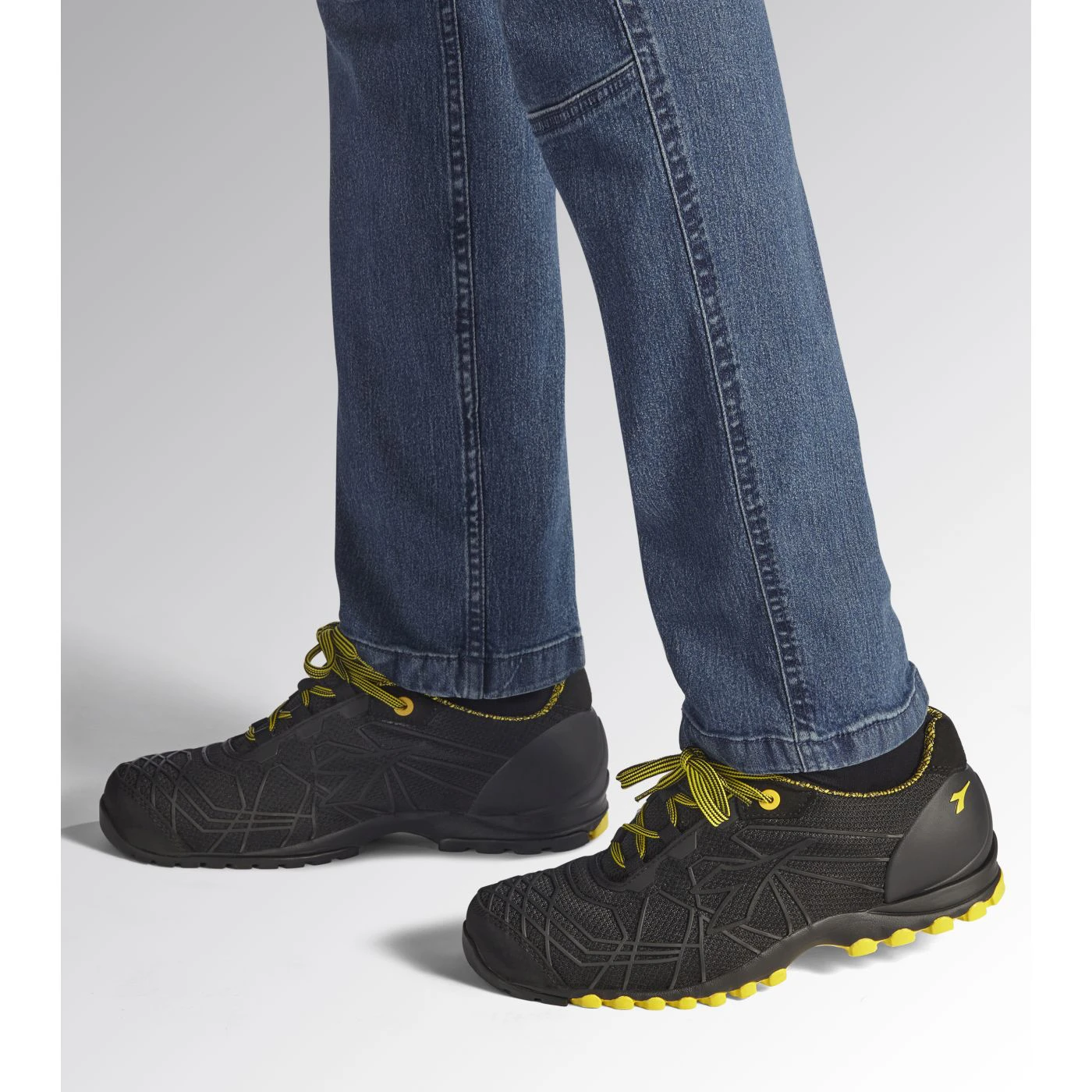 Low-cut S1PS safety shoes in 100% recycled polyester fabric overinjected with TPU. Ergonomic TPU heel support. 200J aluminium toe cap. Anti-puncture K-SOLE insert. Width 11. DA² technology. Two-tone Air Mesh lining. Removable latex and activated carbon footbed and EVA heel cup.