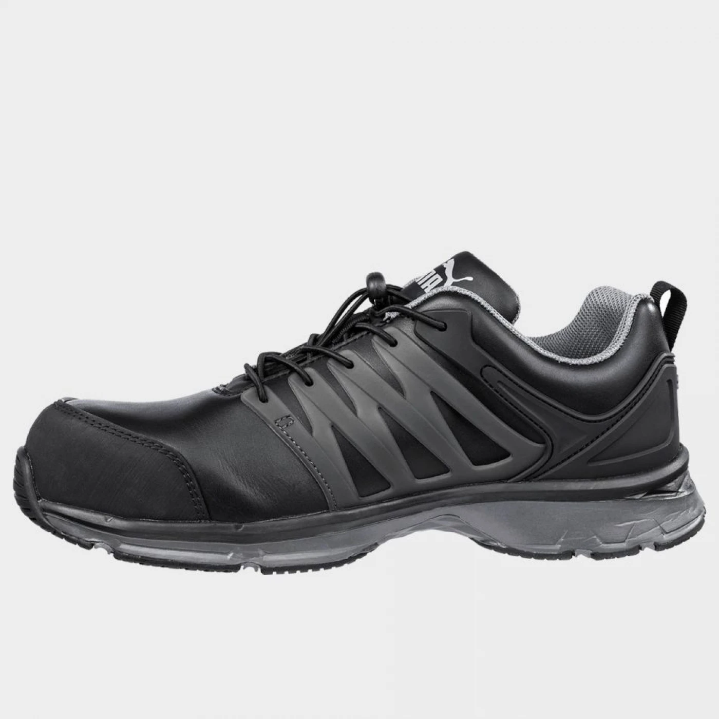 Pantofi de lucru ESD, potrivite pentru a sta în picioare timp prelungit. Absorb energie, eliberând până la 55% înapoi către purtător. Talpa rezistentă la căldură, antiderapantă asigură siguranță și rezistă până la 300 °C. Branțul Evercusion®BA susține mișcarea naturală a piciorului, iar spuma respirabilă menține un microclimat plăcut. Datorită formei anatomice, articulațiile nu sunt suprasolicitate. Pantofii au, de asemenea, un sistem elastic pentru o potrivire rapidă și ușoară și, de asemenea, vin cu o pereche de șireturi standarde.