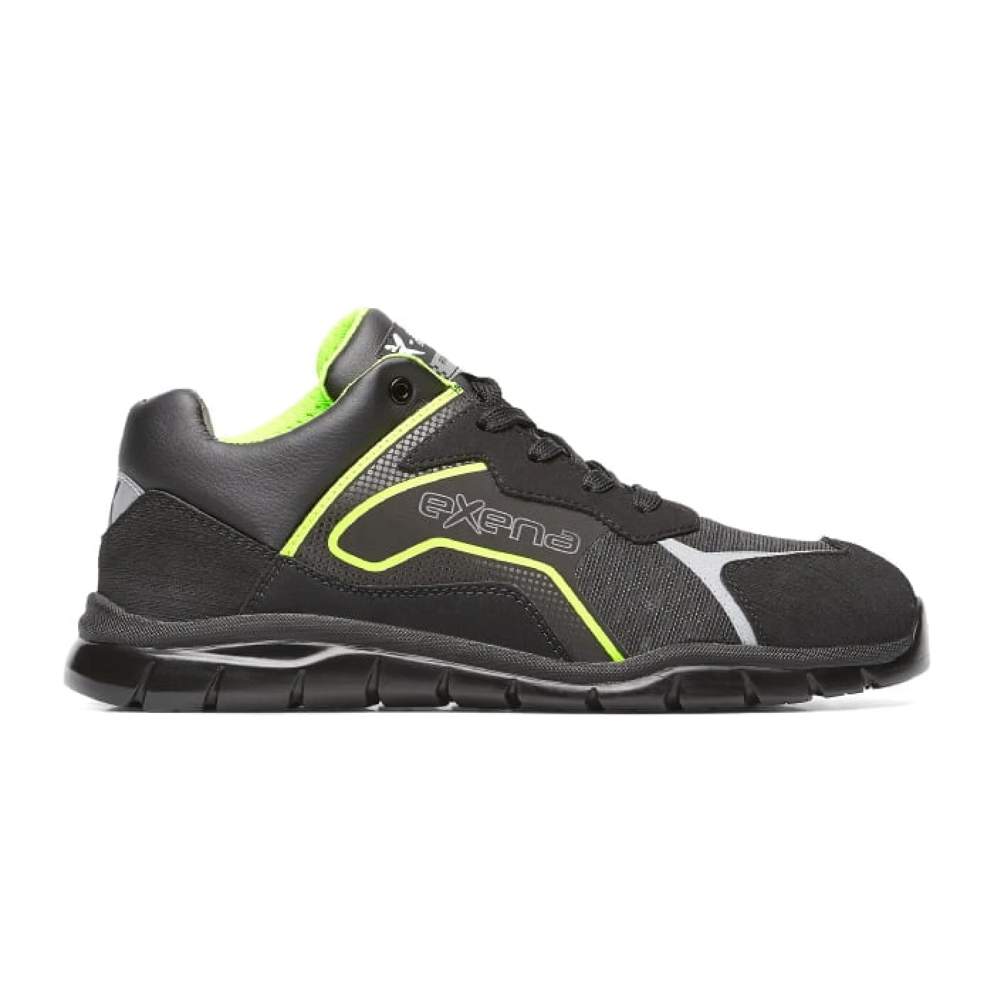 Pantofi de protectie S3 SRC din microfibra sintetica hidrofobizata cusuta la frecventa inalta, bombeu din aluminiu si lamela antiperforatie nemetalica. Confortul sporit pe tot timpul lucrului este asigurat de brantul „X Control” realizat urmarindu-se cu atentie forma anatomica a talpii piciorului, obtinandu-se astfel o distributie mai buna si uniforma a fortelor si incarcarii pe intreg corpul, permitand imbunatatirea circulatiei sanguine si cresterea oxigenarii sangelui. Talpa este injectata, din poliuretan mono densitate (PU 1D).