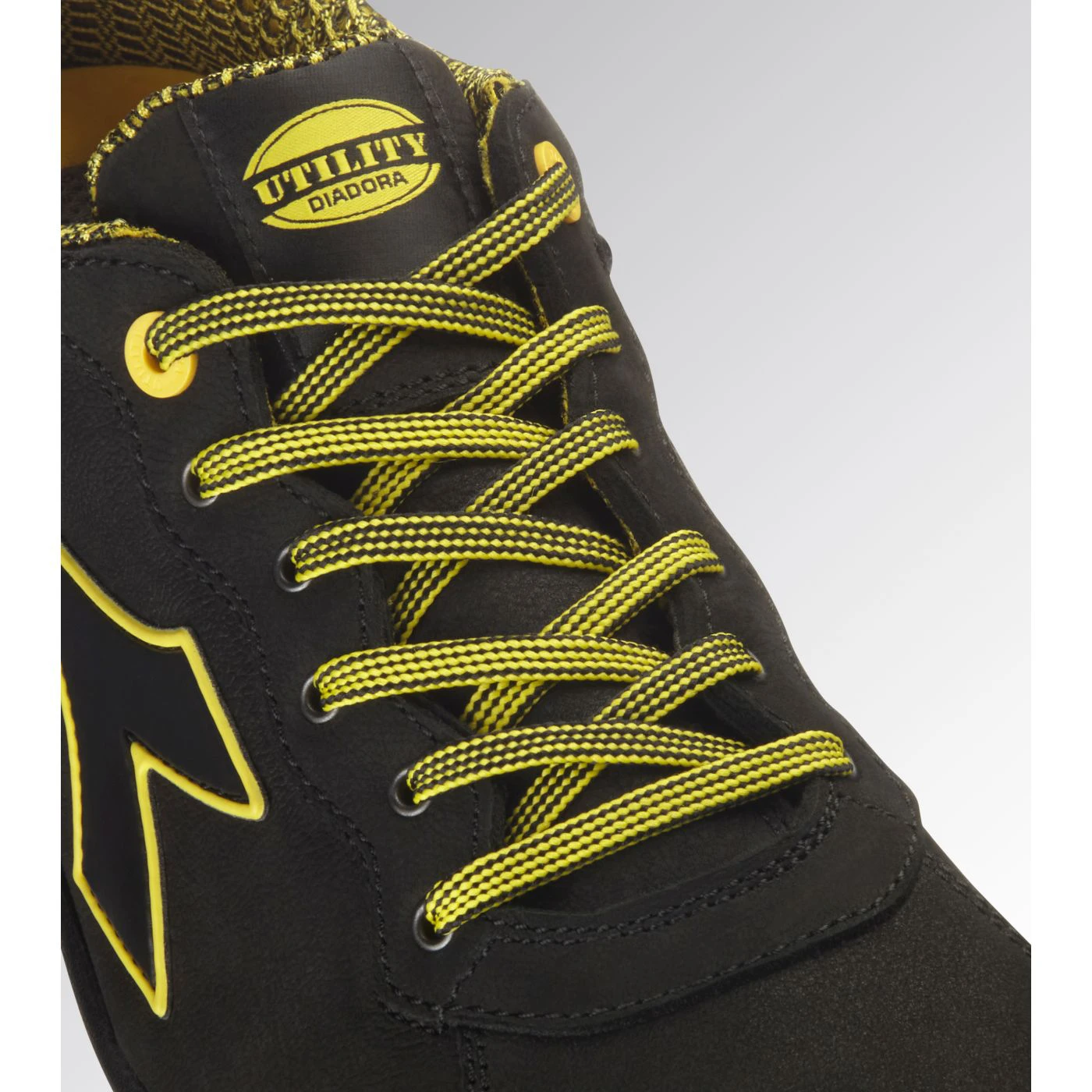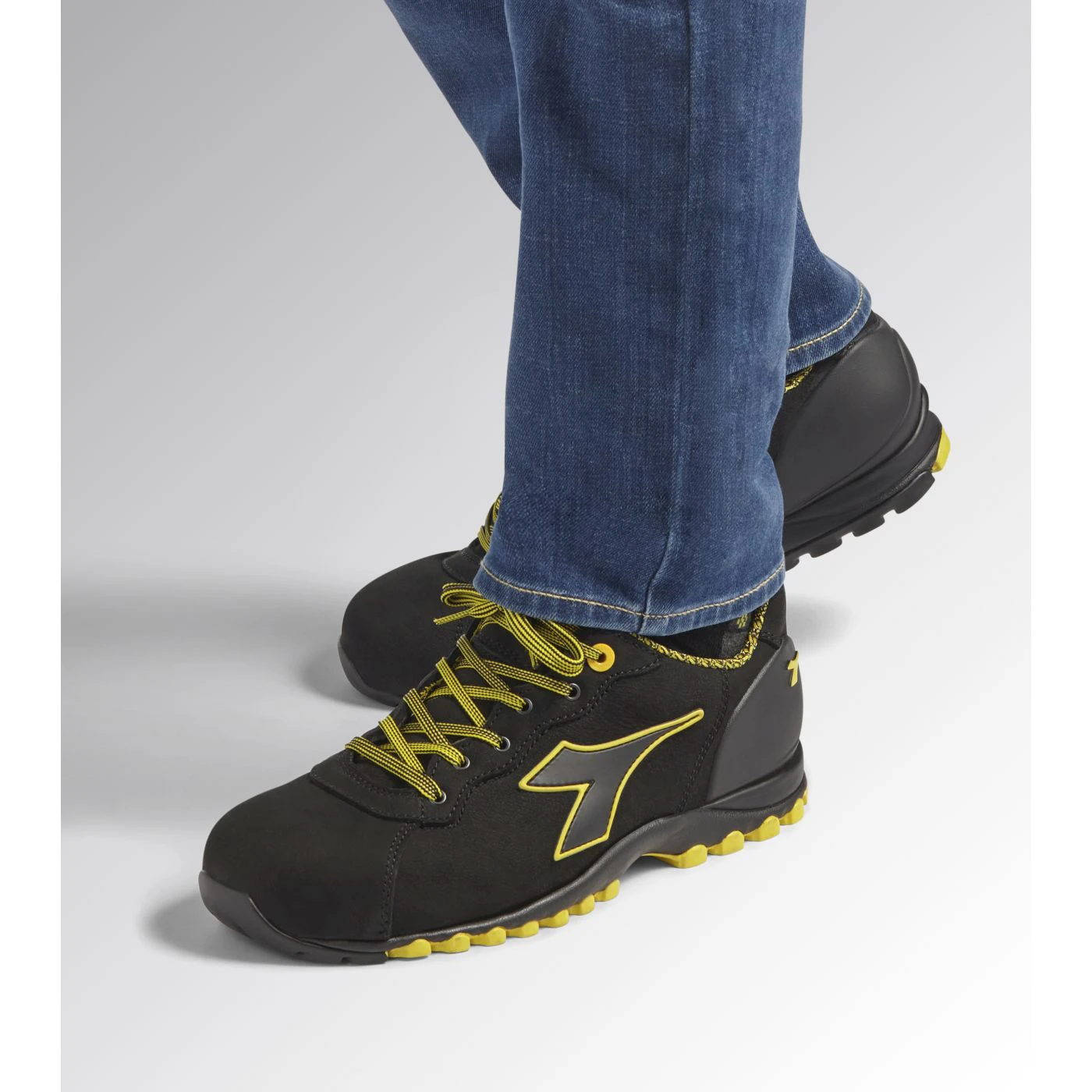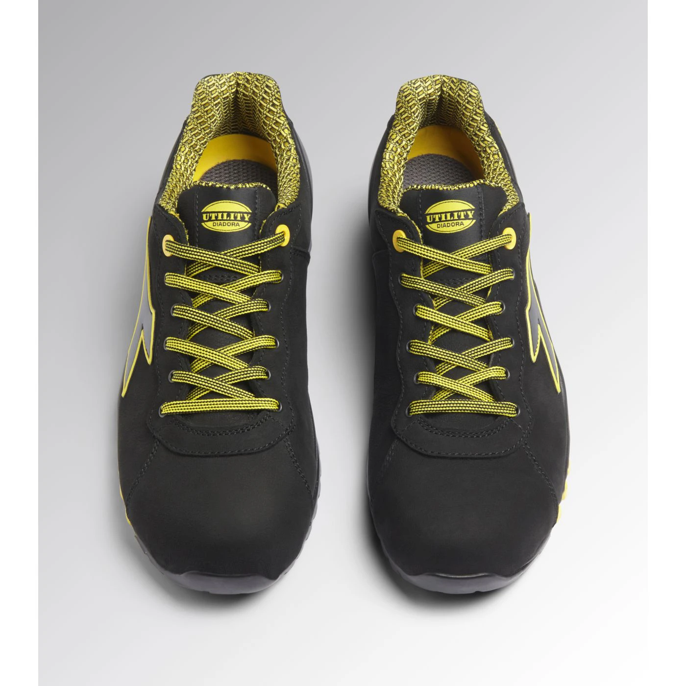 Water-repellent low-cut S3S safety shoes in cowhide nubuck. Ergonomic TPU heel support. 200J aluminium toe cap. Anti-puncture K-SOLE insert. Width 11. DA² technology. Two-tone Air Mesh lining. Removable latex and activated carbon footbed and EVA heel cup.
