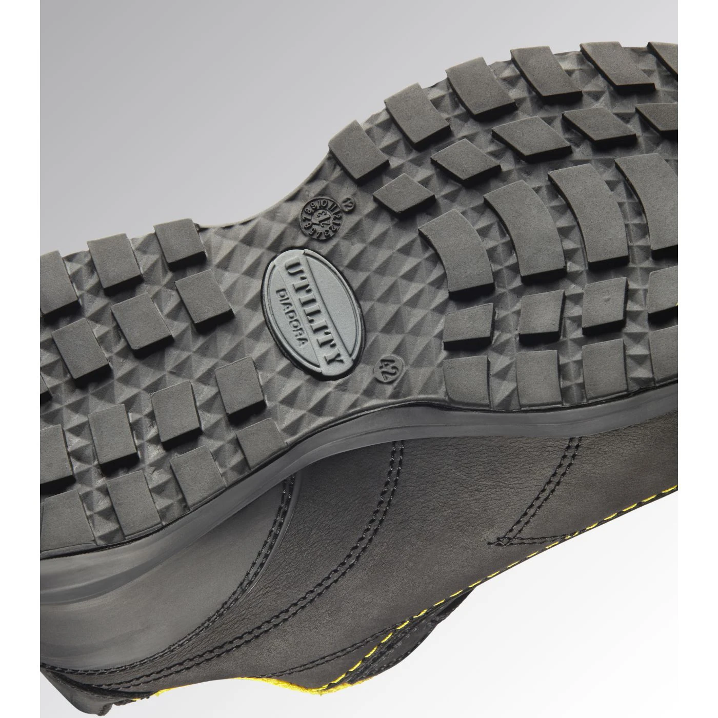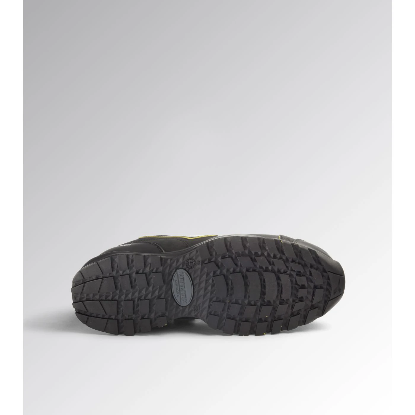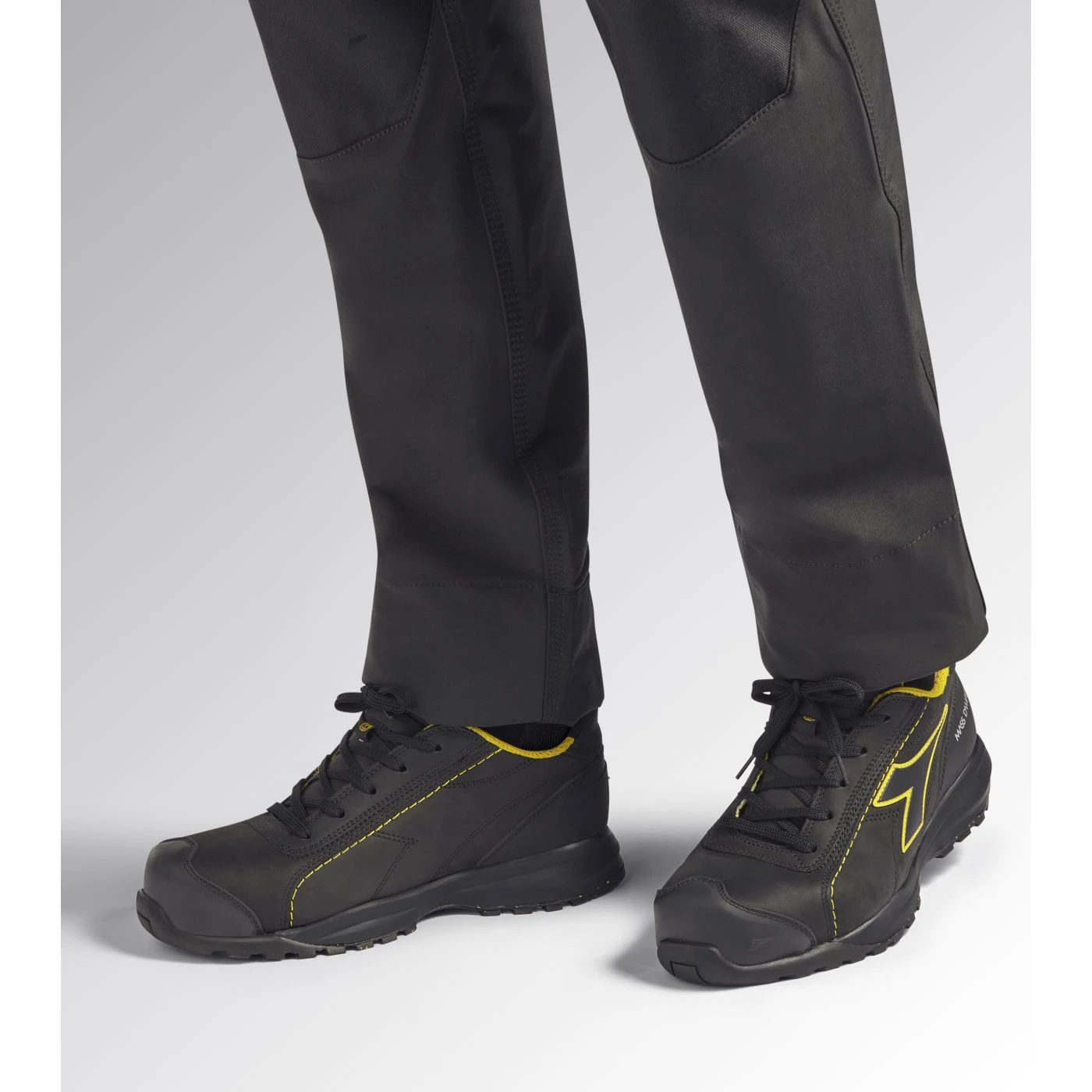 Water-repellent low-cut S3S safety shoes in cowhide nubuck. TPU toe cap and ergonomic heel support. 200J aluminium toe cap. Anti-puncture K-SOLE insert. Width 11. Mass Damper System technology. Air mesh lining with a non-slip microfibre insert. Removable ergonomic insole in PU foam and activated carbon. ESD.