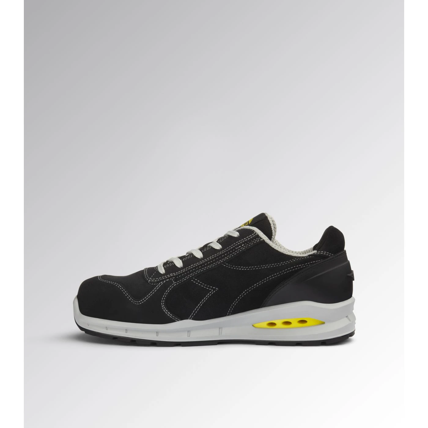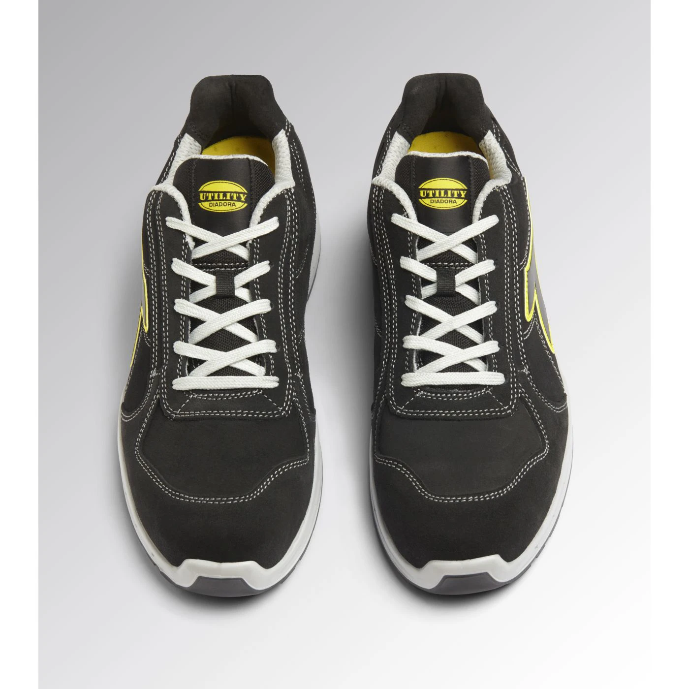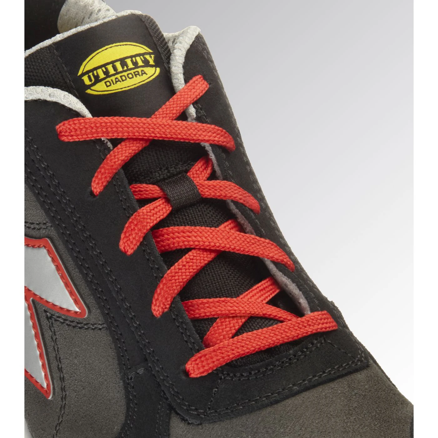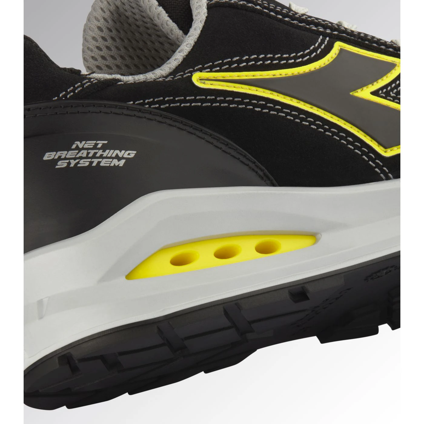Water-repellent low-cut S3S safety shoes in cowhide suede. Ergonomic TPU heel support. 200J aluminium toe cap. Anti-puncture K-SOLE insert. Width 11. Net Breathing System by Geox technology on side. Air Mesh lining with a non-slip microfibre insert. Removable micro-perforated insole in open cell PU foam that is breathable thanks to activated carbon.