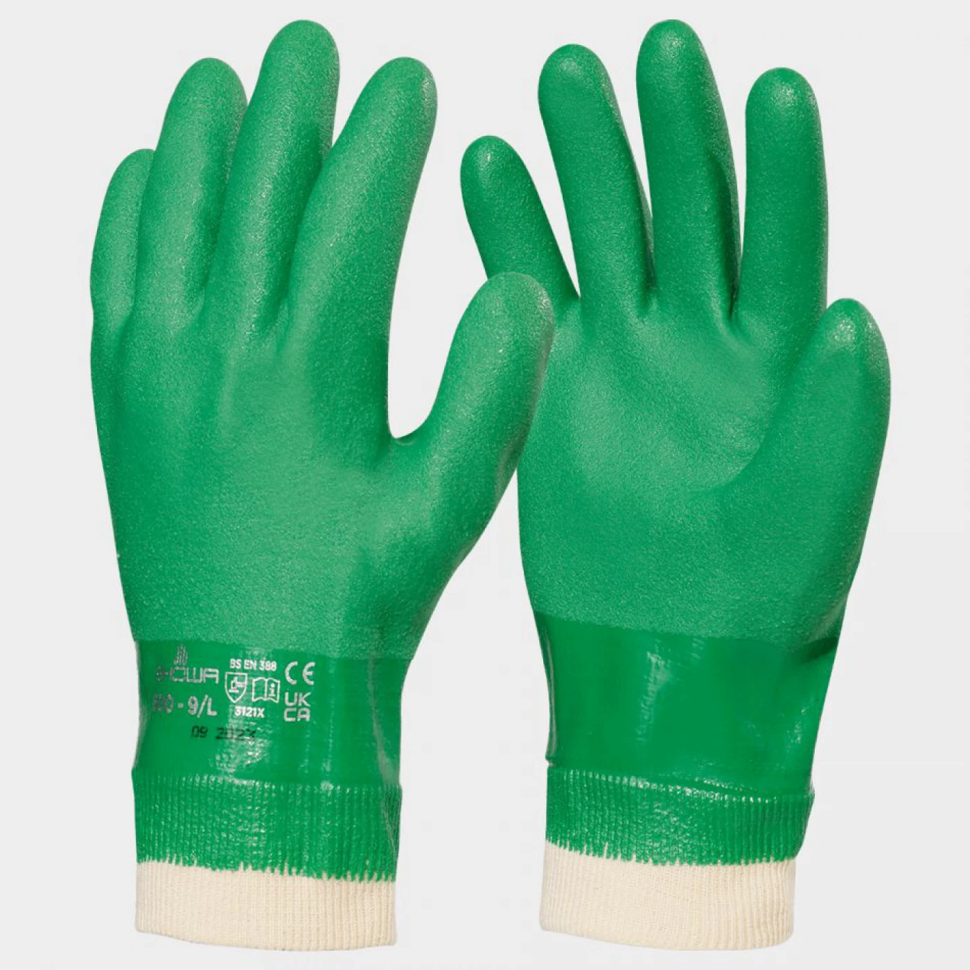 Mănuși versatile, care ofer durabilitate, rezistență și o prindere fermă. Stratul interior din bumbac moale, construcția flexibilă și proprietățile de absorbție a umezelii asigură confortul la purtare. Învelișul dur din PVC oferă protecție împotriva substanțelor chimice, grăsimilor și abraziunii. Universale, potrivite pentru lucrul în agricultură, la prelucrarea produselor chimice etc.